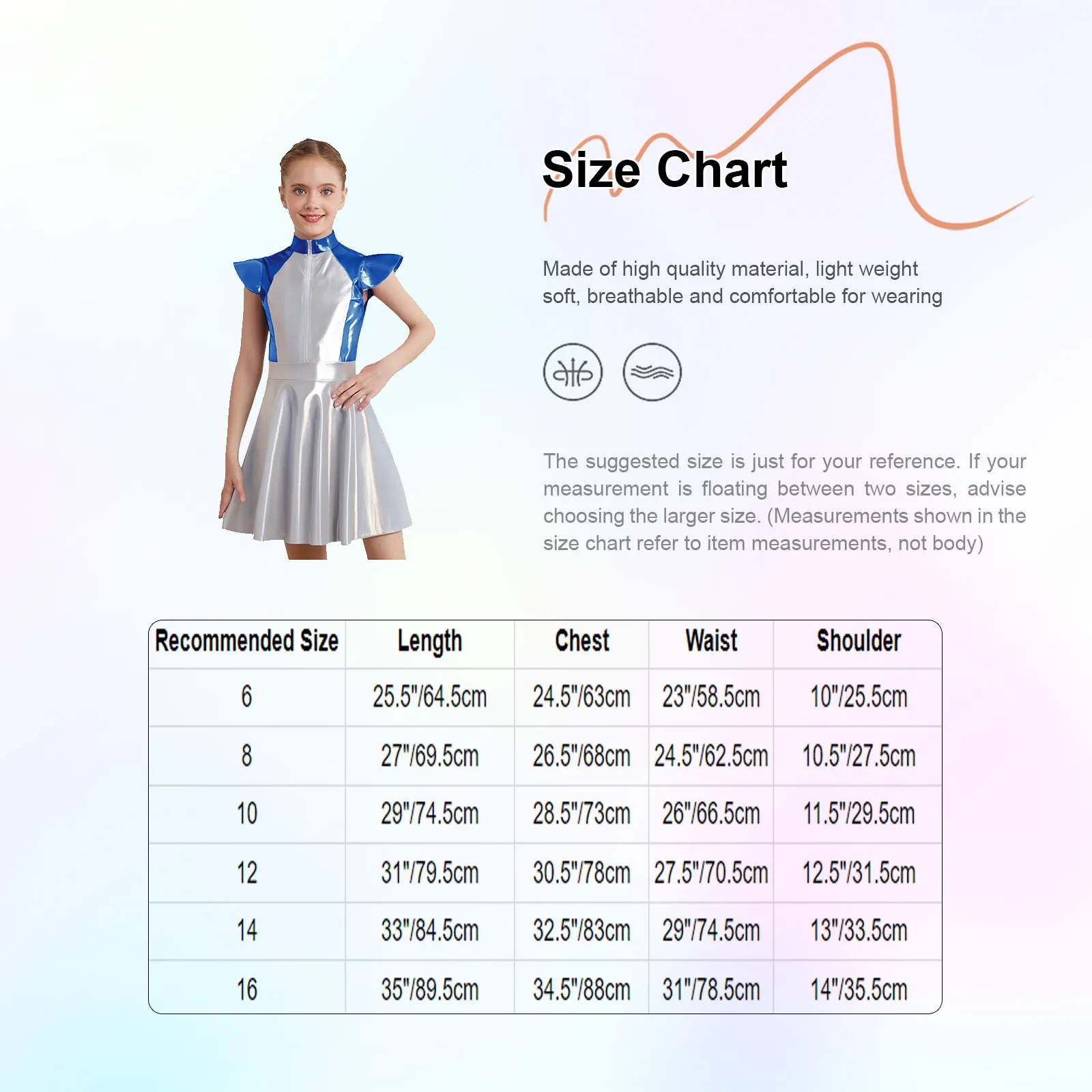 Size Chart: The suggested size is just for your reference. If your measurement is floating between two sizes, advise choosing the larger size. (Measurements shown in the size chart refer to item measurements, not body)