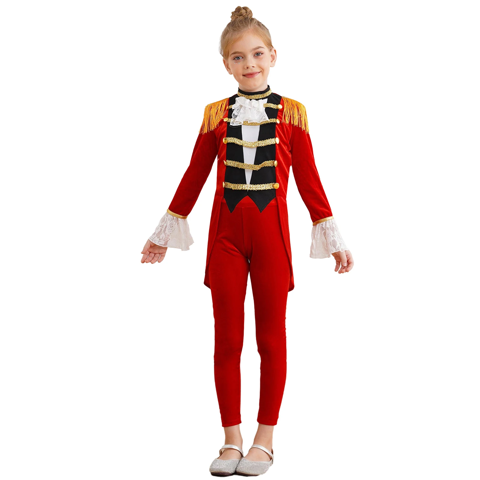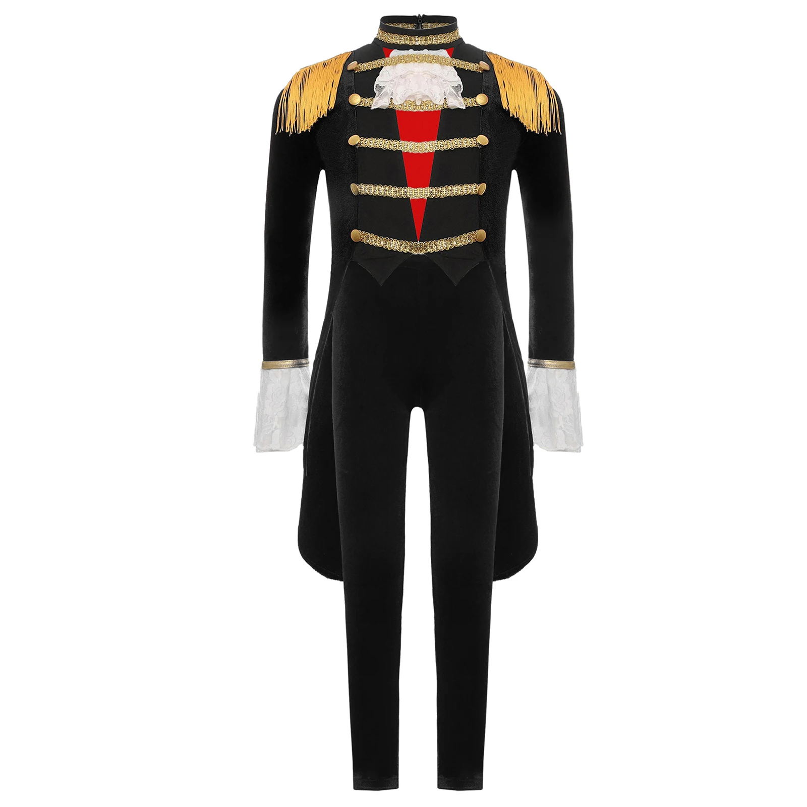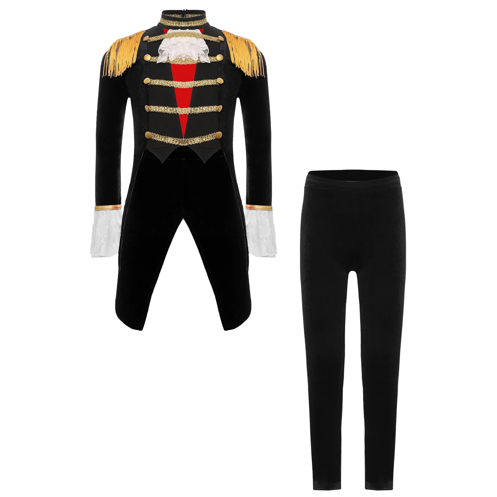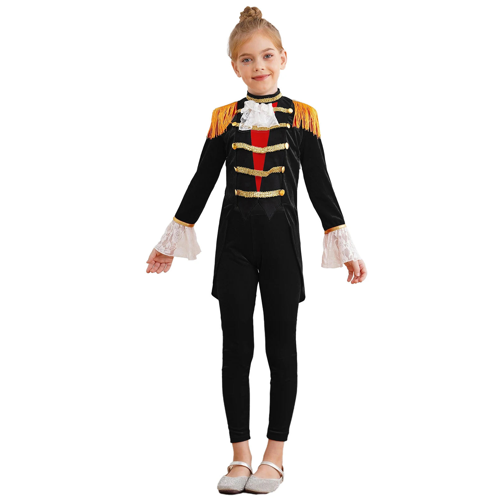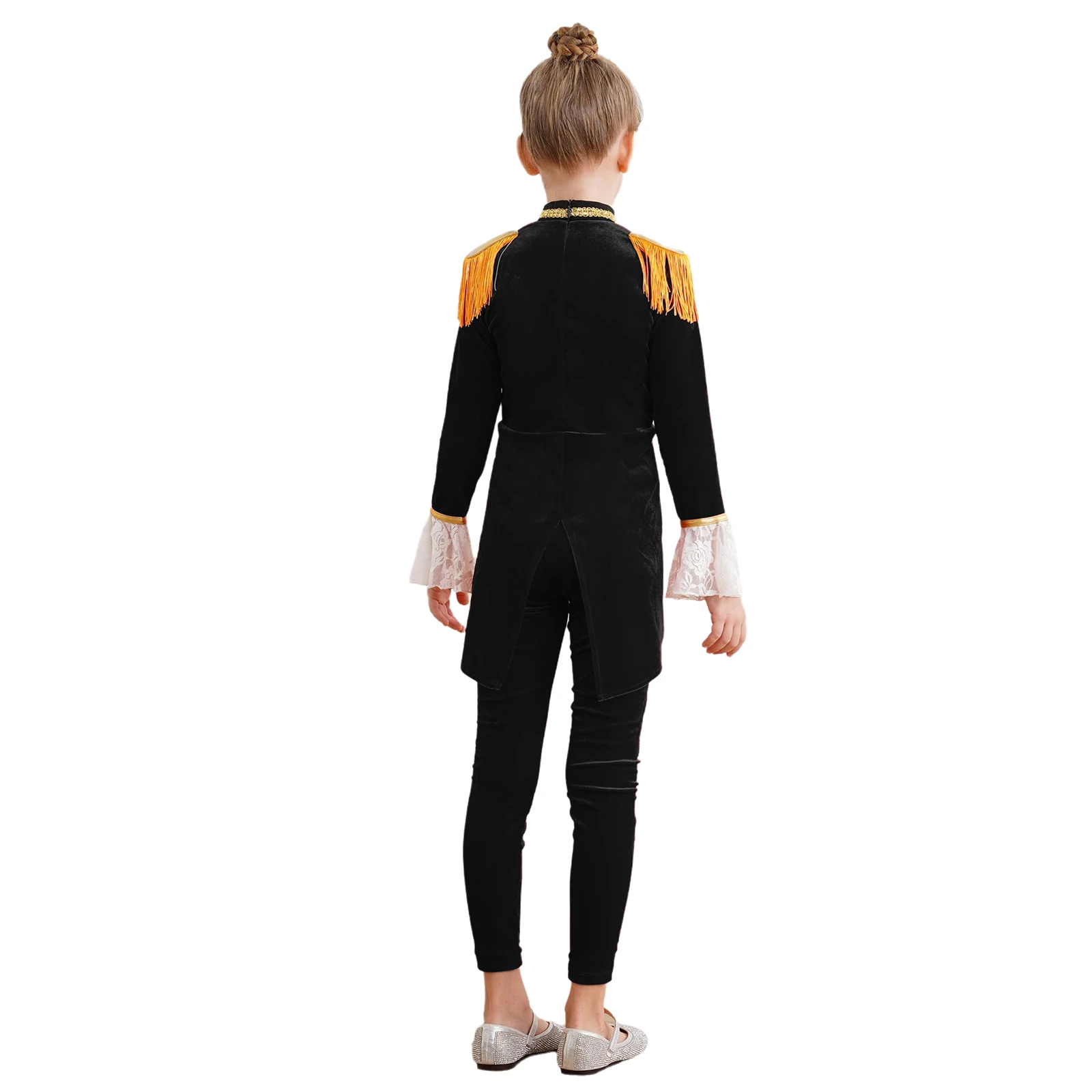 Kids Girls Boys Halloween Circus Ringmaster Cosplay Costume Lace Cuffs Fringe Epaulet Magician Lion Tamer Tailcoat And Pants Set