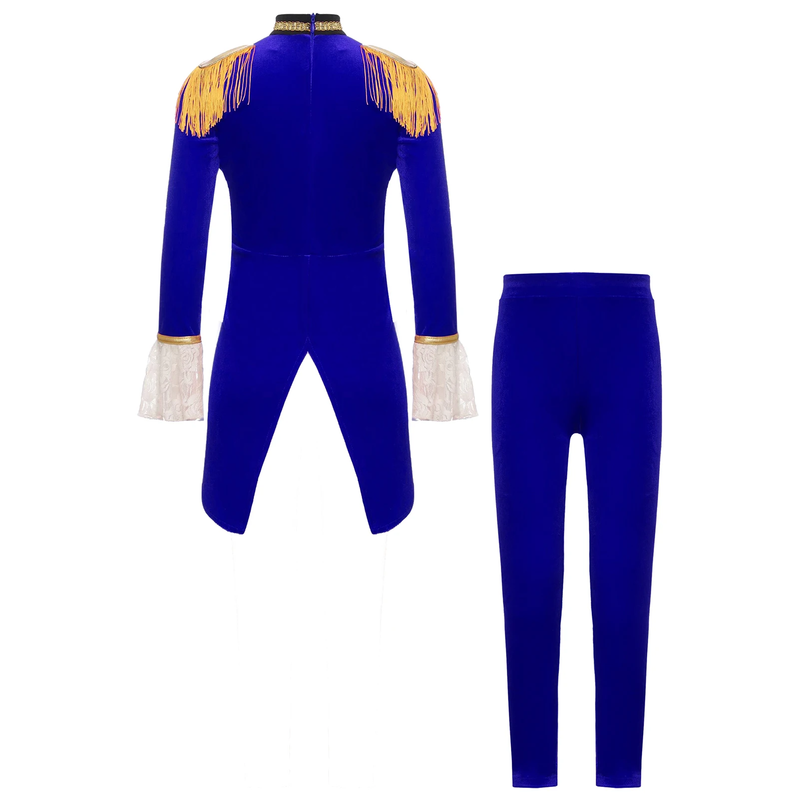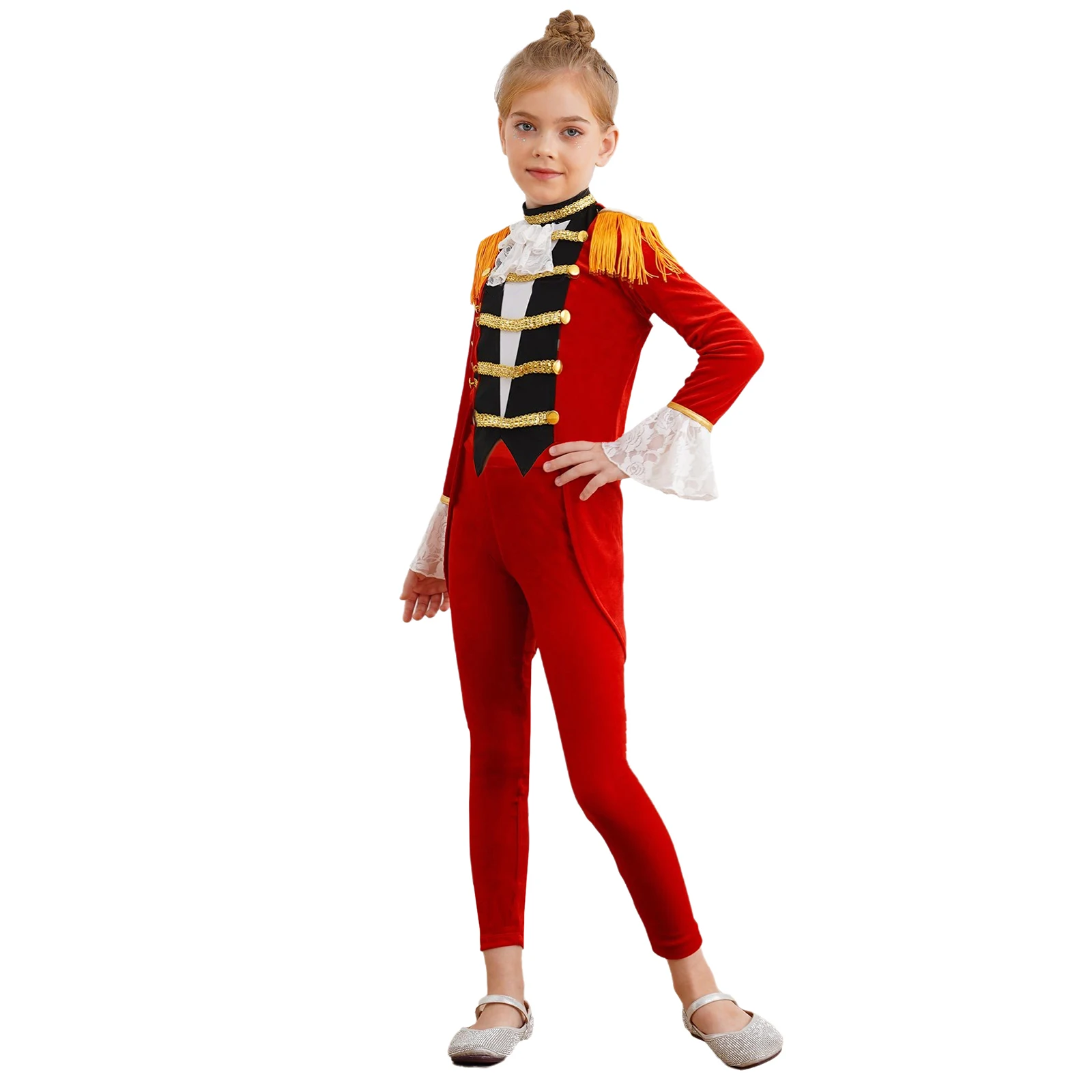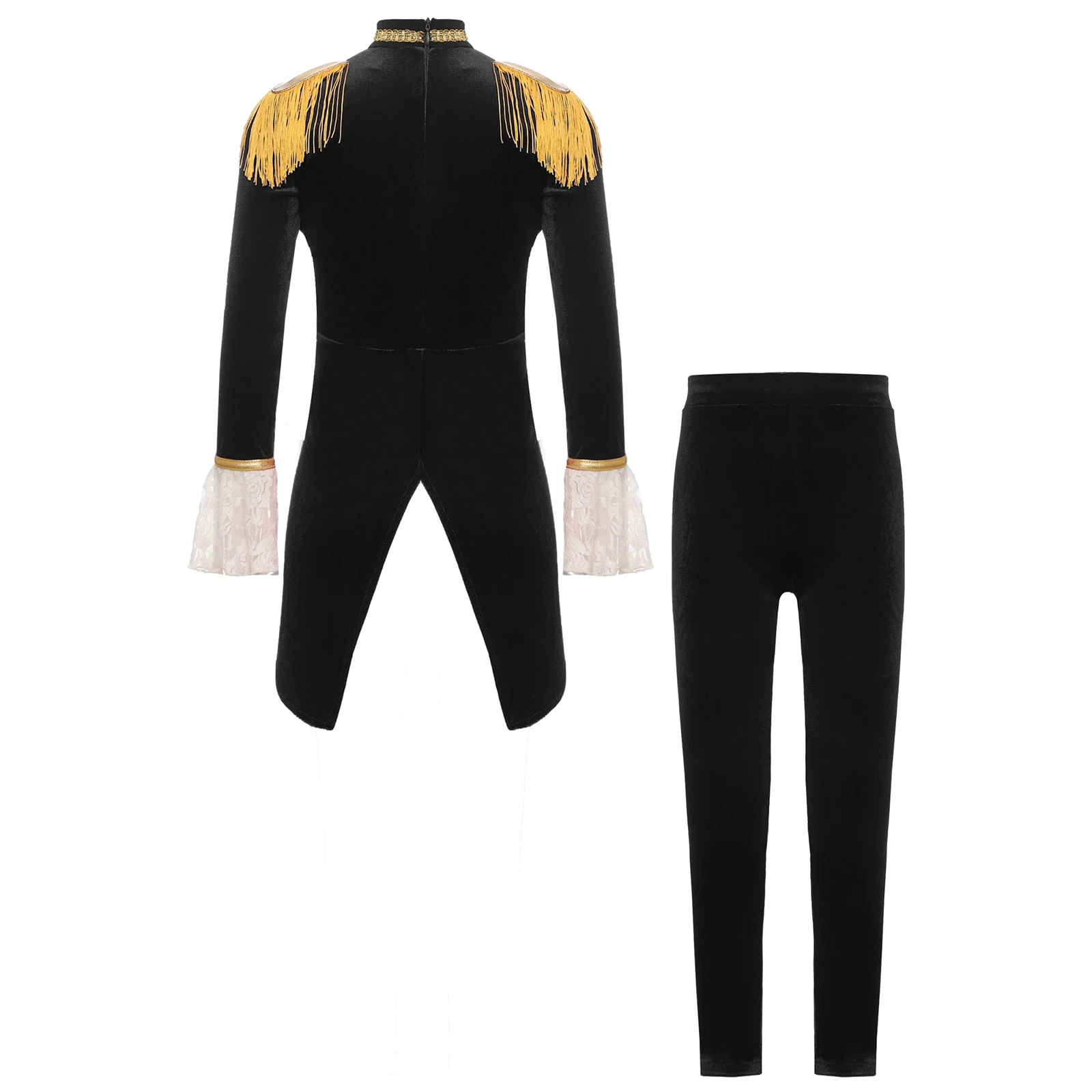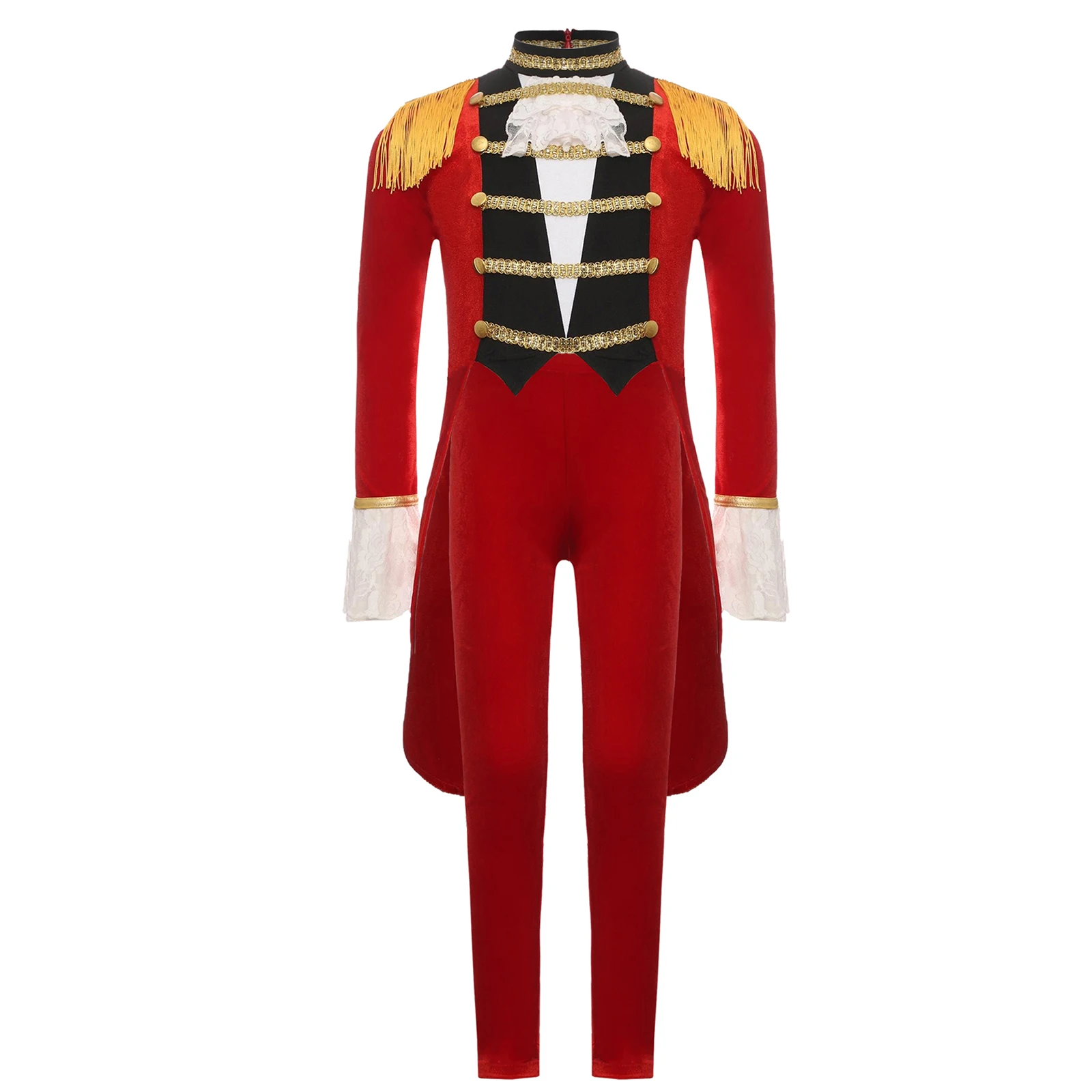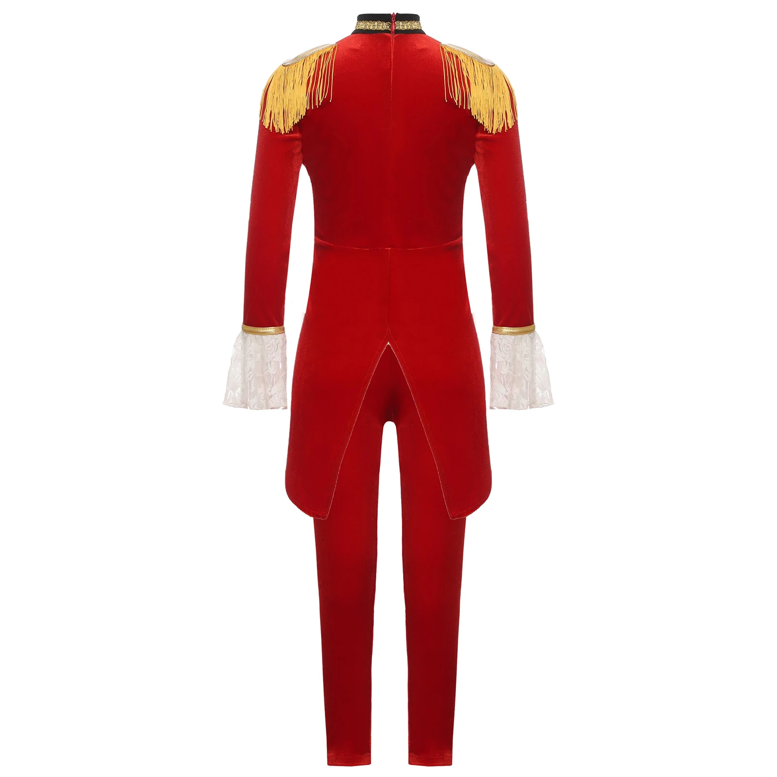 Kids Girls Boys Halloween Circus Ringmaster Cosplay Costume Lace Cuffs Fringe Epaulet Magician Lion Tamer Tailcoat And Pants Set