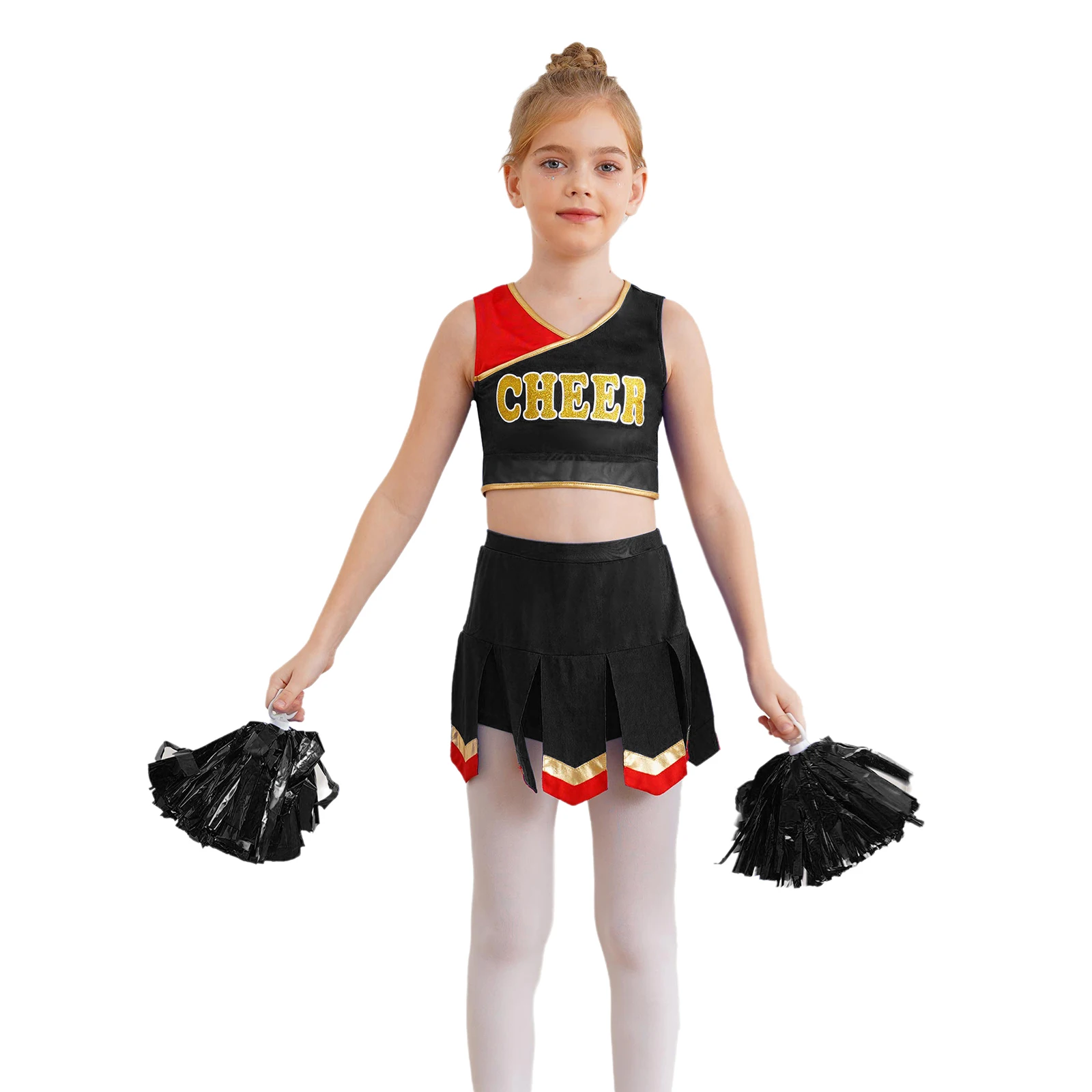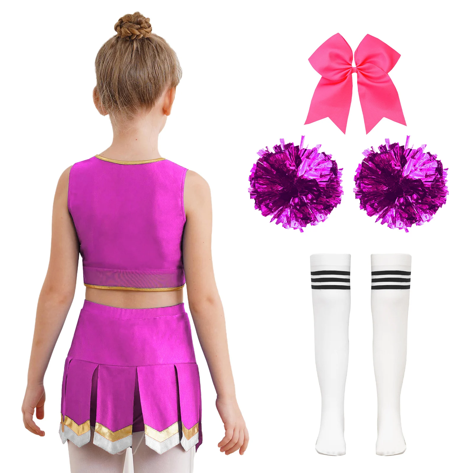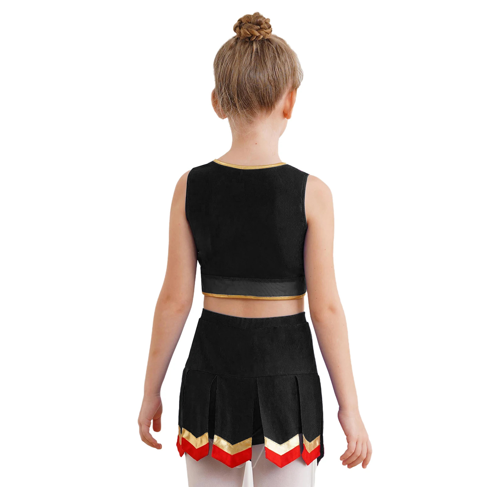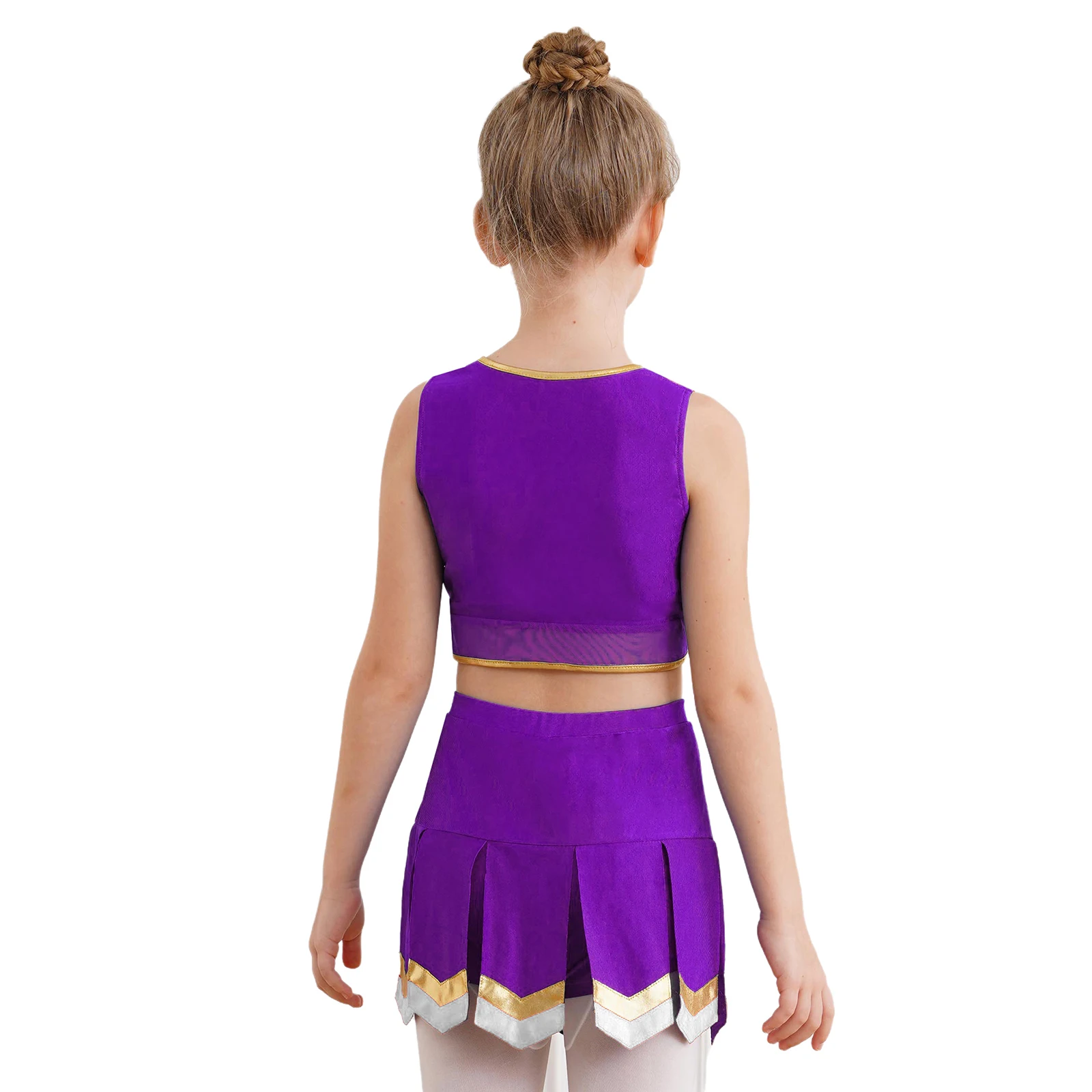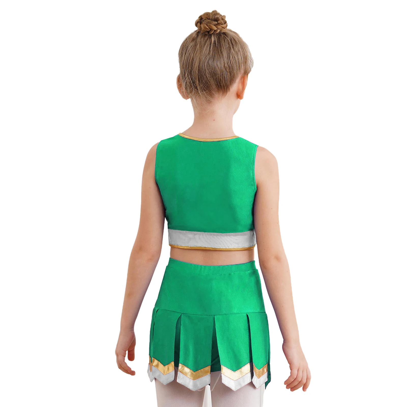 Kids Girls Cheerleader Costume Cheerleading Uniform Crop Top And Skirt Dance Outfit Set Ballet Modern Cheer Ballet Dance Outfits