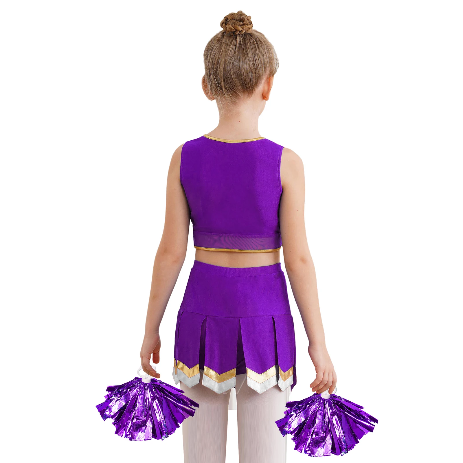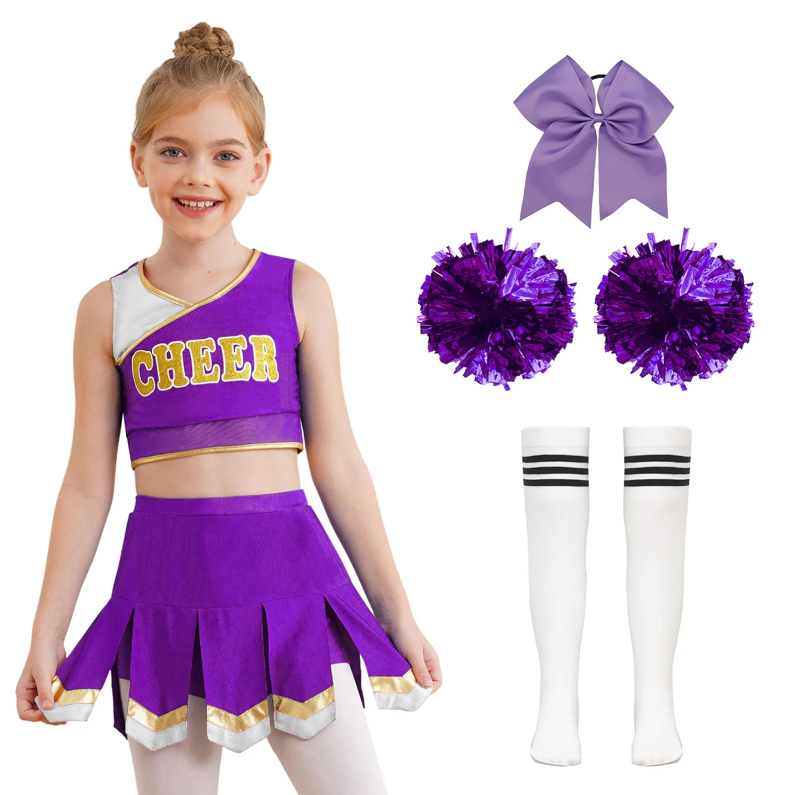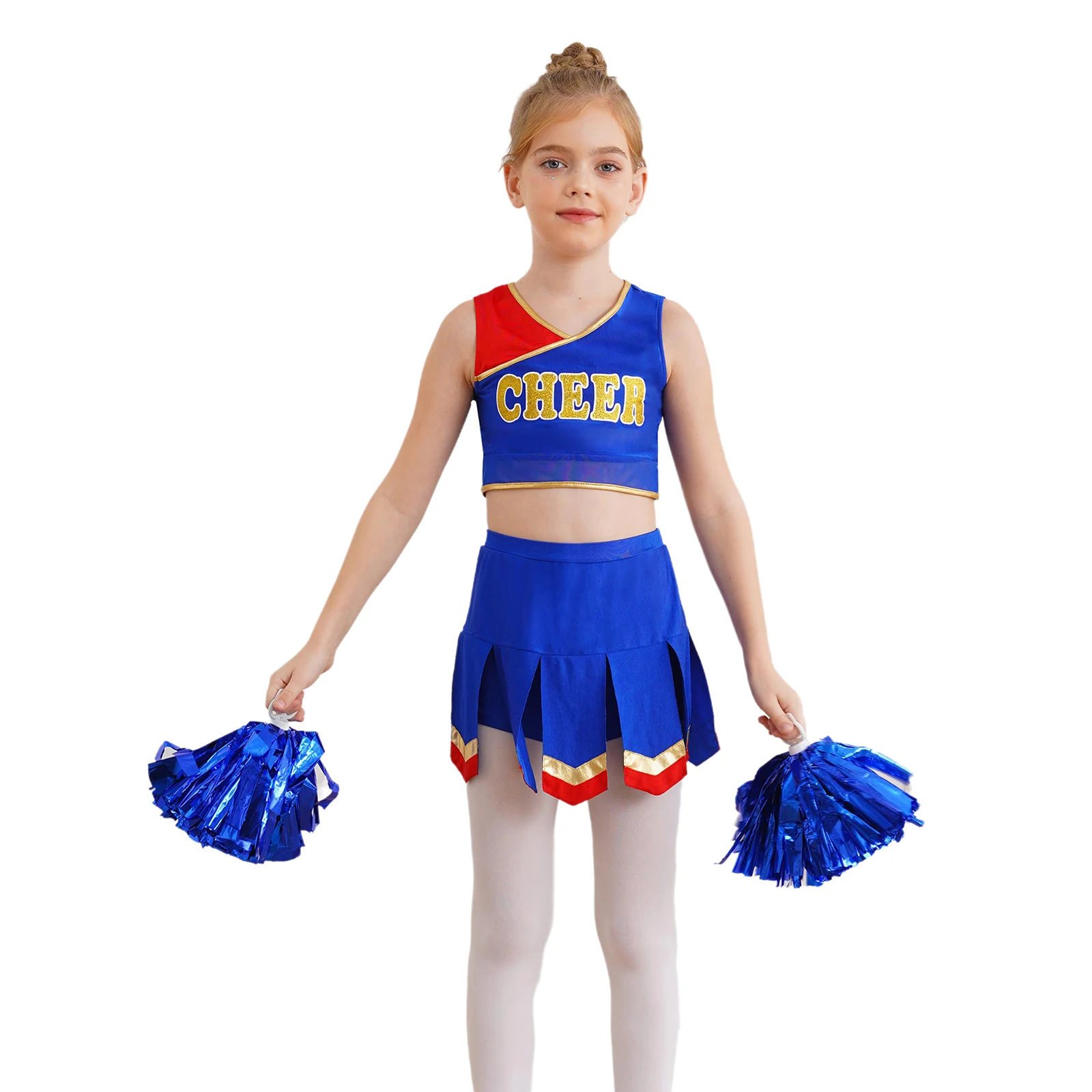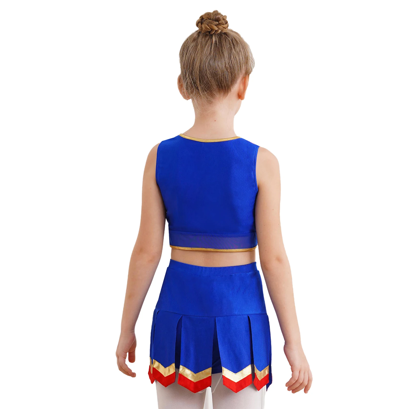 Kids Girls Cheerleader Costume Cheerleading Uniform Crop Top And Skirt Dance Outfit Set Ballet Modern Cheer Ballet Dance Outfits