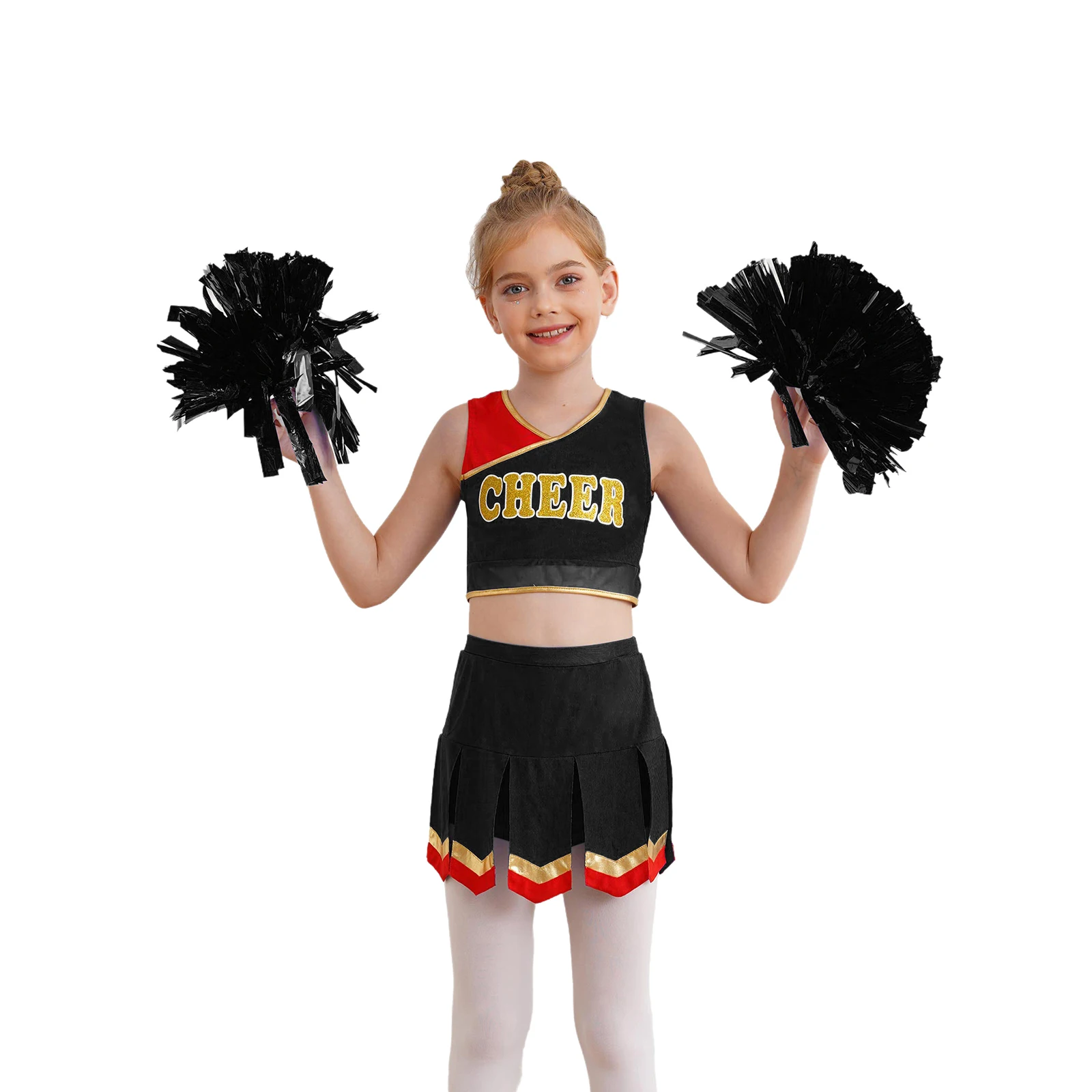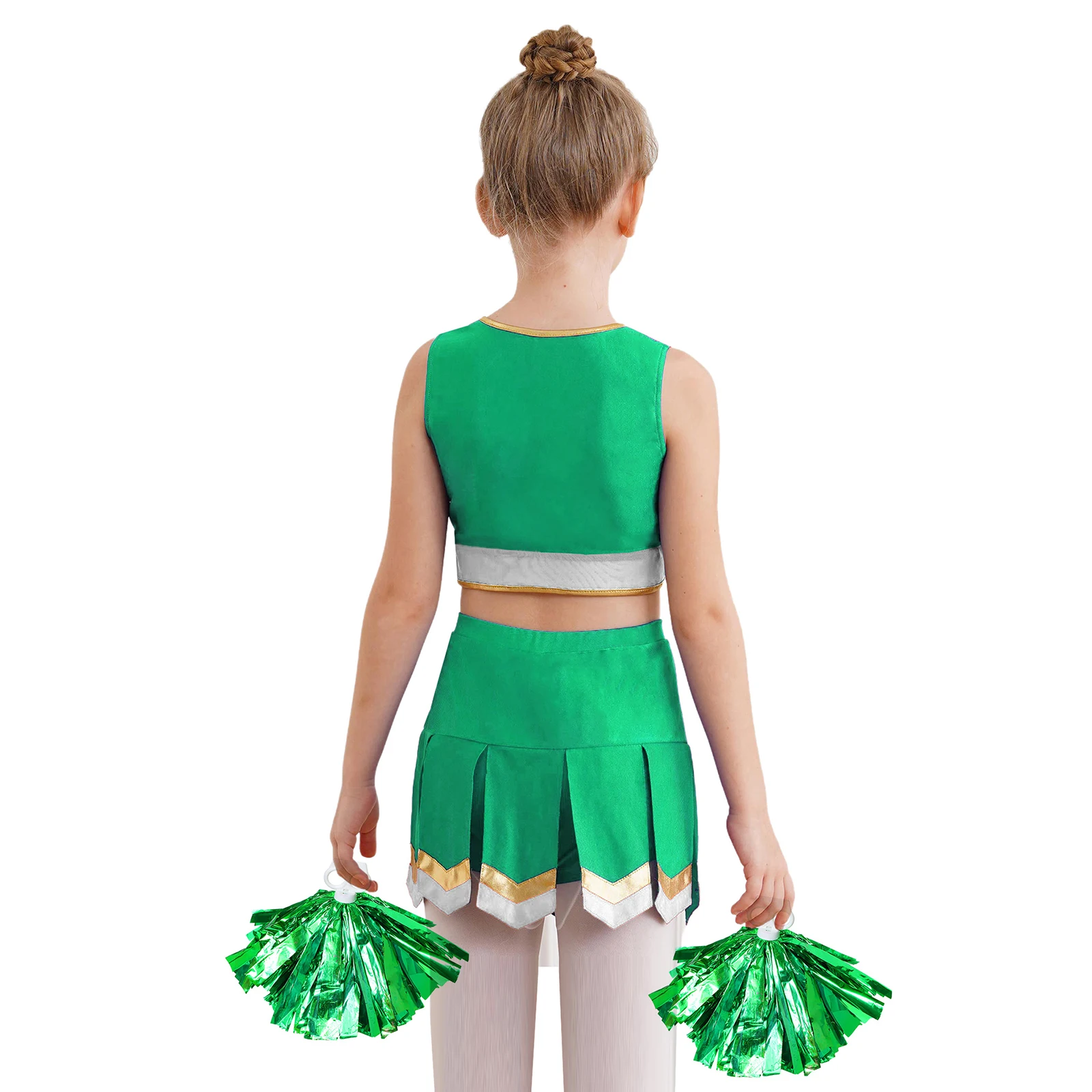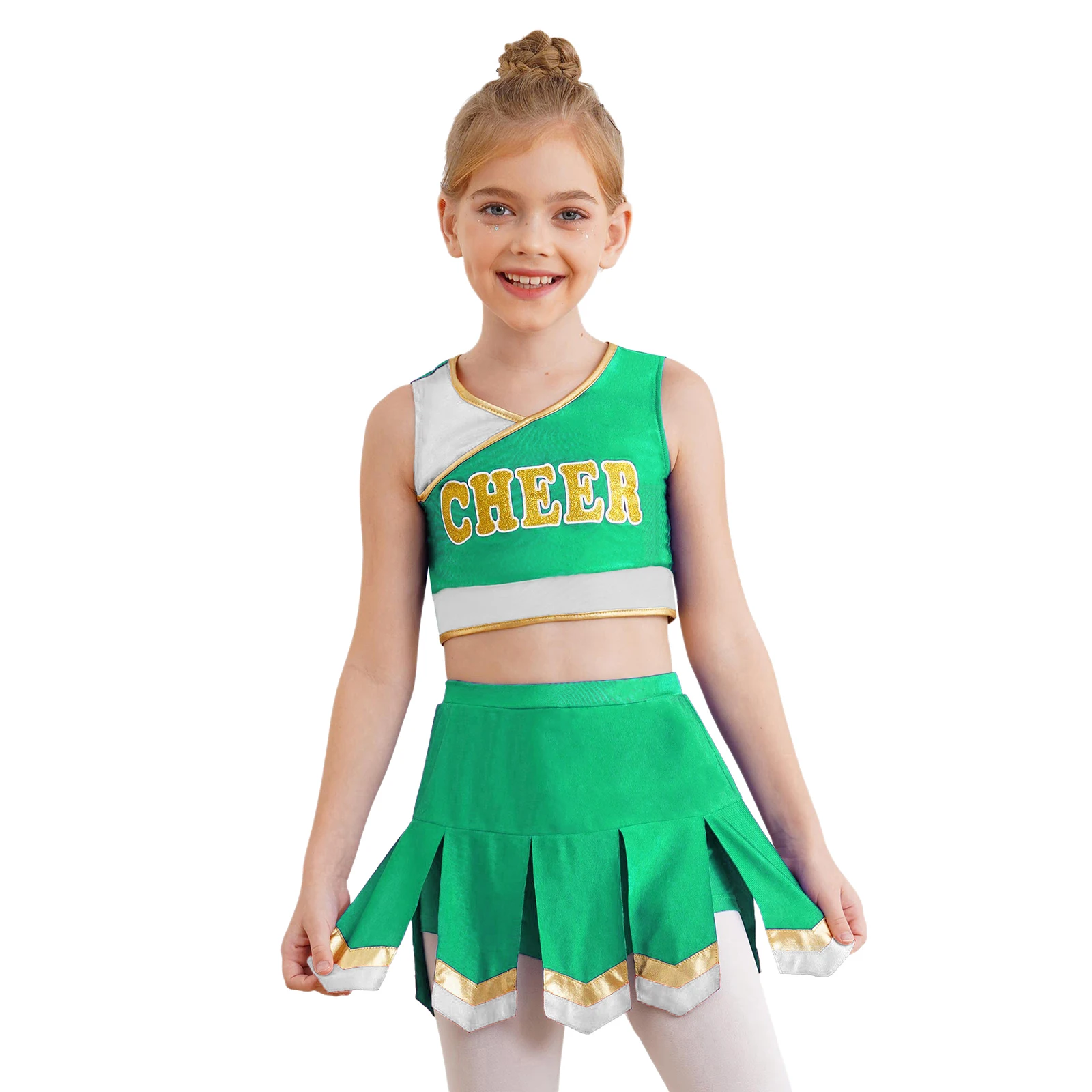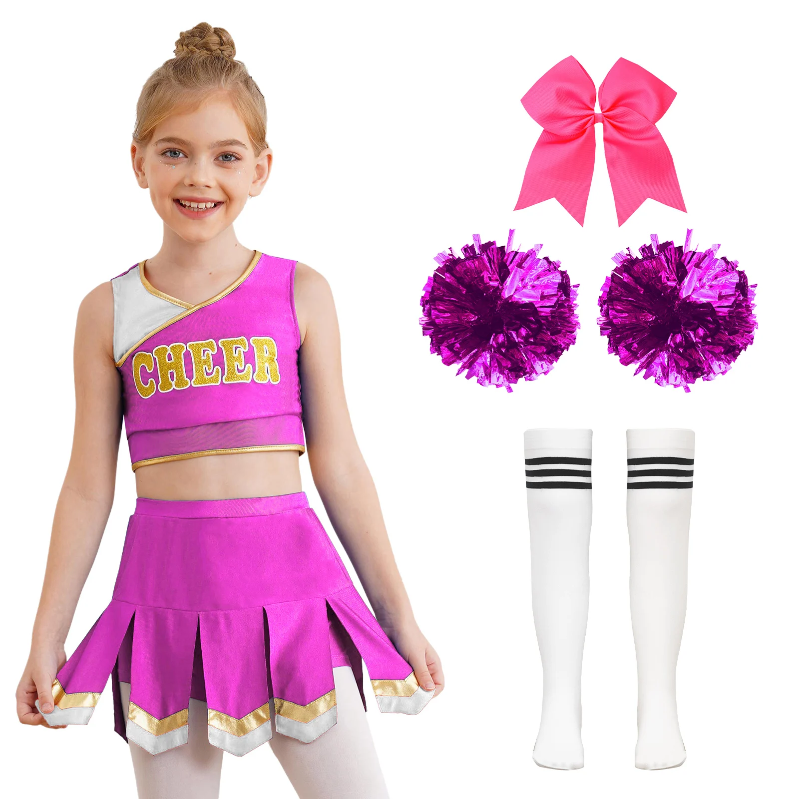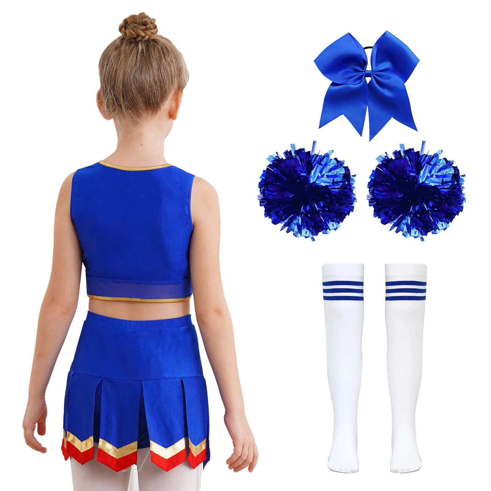 Kids Girls Cheerleader Costume Cheerleading Uniform Crop Top And Skirt Dance Outfit Set Ballet Modern Cheer Ballet Dance Outfits