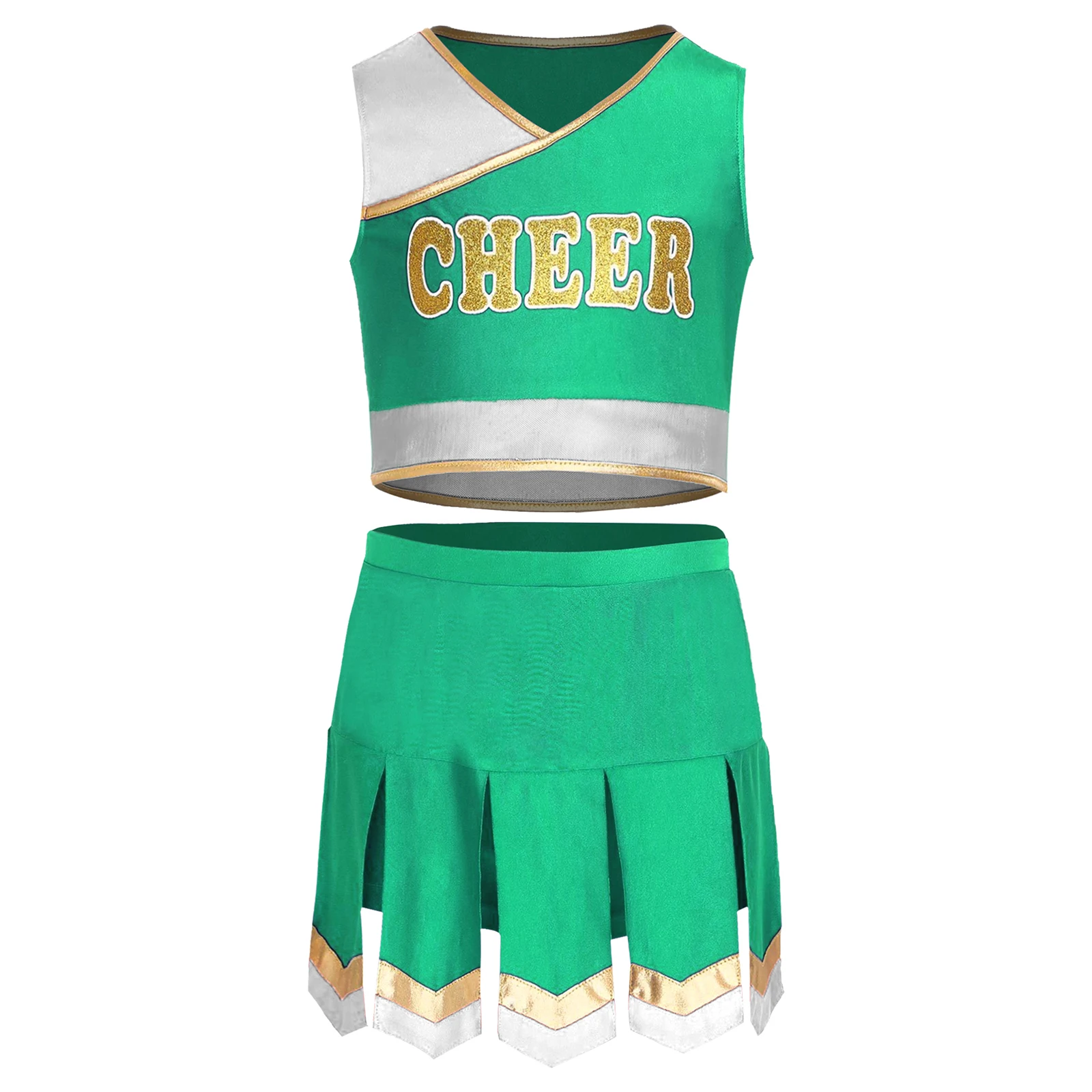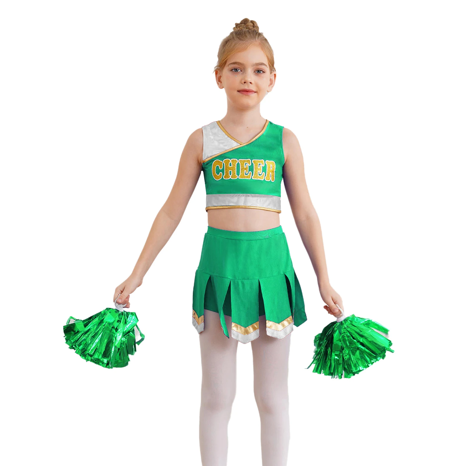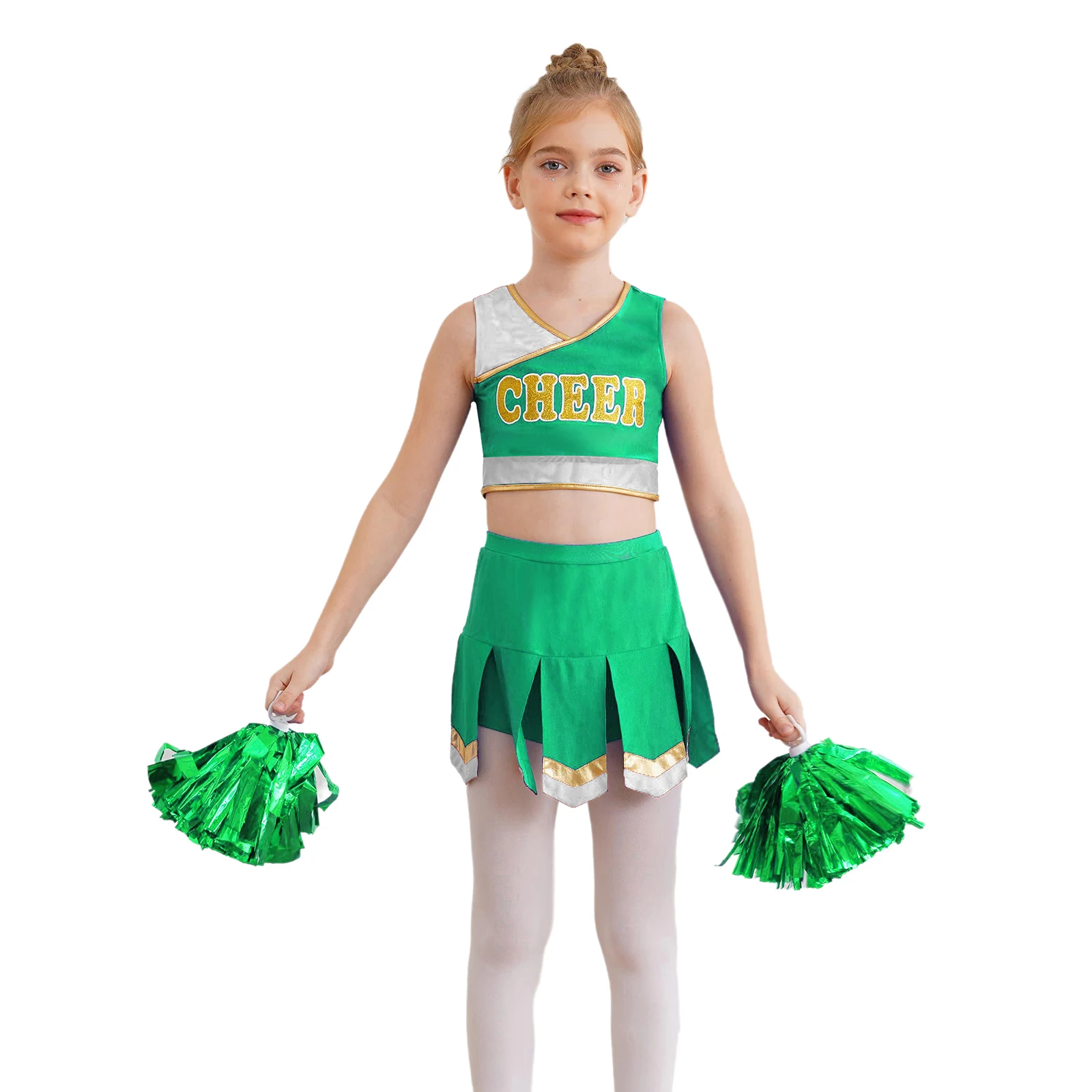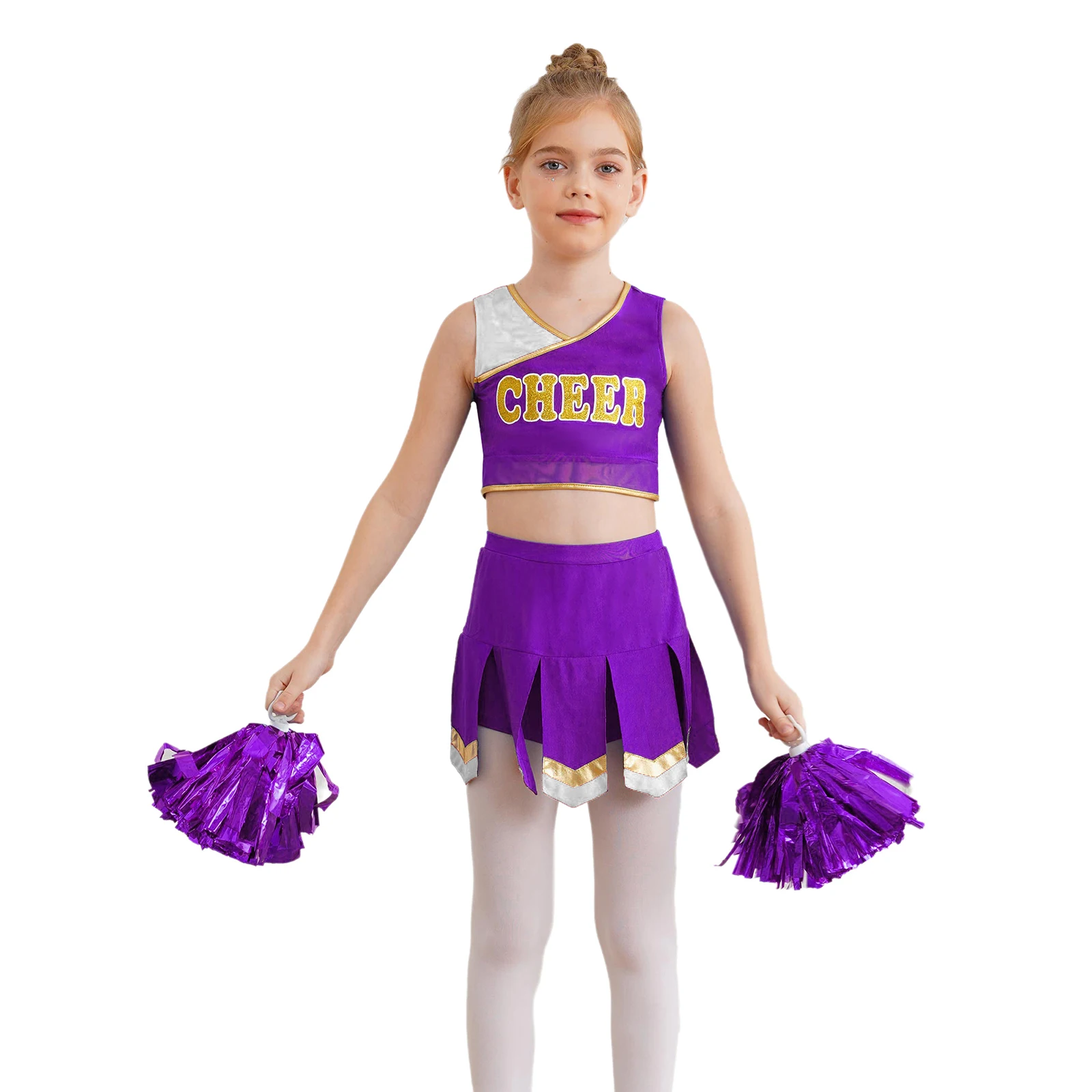 Kids Girls Cheerleader Costume Cheerleading Uniform Crop Top And Skirt Dance Outfit Set Ballet Modern Cheer Ballet Dance Outfits