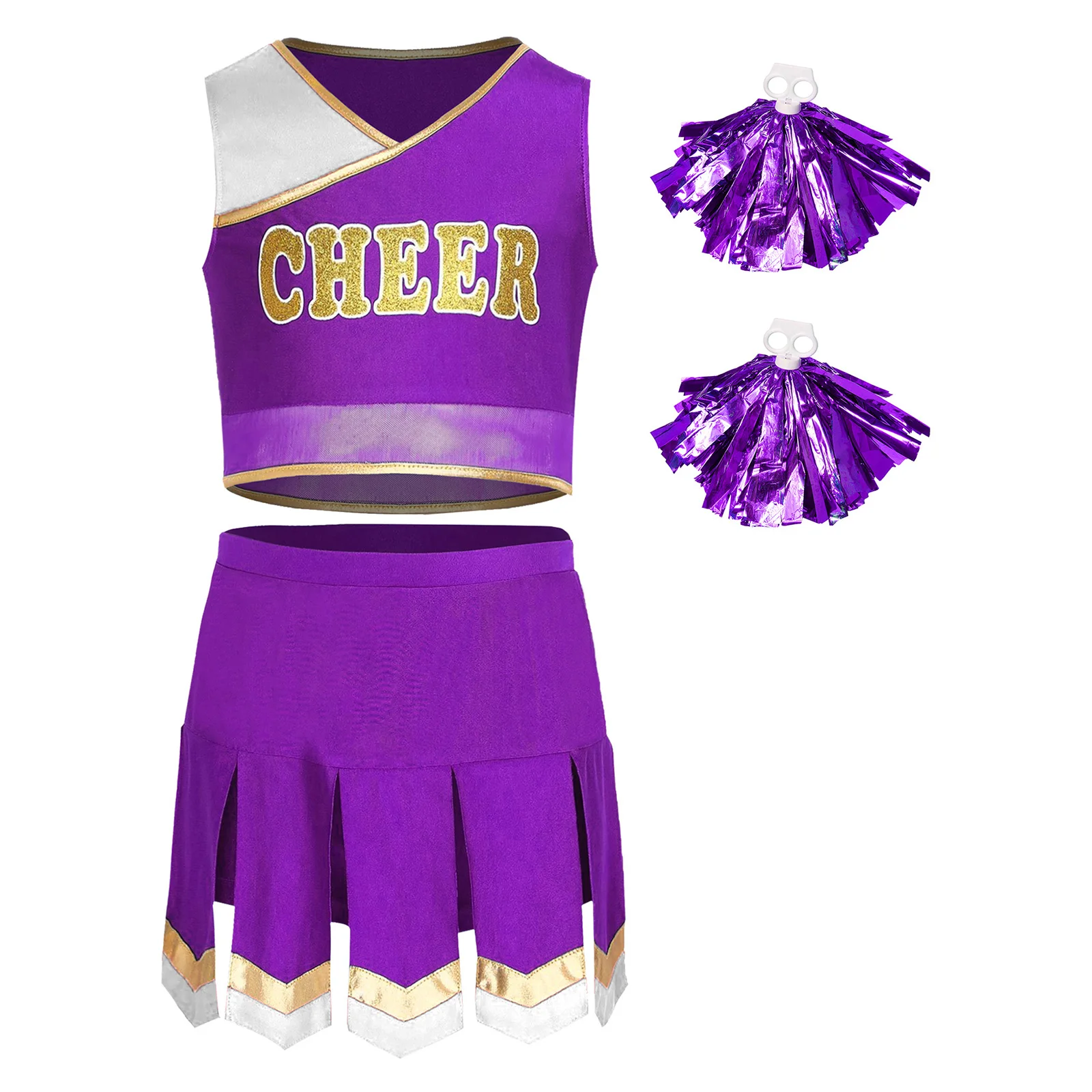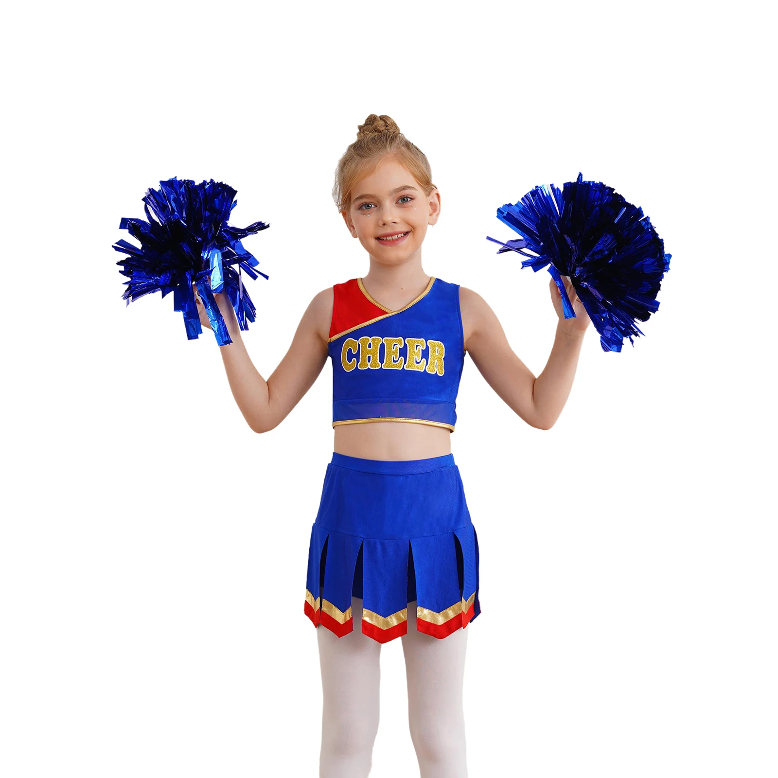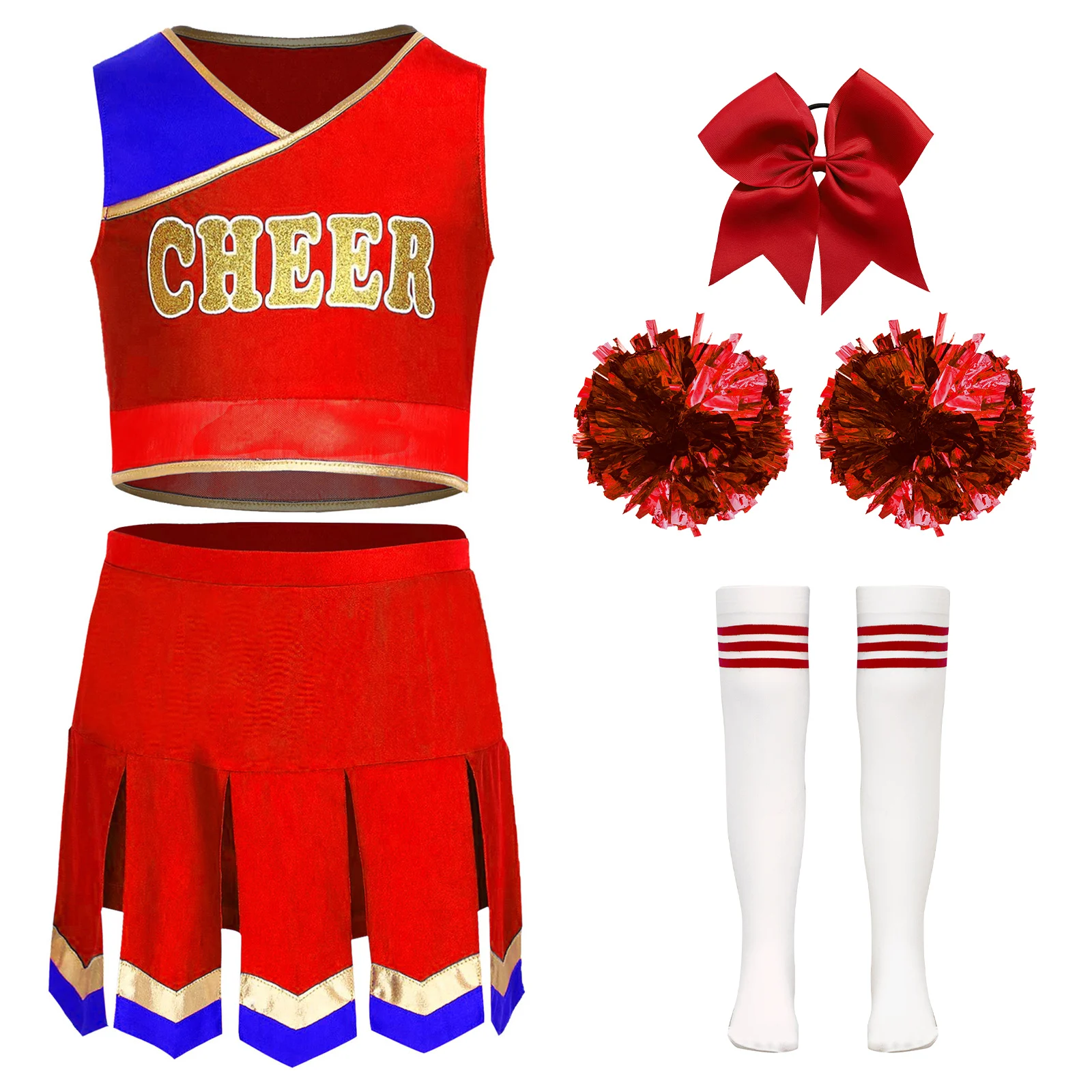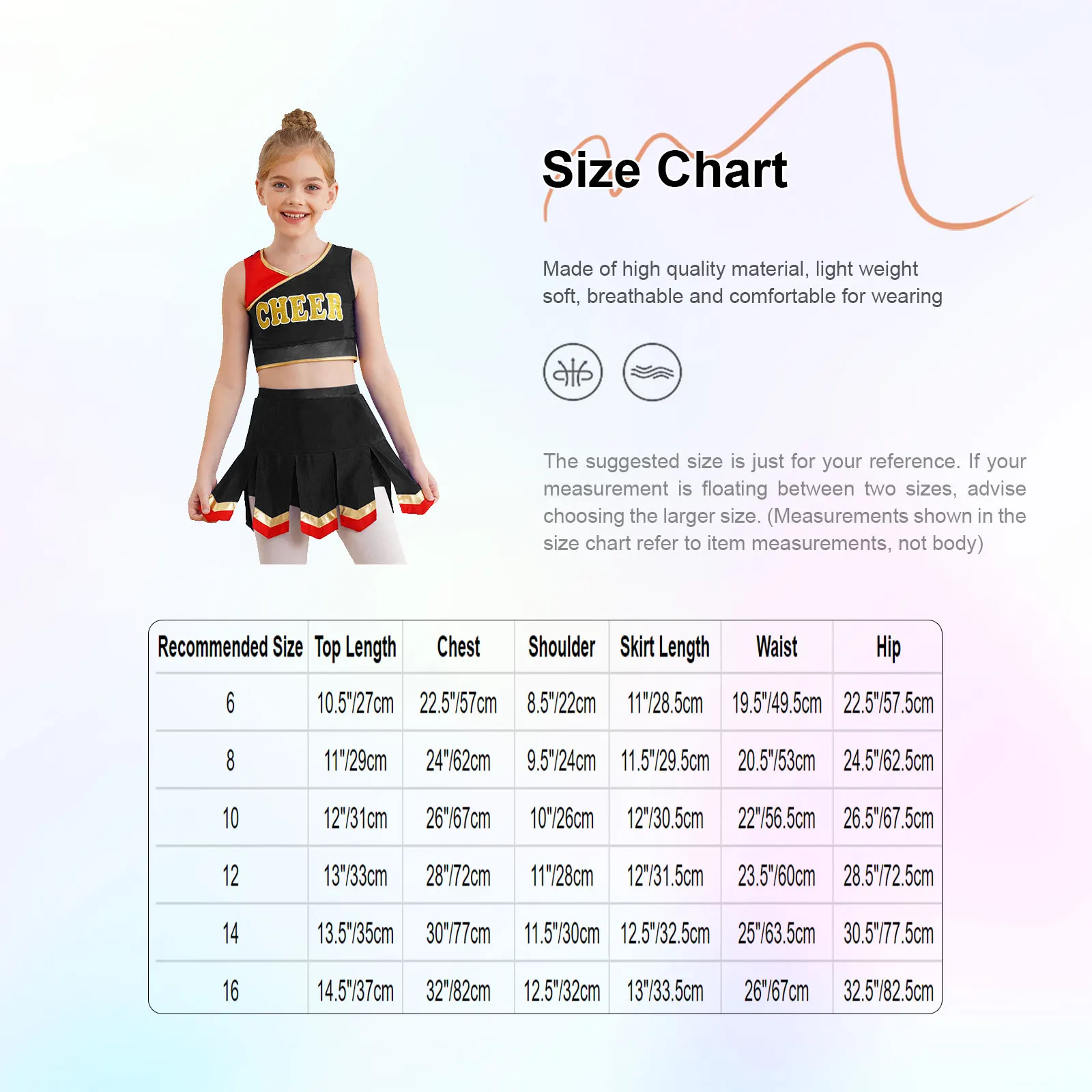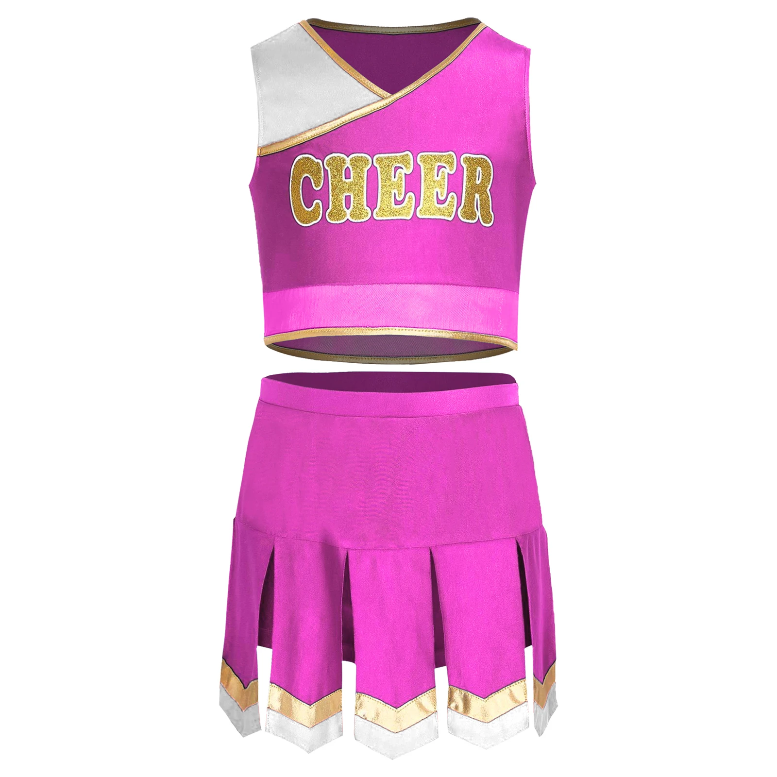 Kids Girls Cheerleader Costume Cheerleading Uniform Crop Top And Skirt Dance Outfit Set Ballet Modern Cheer Ballet Dance Outfits