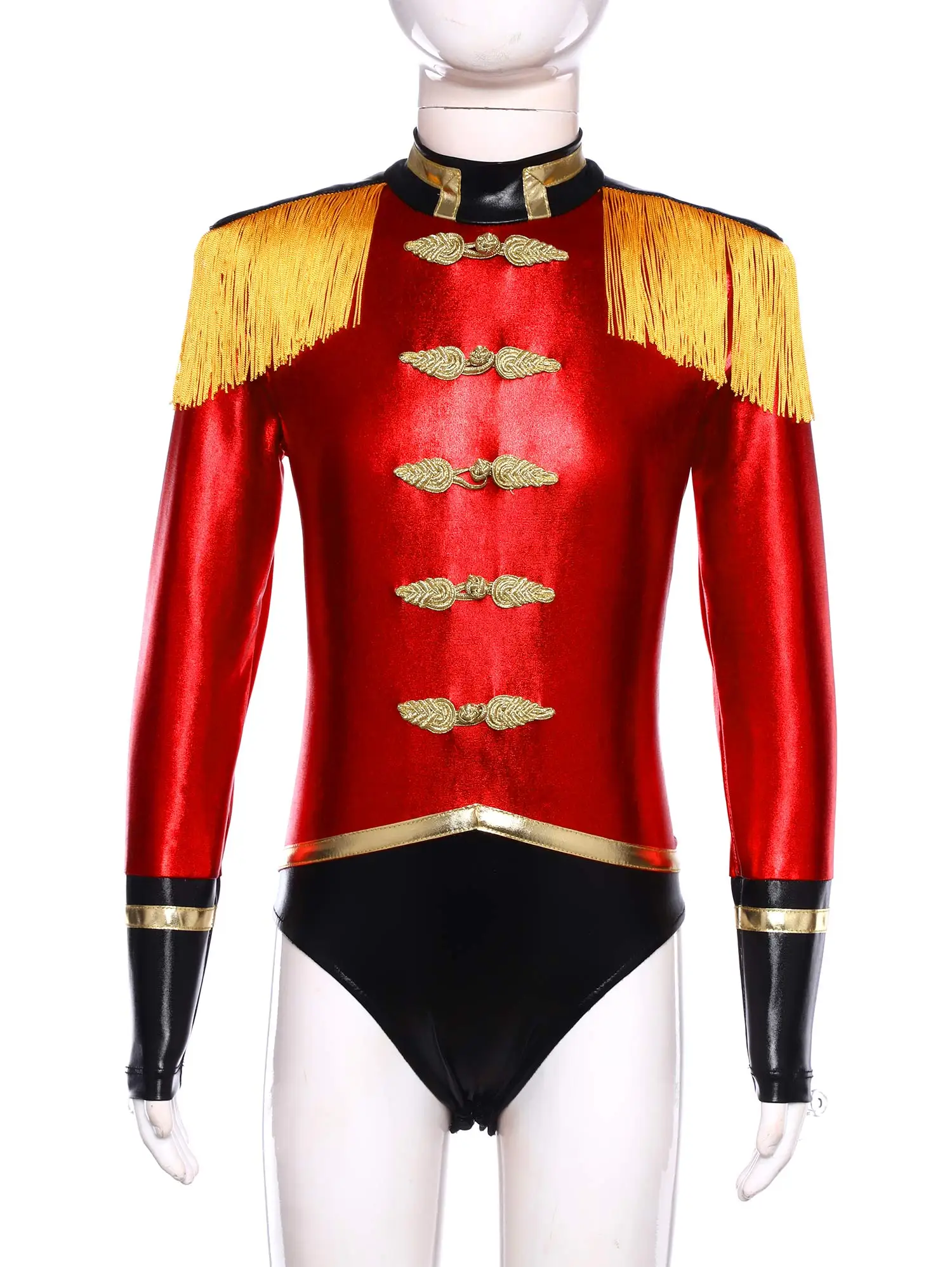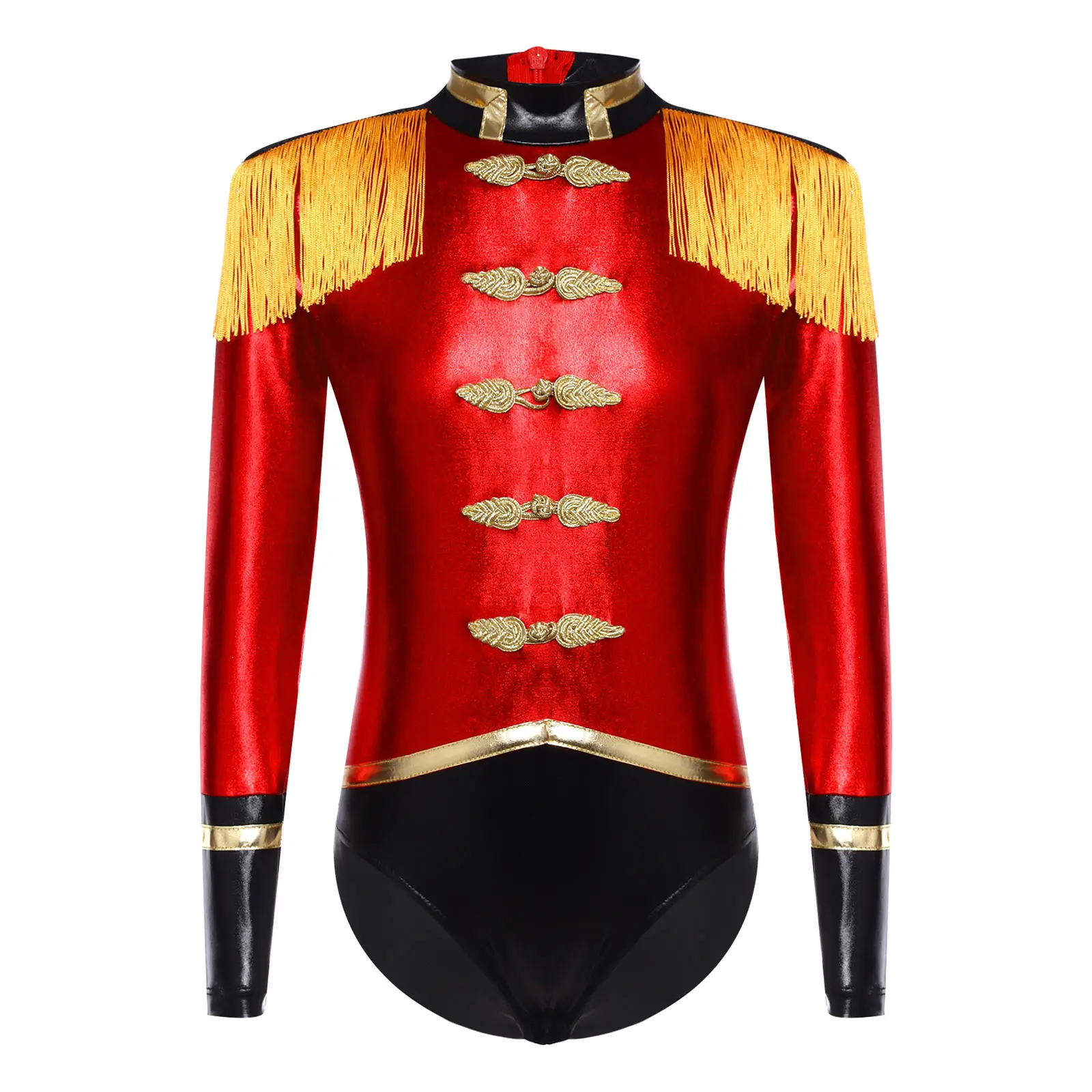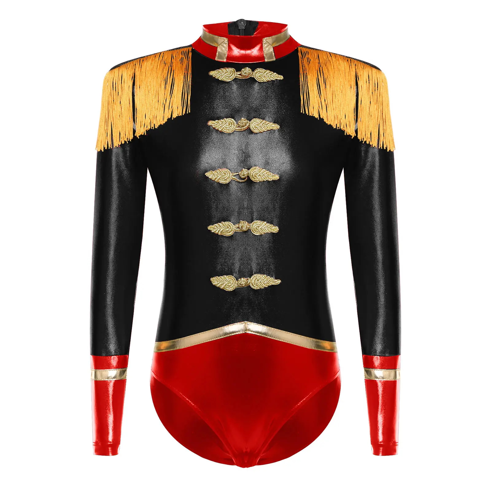 Kids Girls Circus Ringmaster Drummer Major Cosplay Performance Costume Tassel Epaulets Buttons Leotard Circus Jumpsuit Bodysuit