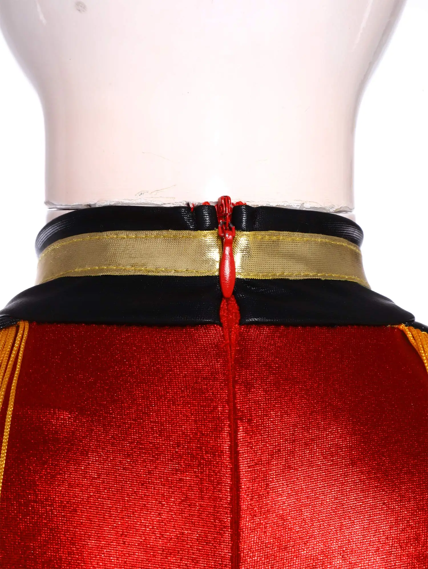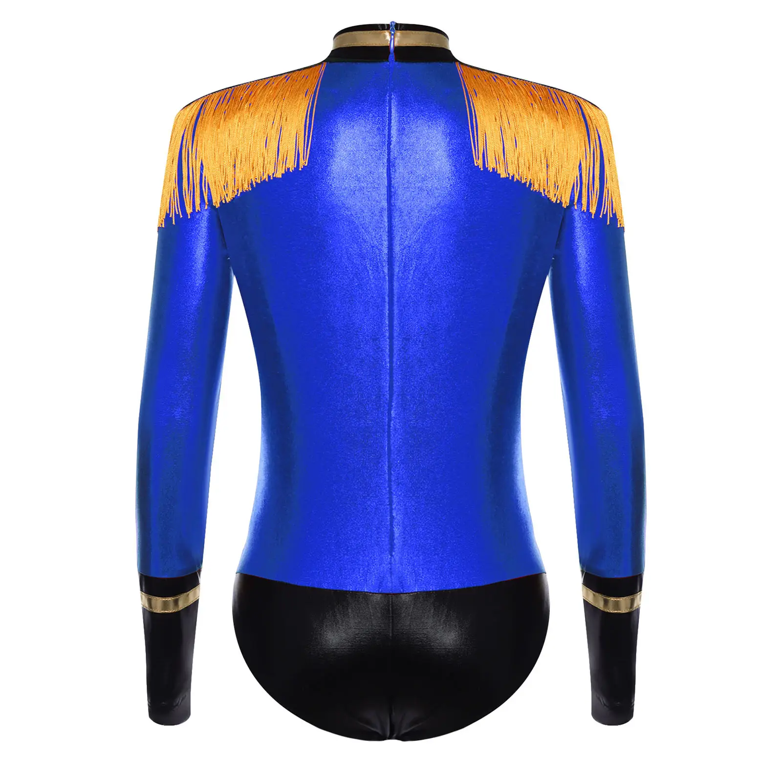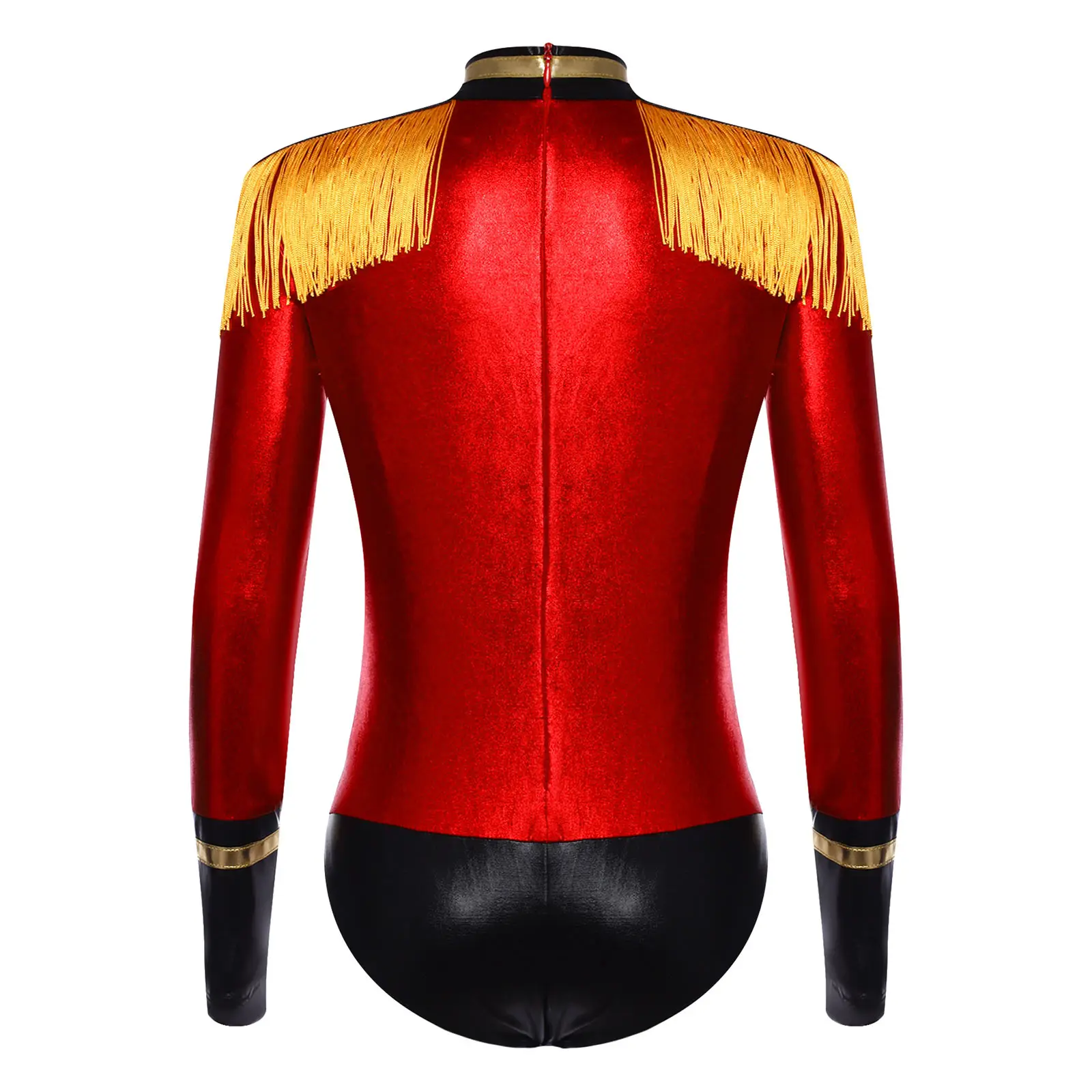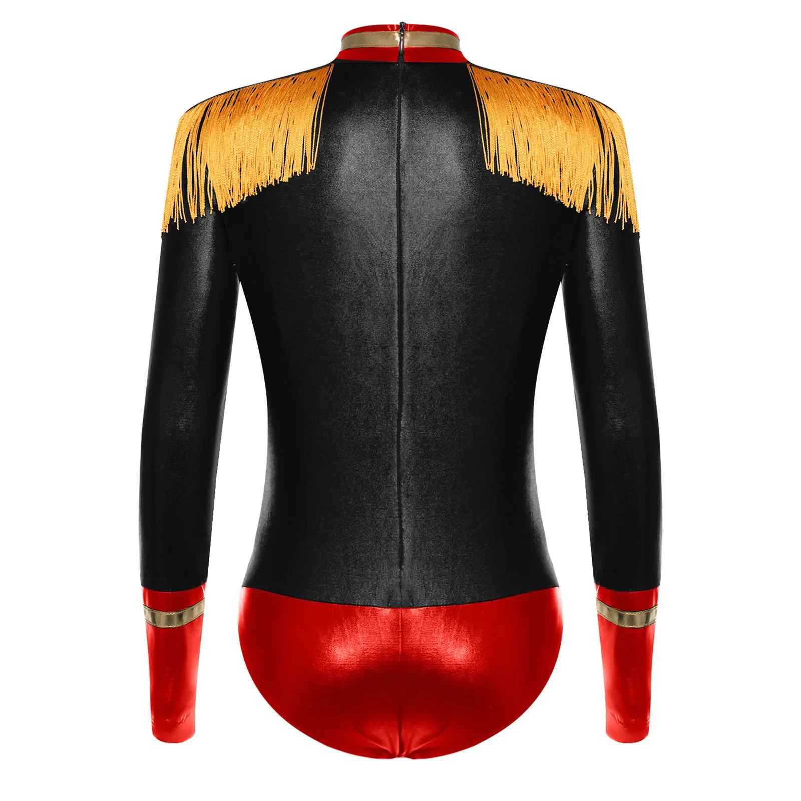 Kids Girls Circus Ringmaster Drummer Major Cosplay Performance Costume Tassel Epaulets Buttons Leotard Circus Jumpsuit Bodysuit