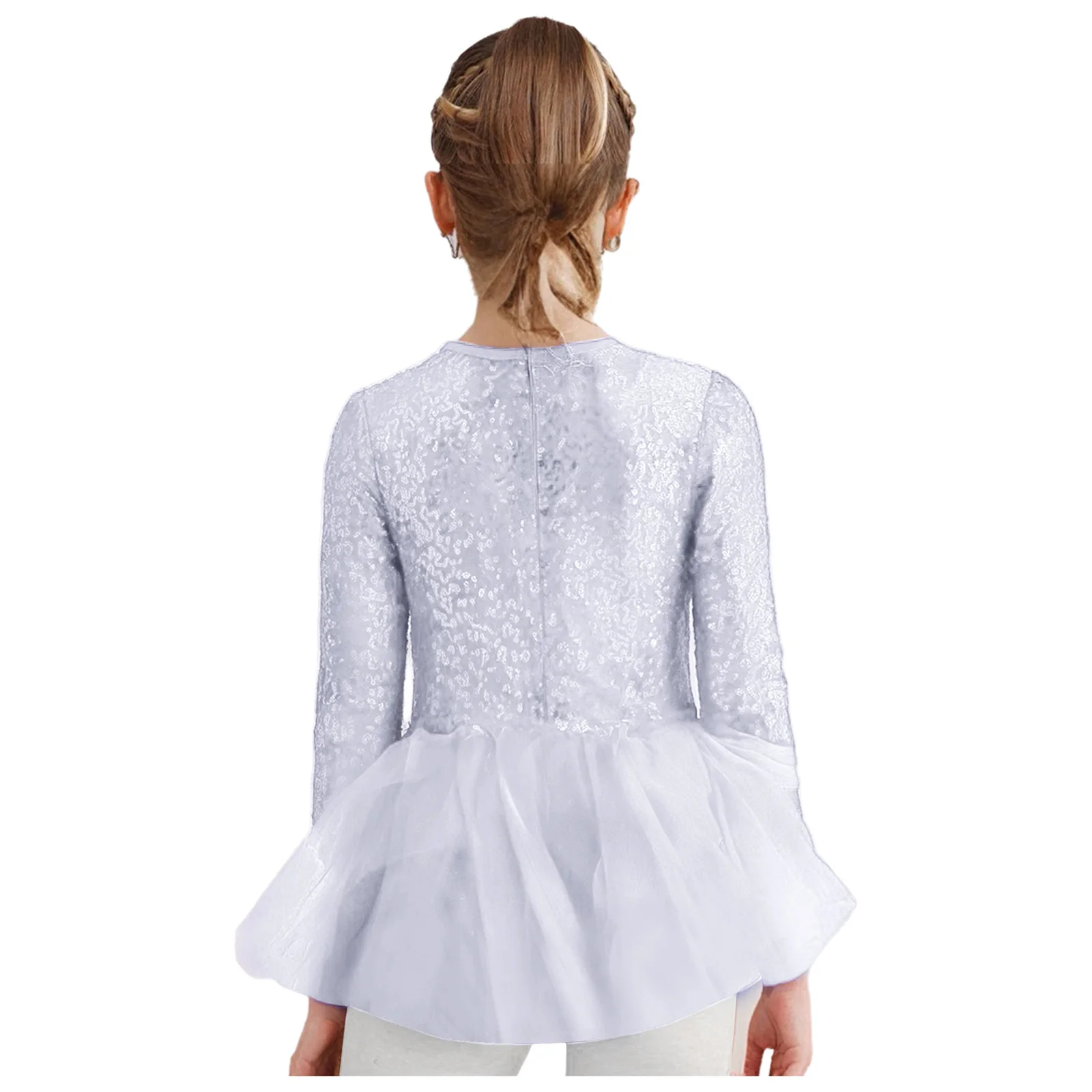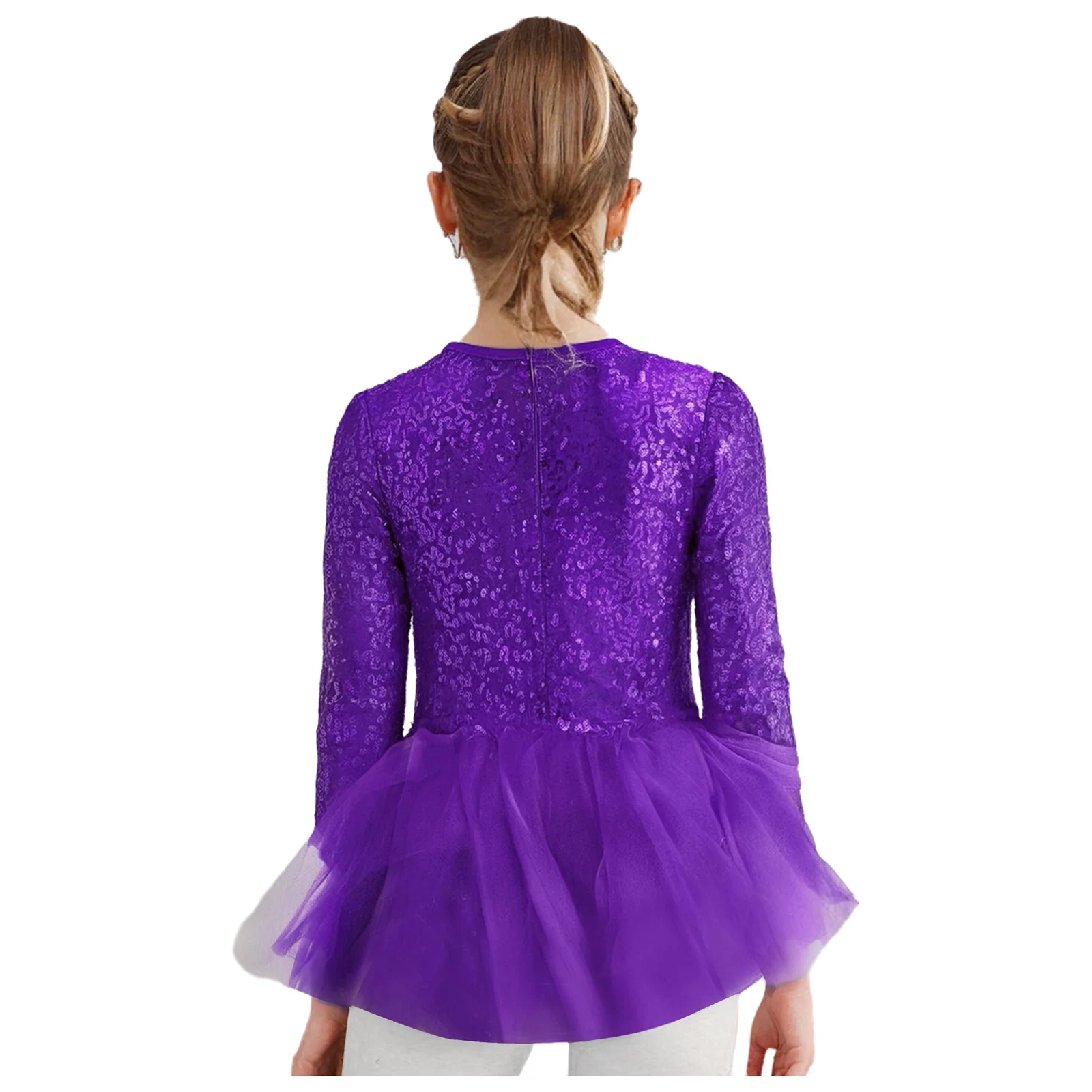 The back invisible zipper closure allows for easy wearing. Perfect for jazz dance performances, dance classes, and other special occasions.
