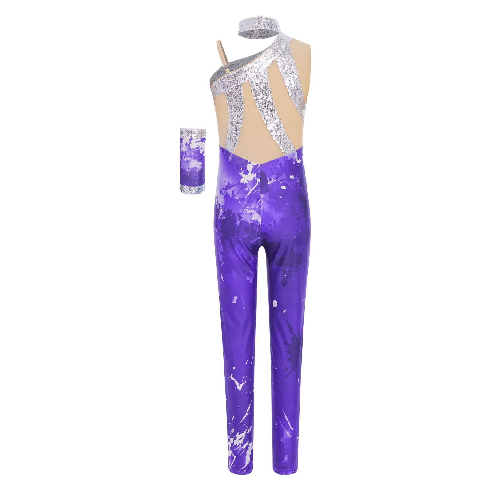 Kids Girls Rhythmic Gymnastics Leotards Artistic Figure Skating Costume Shiny Sequins Printed Ballet Leotard Unitards Jumpsuit