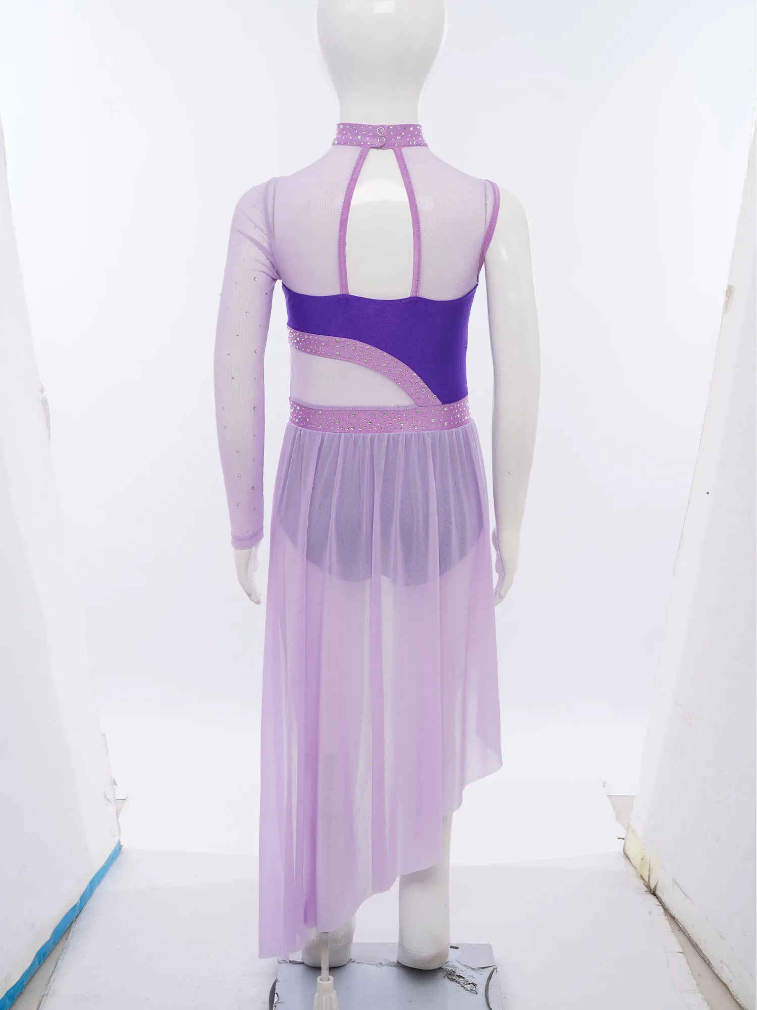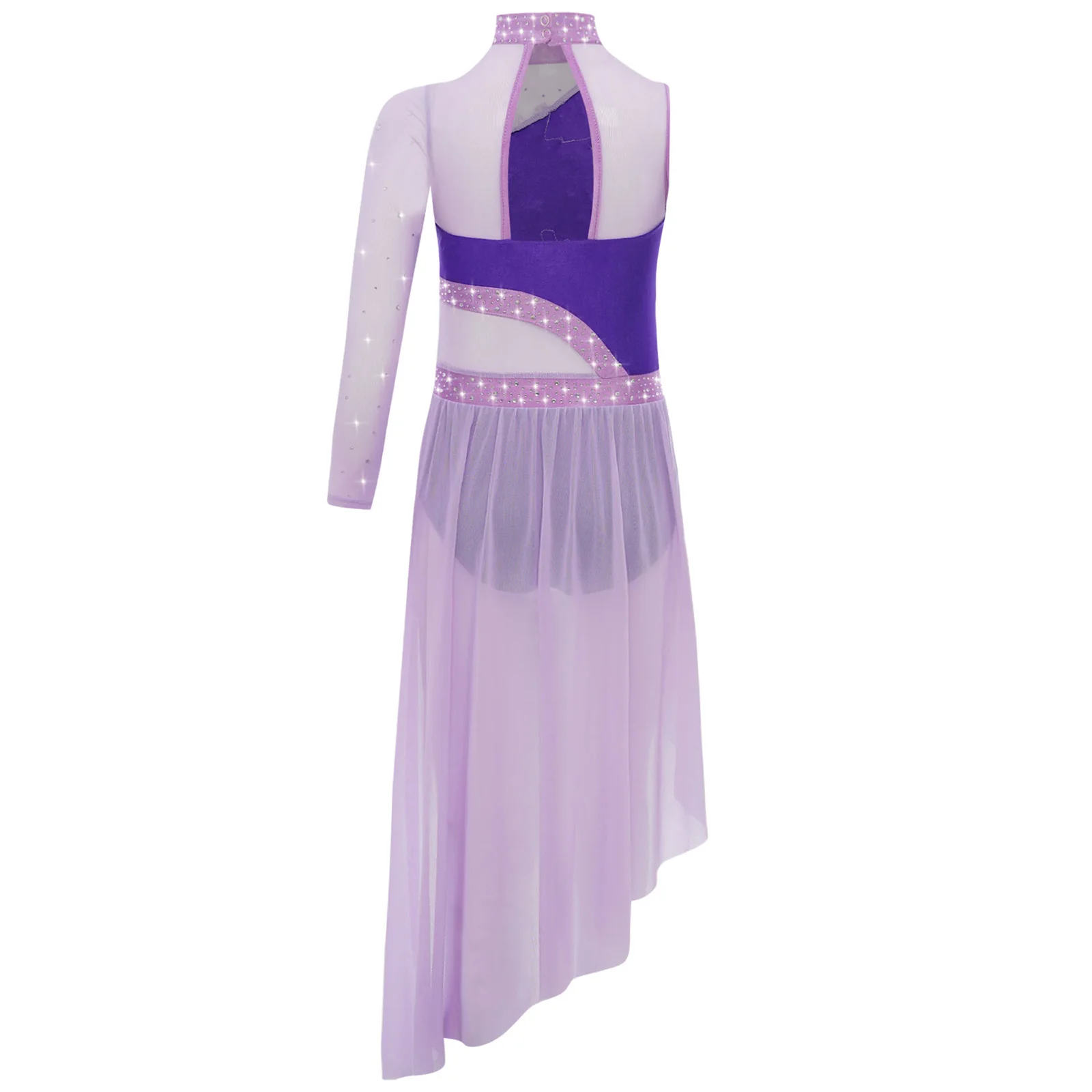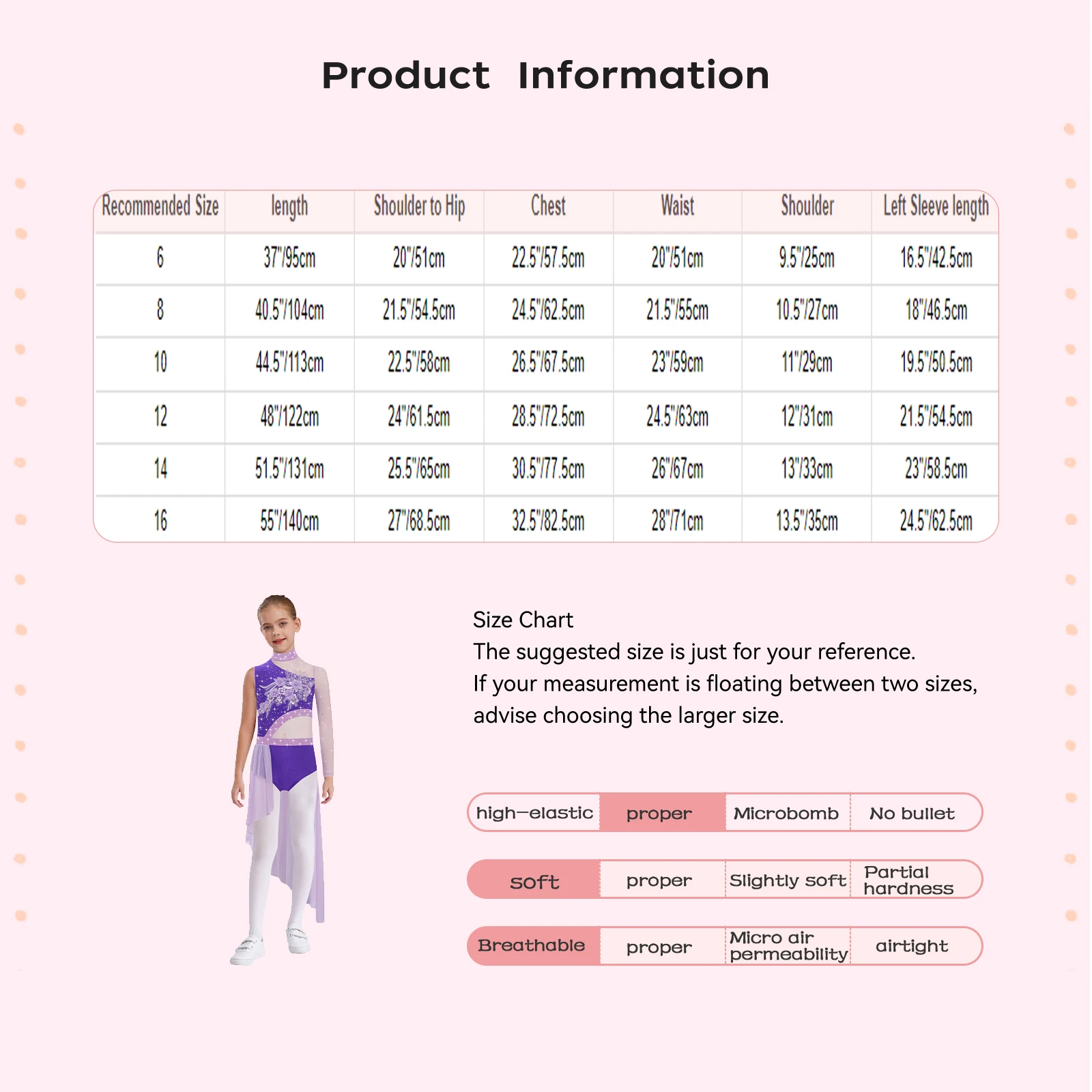 The single-sleeve design with an asymmetric overlay adds a modern and trendy touch, making your girl stand out in the dance scene.