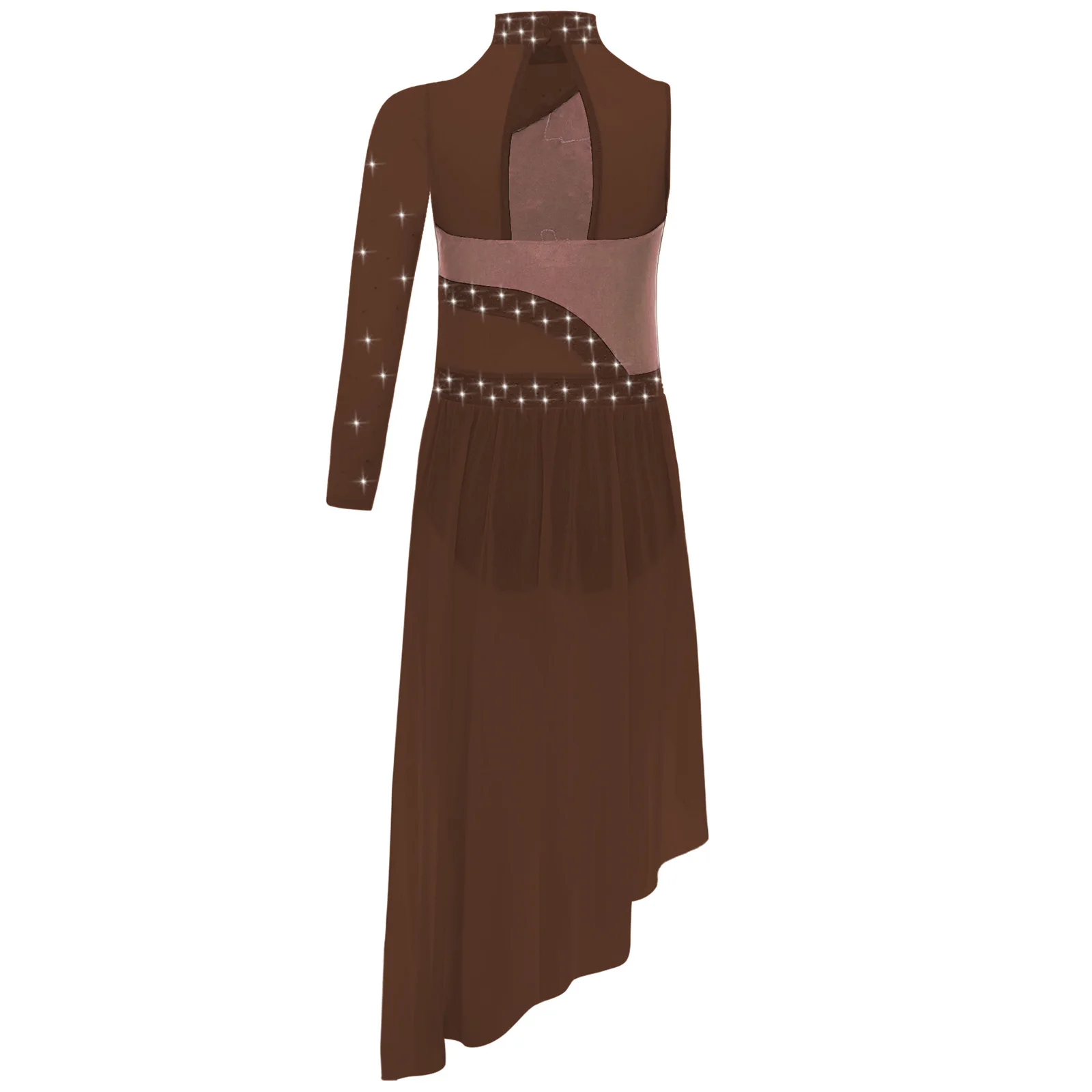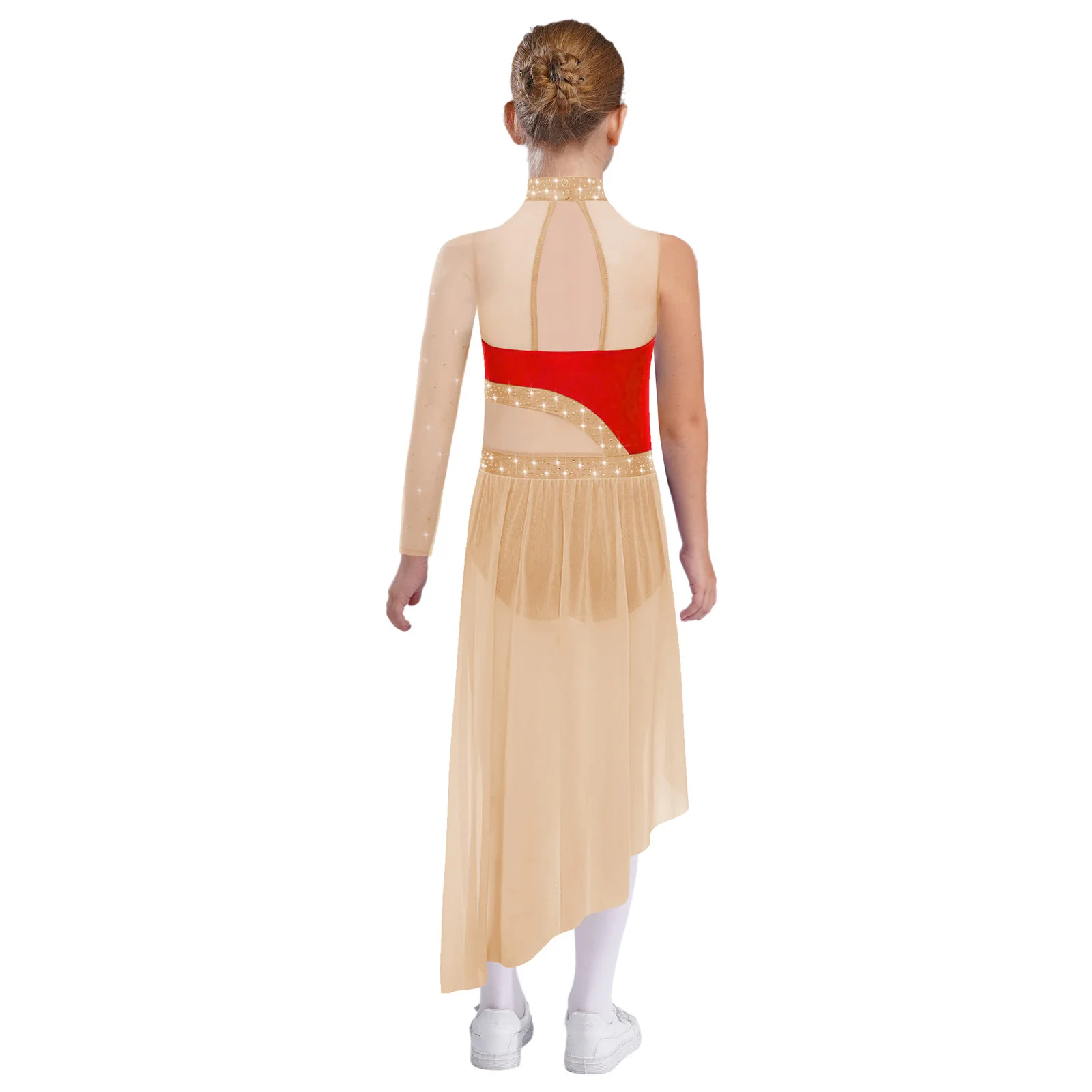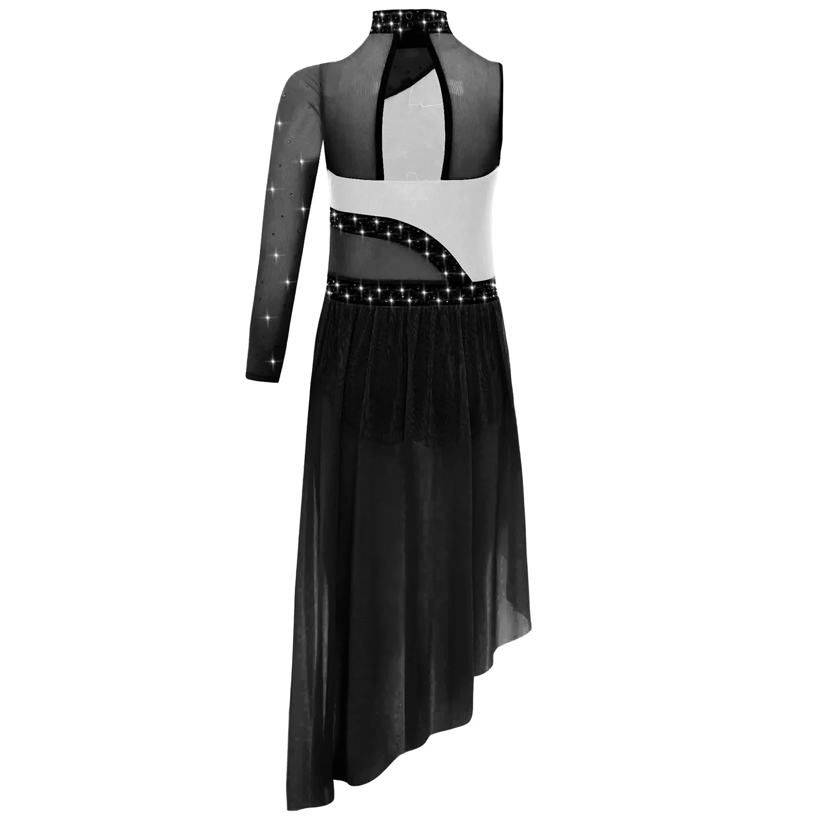 The single-sleeve design with an asymmetric overlay adds a modern and trendy touch, making your girl stand out in the dance scene.