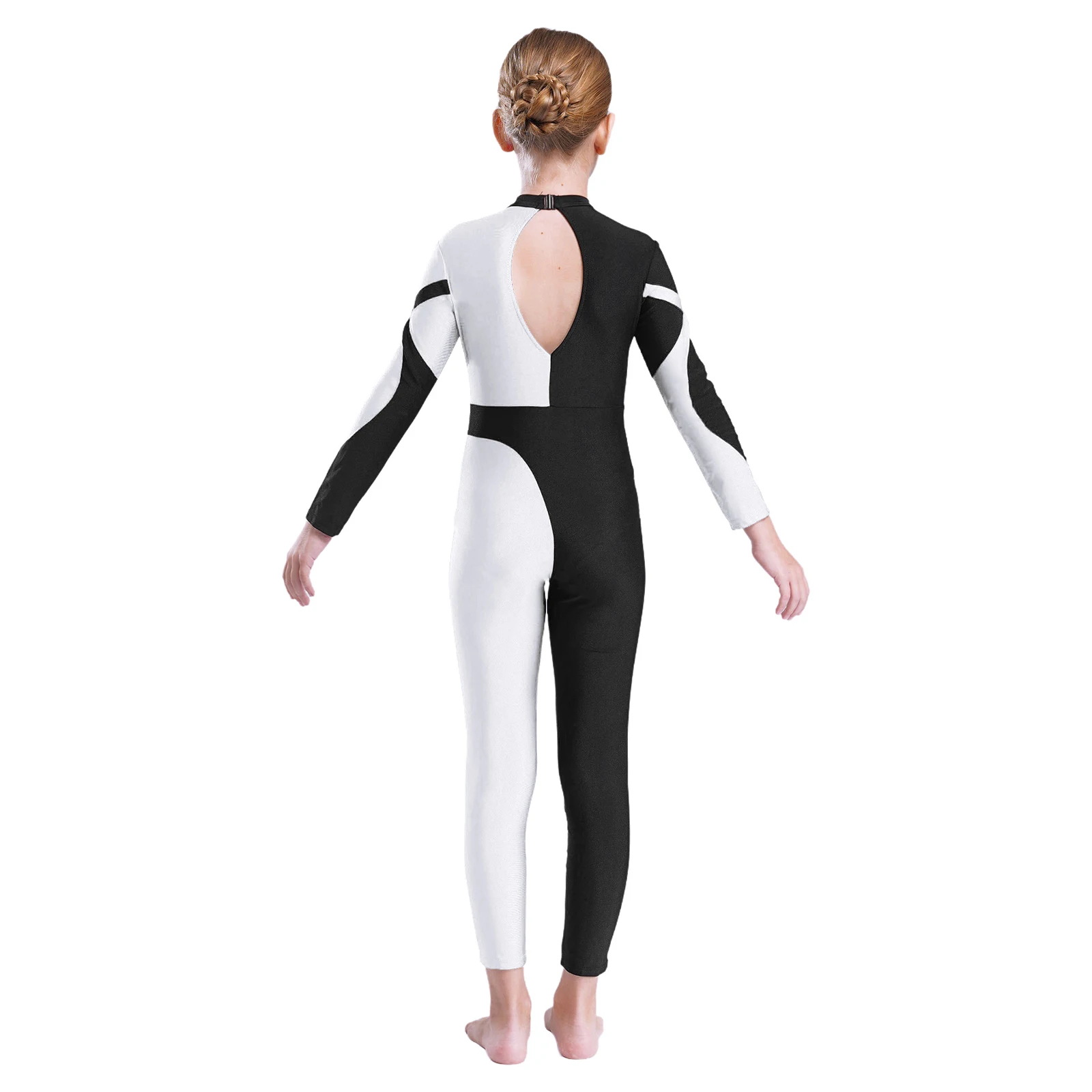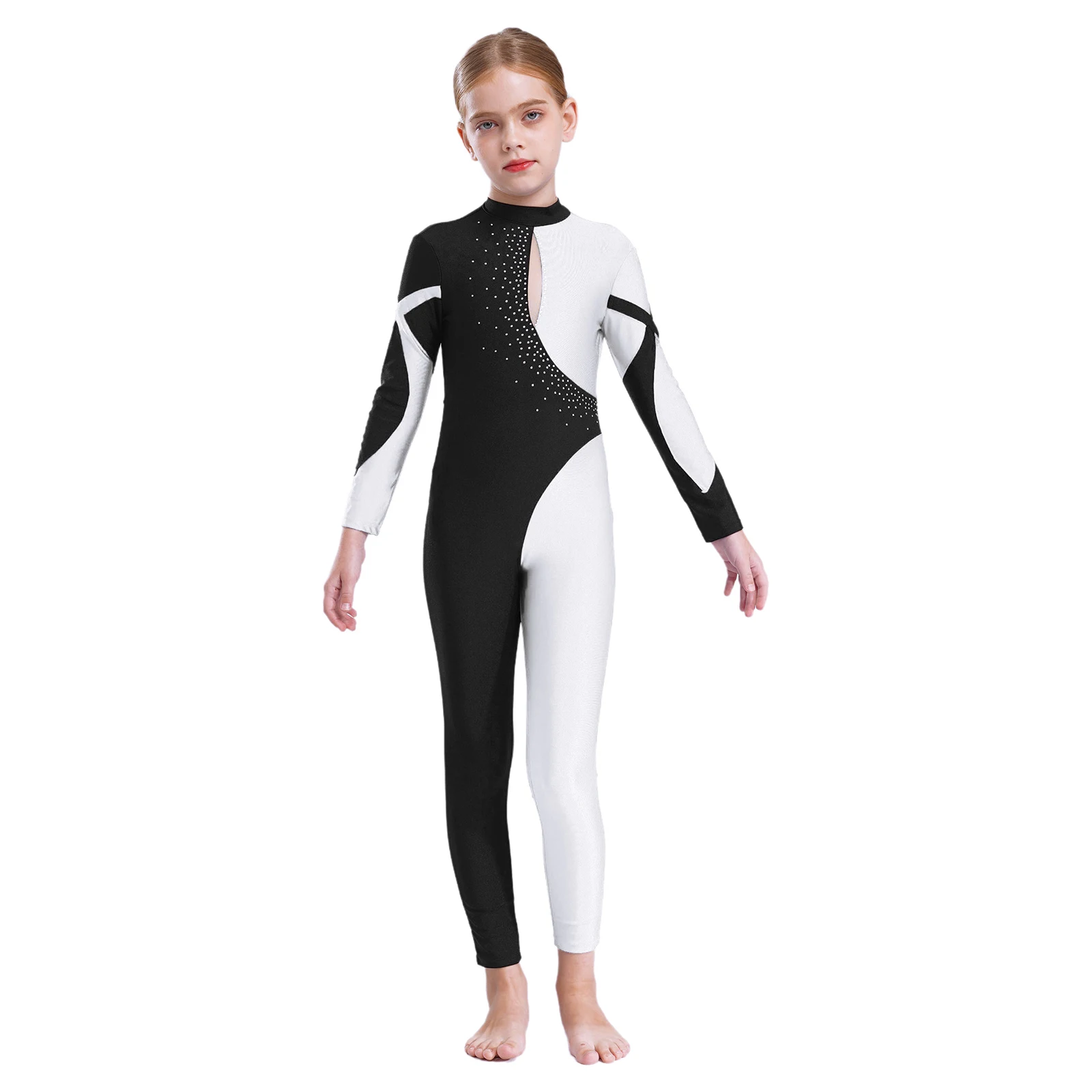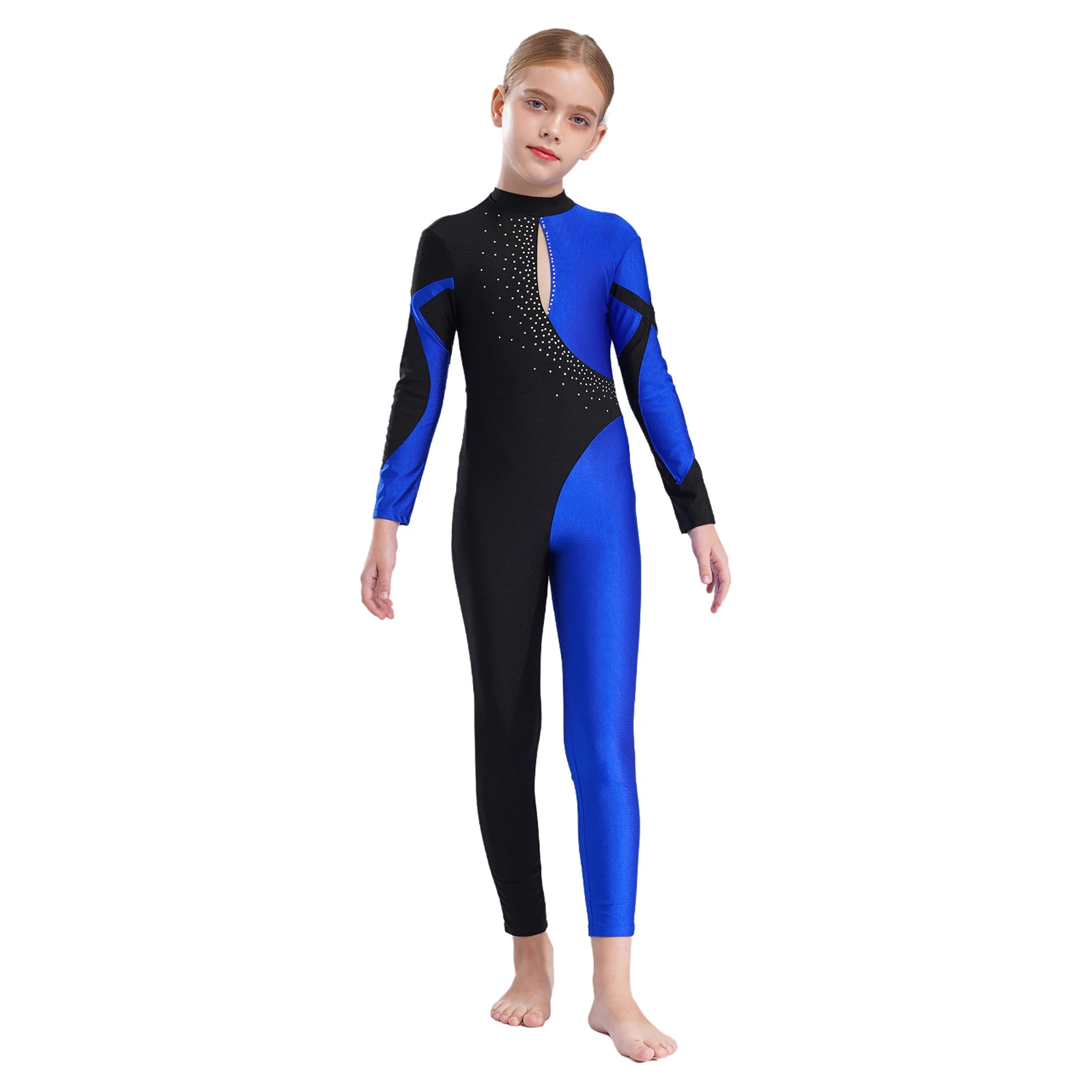 Kids Girls Shiny Rhinestone Gymnastics Artistic Figure Skating Ballet Jersey Costume Athletic Jumpsuit Ballet Unitards Bodysuit