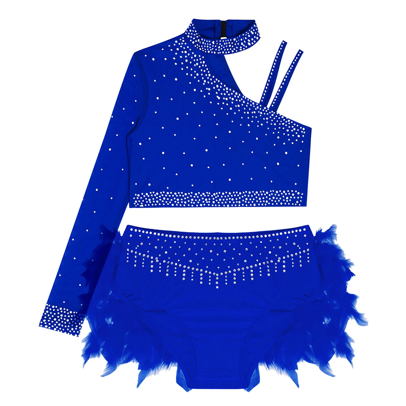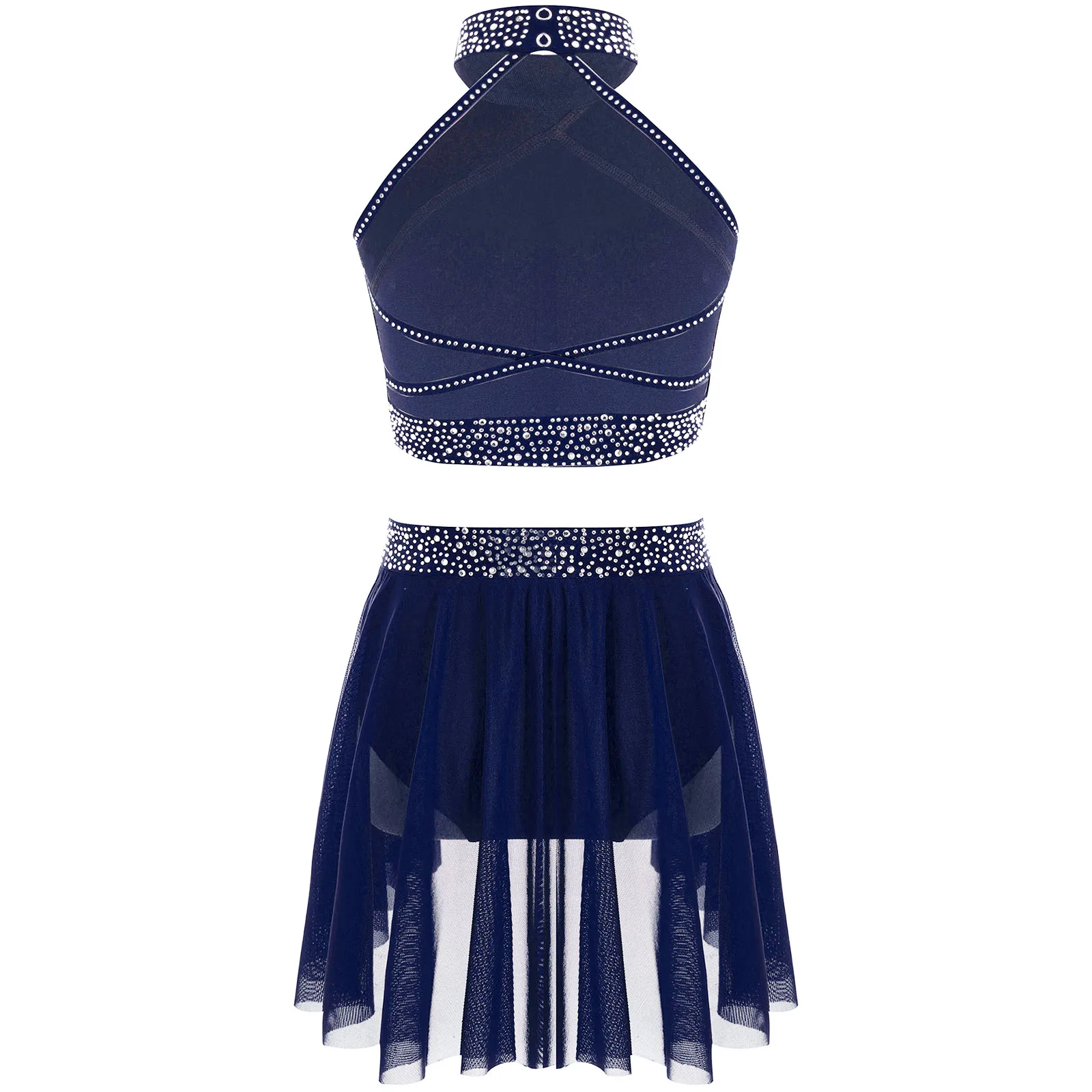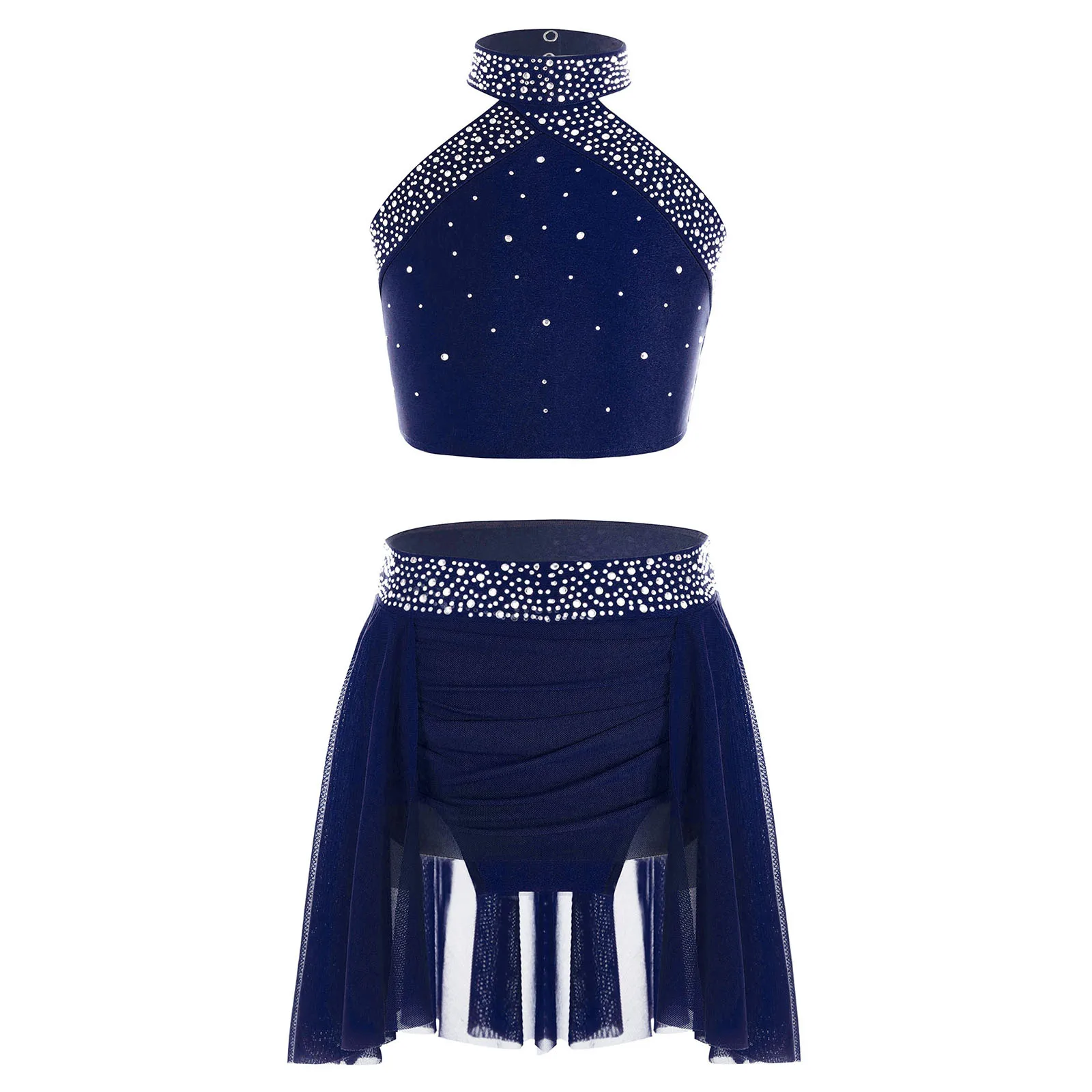 Kids Girls Shiny Rhinestones Ballet Jersey Dance Outfits Gymnastics Artistic Skating Dress Lyrical Dance Performance Costume