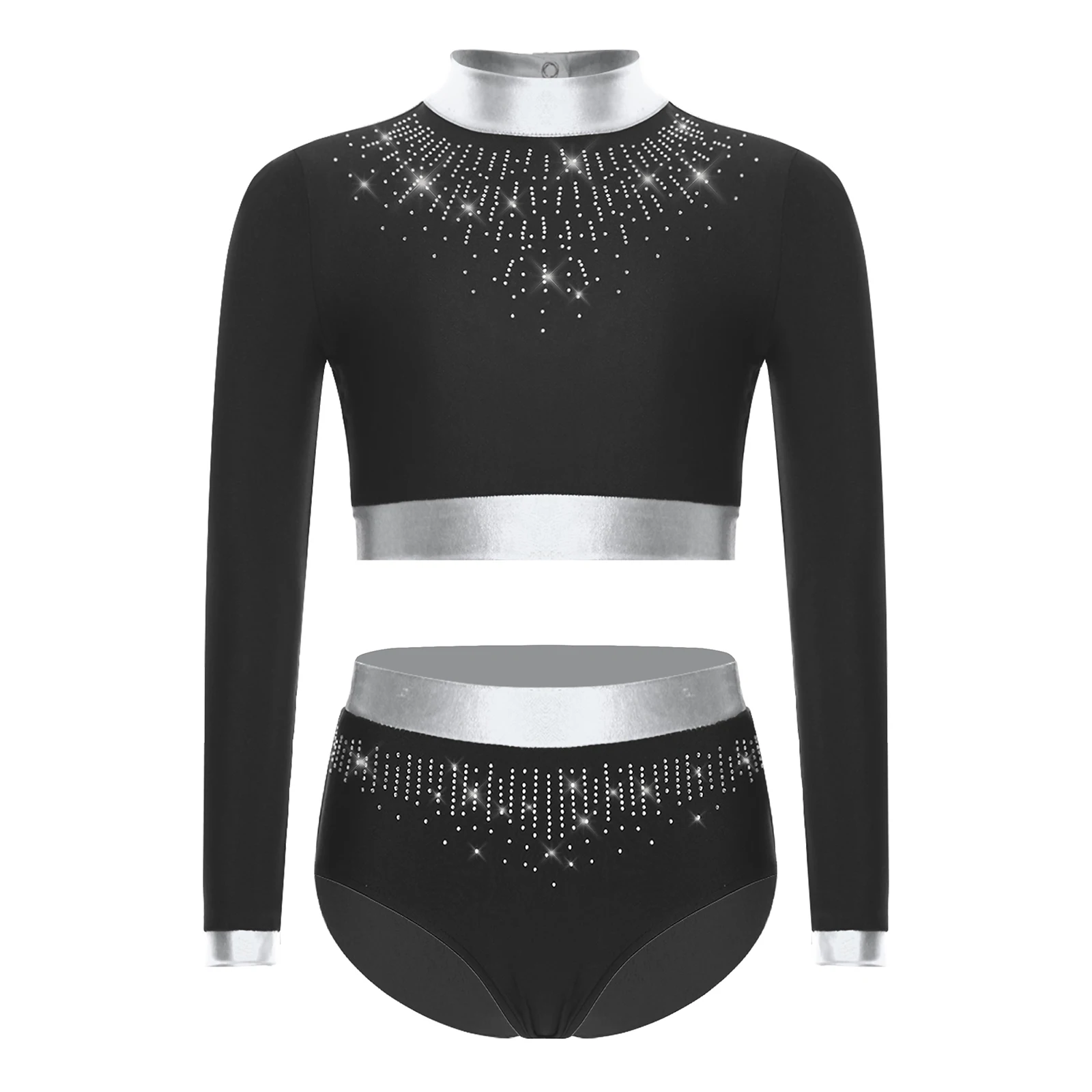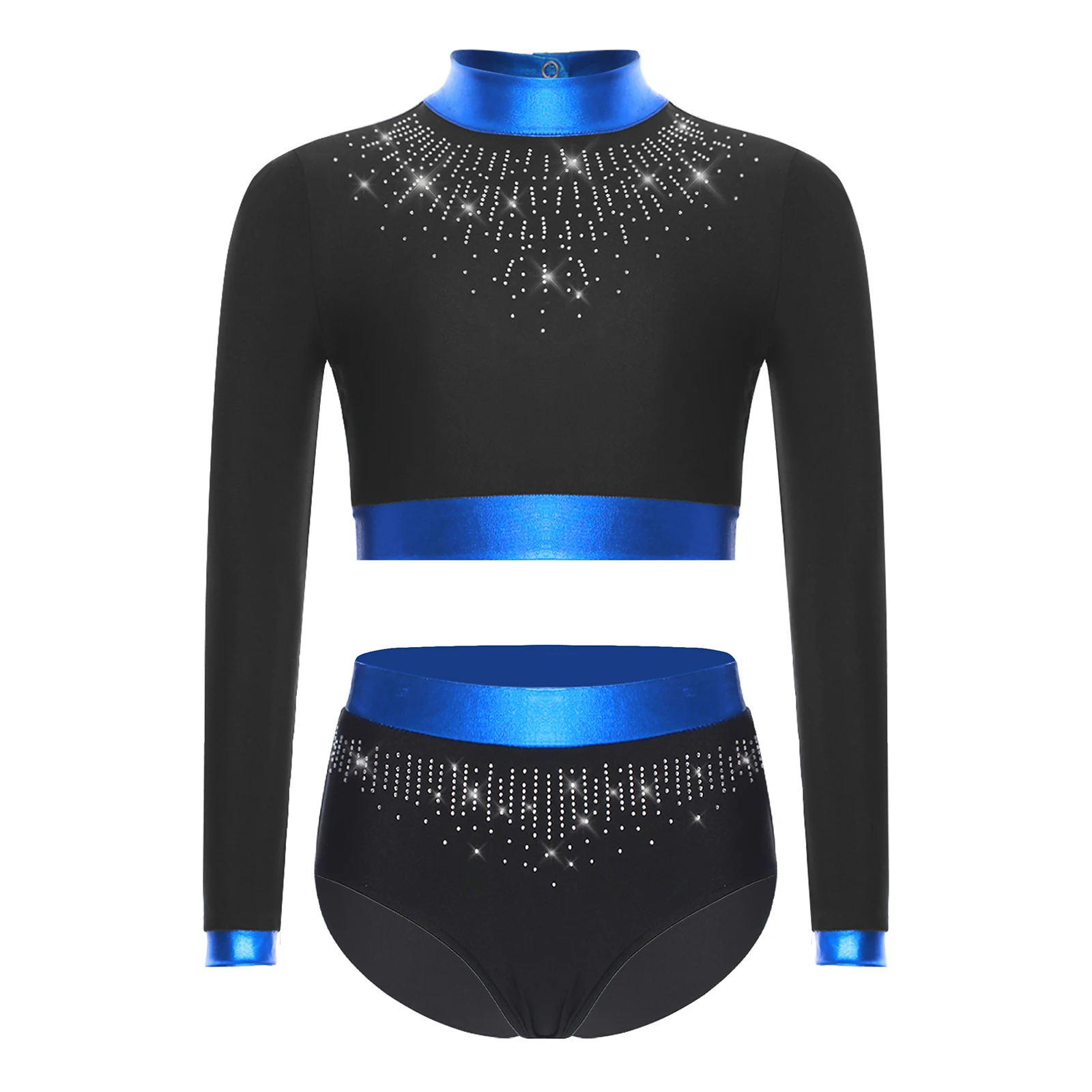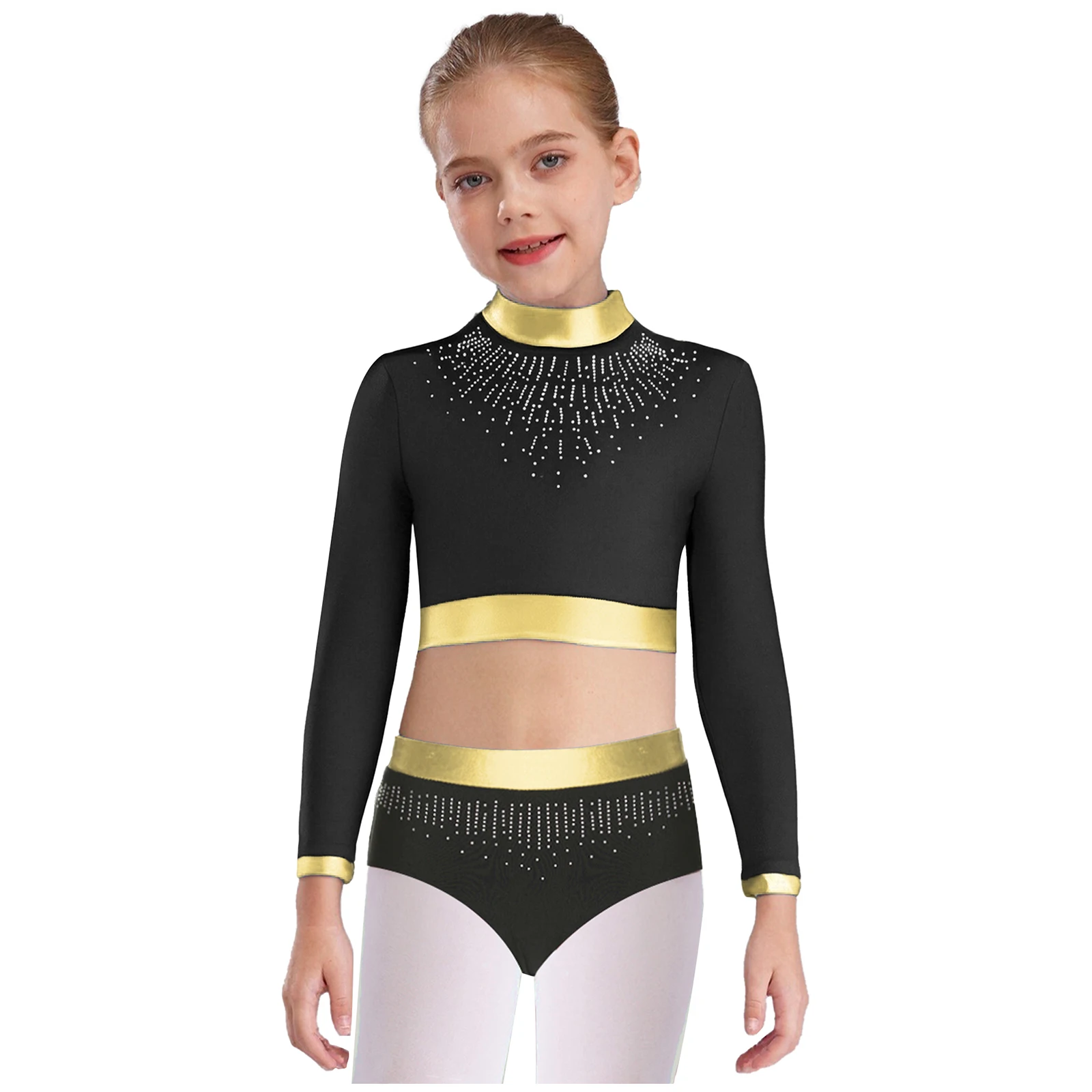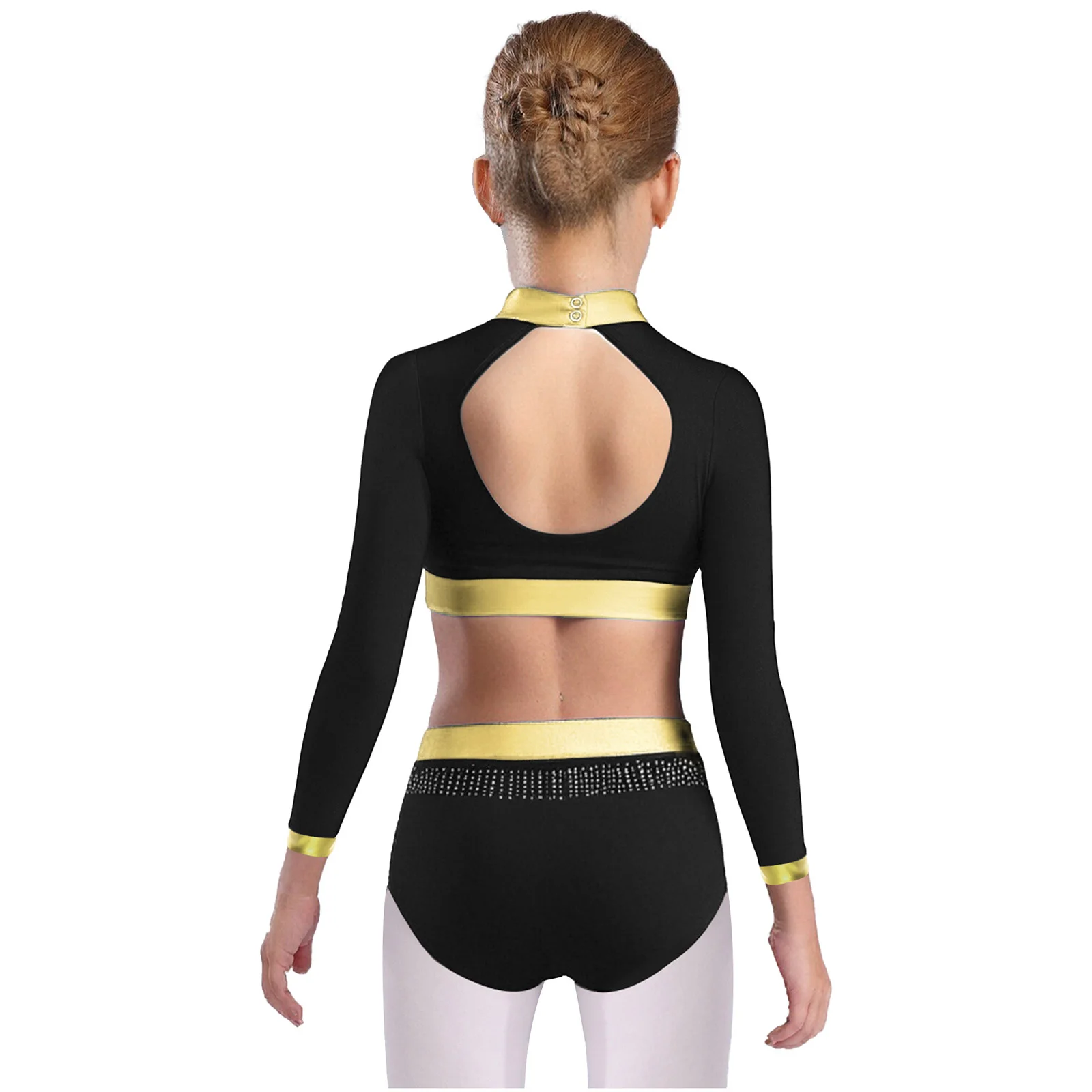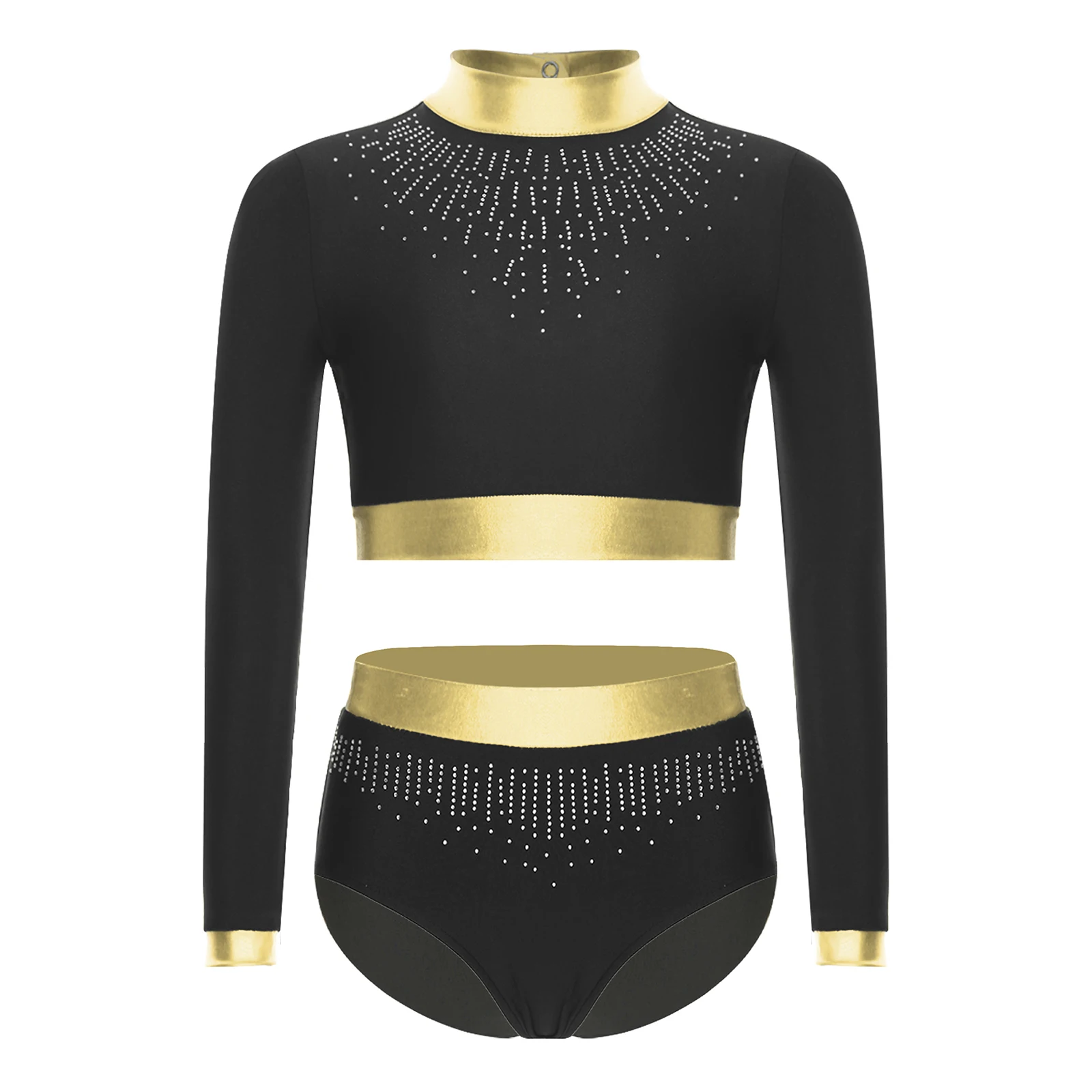 The metallic details and shiny rhinestones add a touch of glamour and are in line with the current trendy aesthetic, making girls stand out in performances.