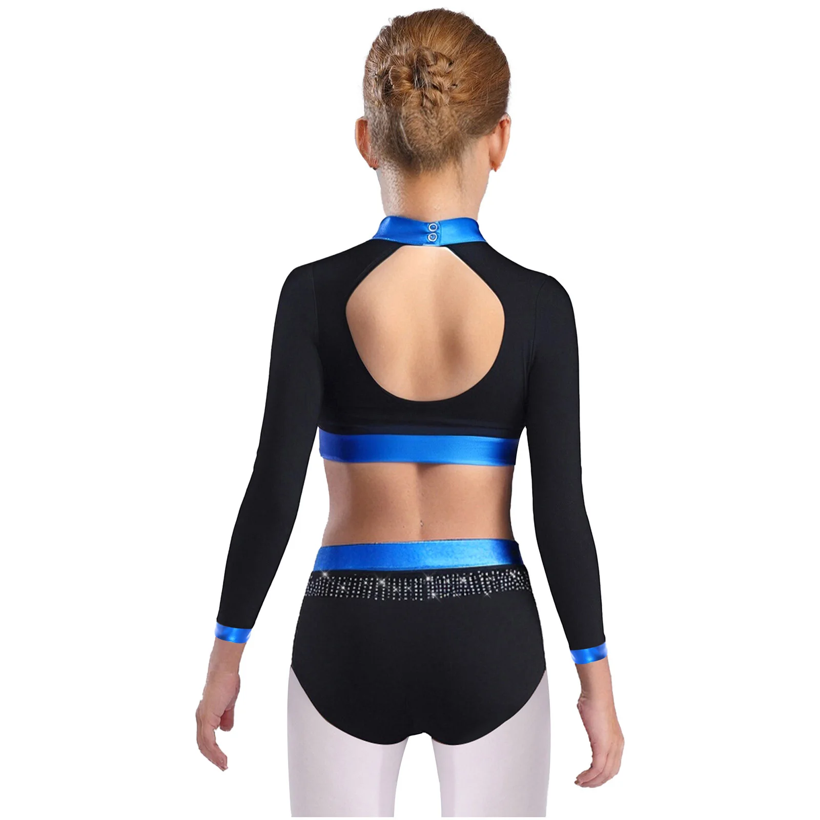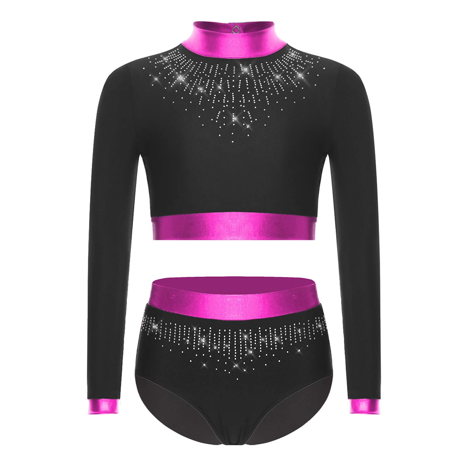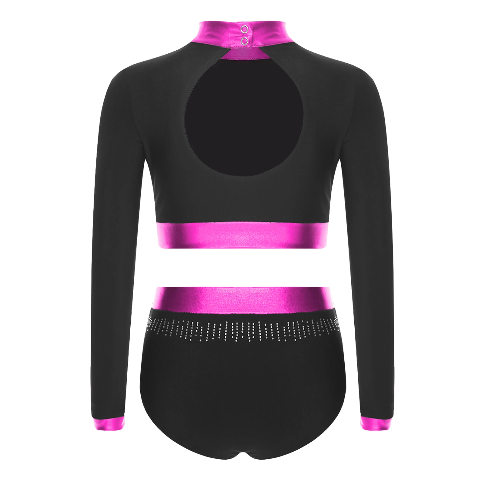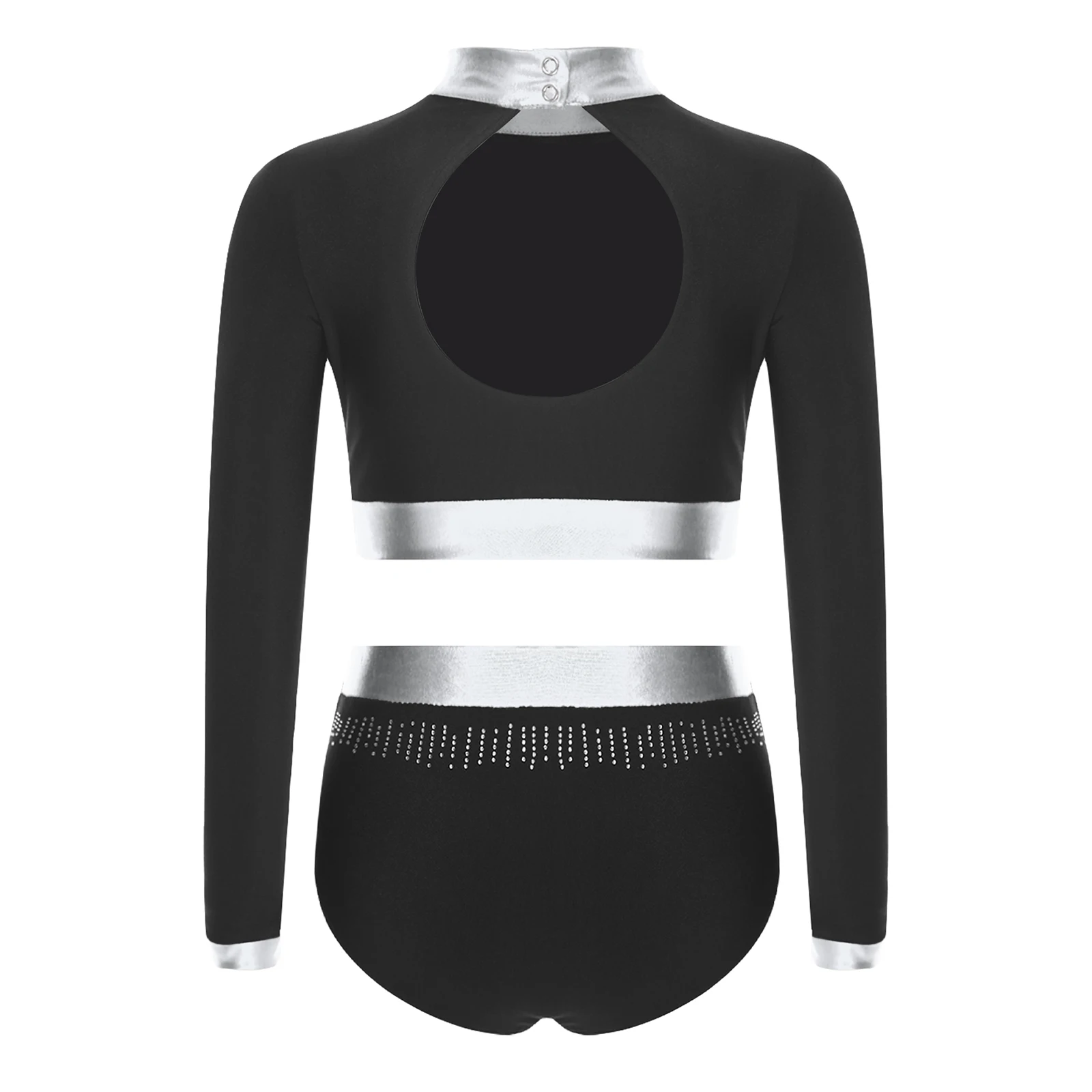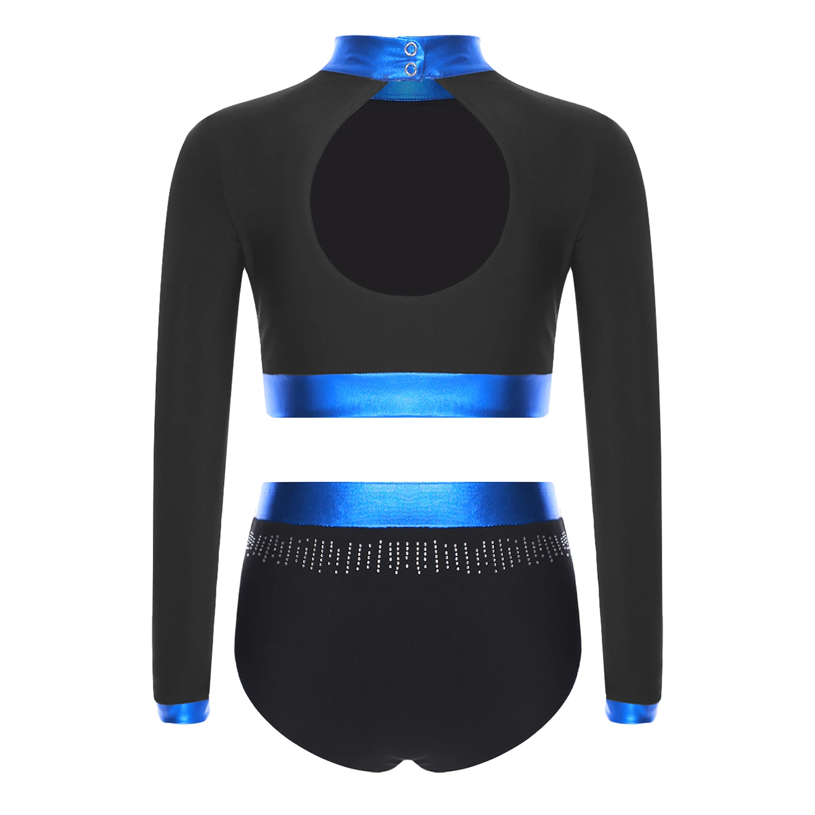 The metallic details and shiny rhinestones add a touch of glamour and are in line with the current trendy aesthetic, making girls stand out in performances.