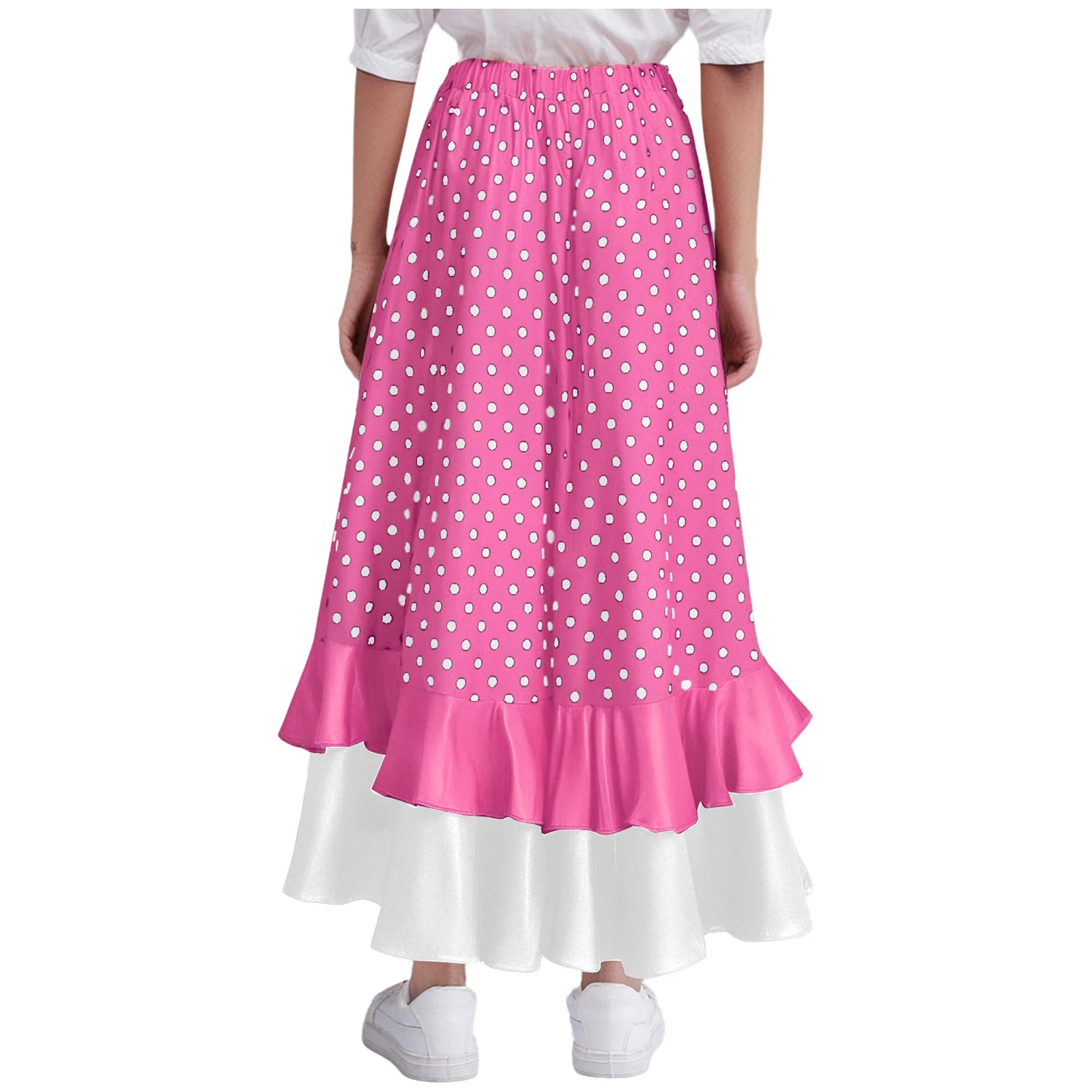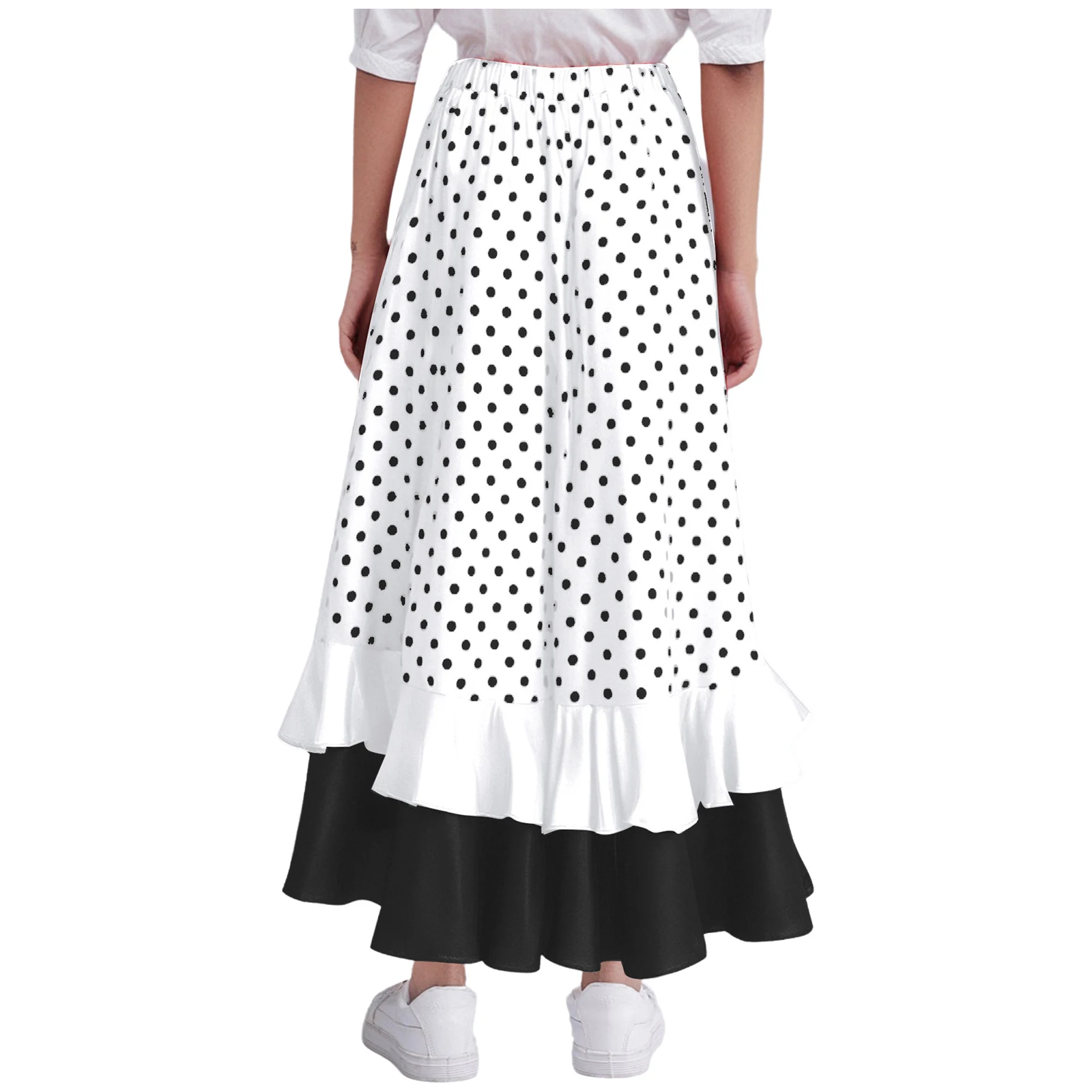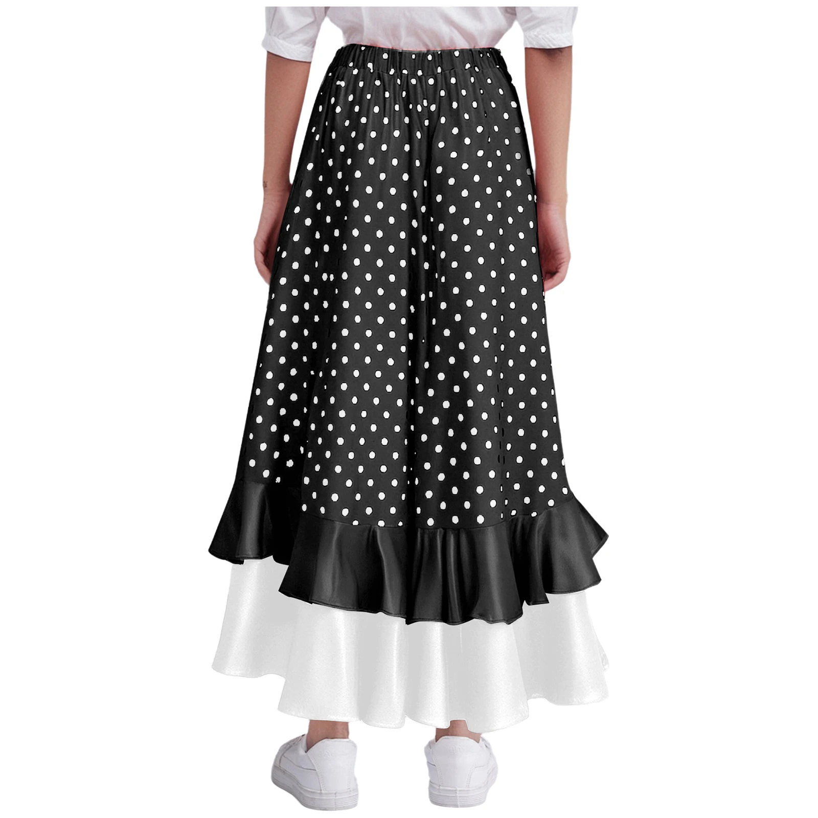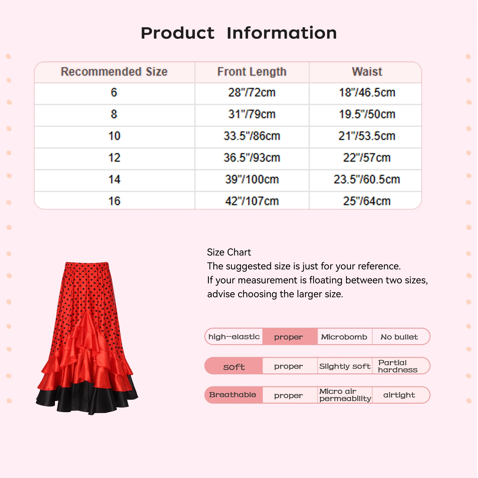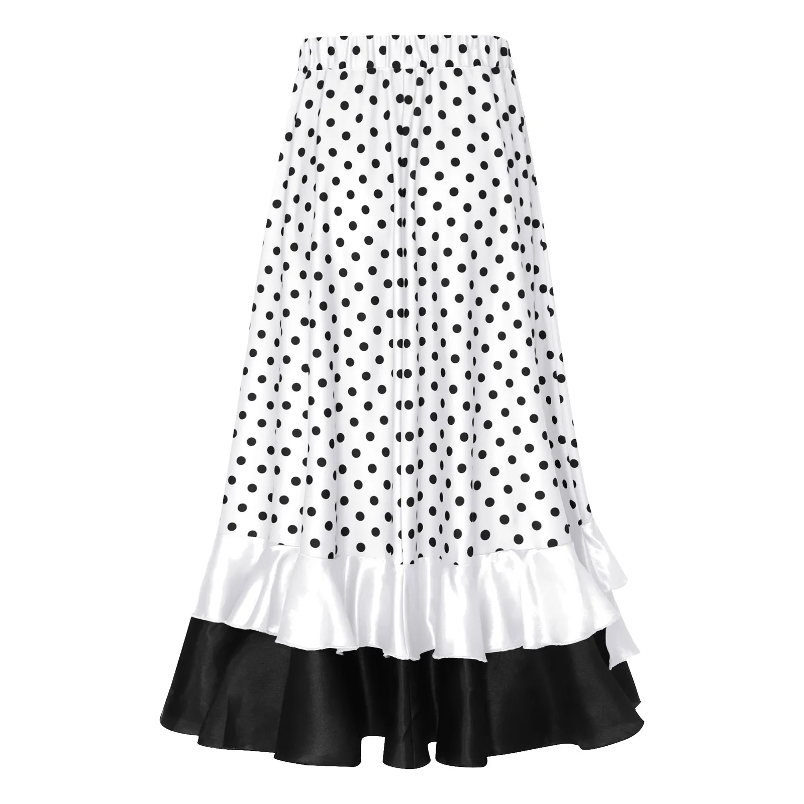 Kids Girls Spanish Flamenco Polka-Dot Ruffle Waltz Skirt Layered Ruffled Design Long Swing Skirt Latin Ballroom Dance Costume