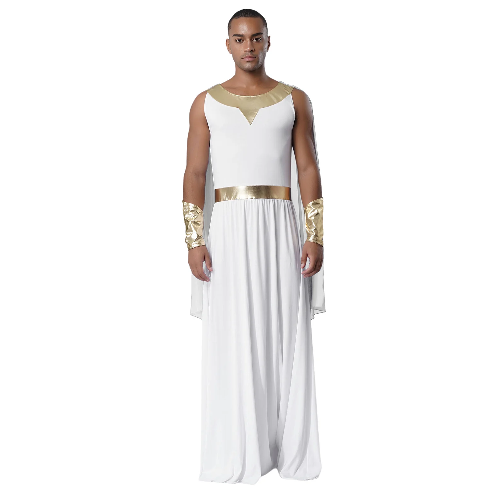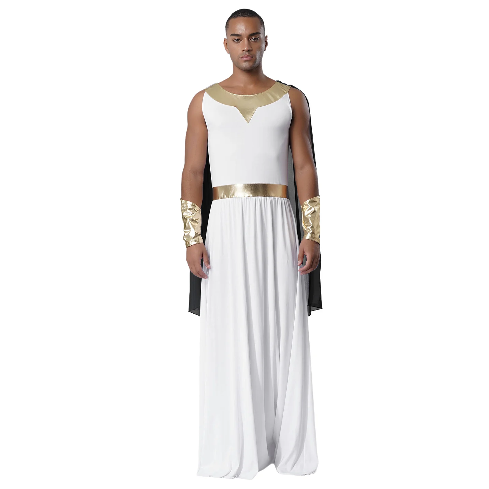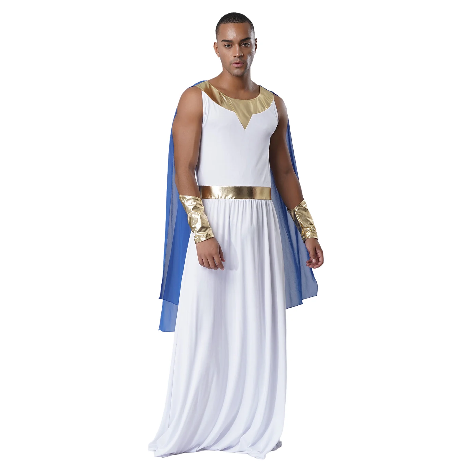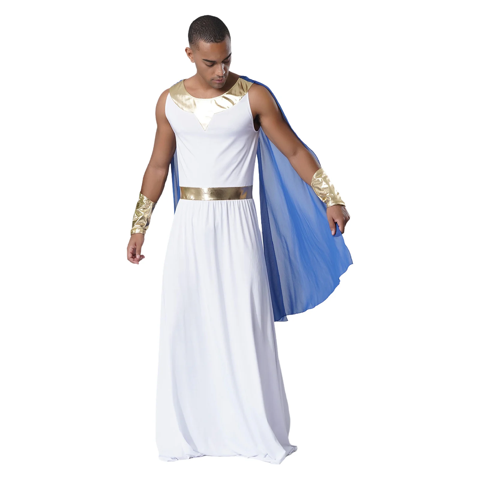 Men Ancient Greek Toga Outfit Halloween Cosplay Fancy Dress Costume Sleeveless Shoulder Drapes Greece Roman Robe with Cuffs Sets