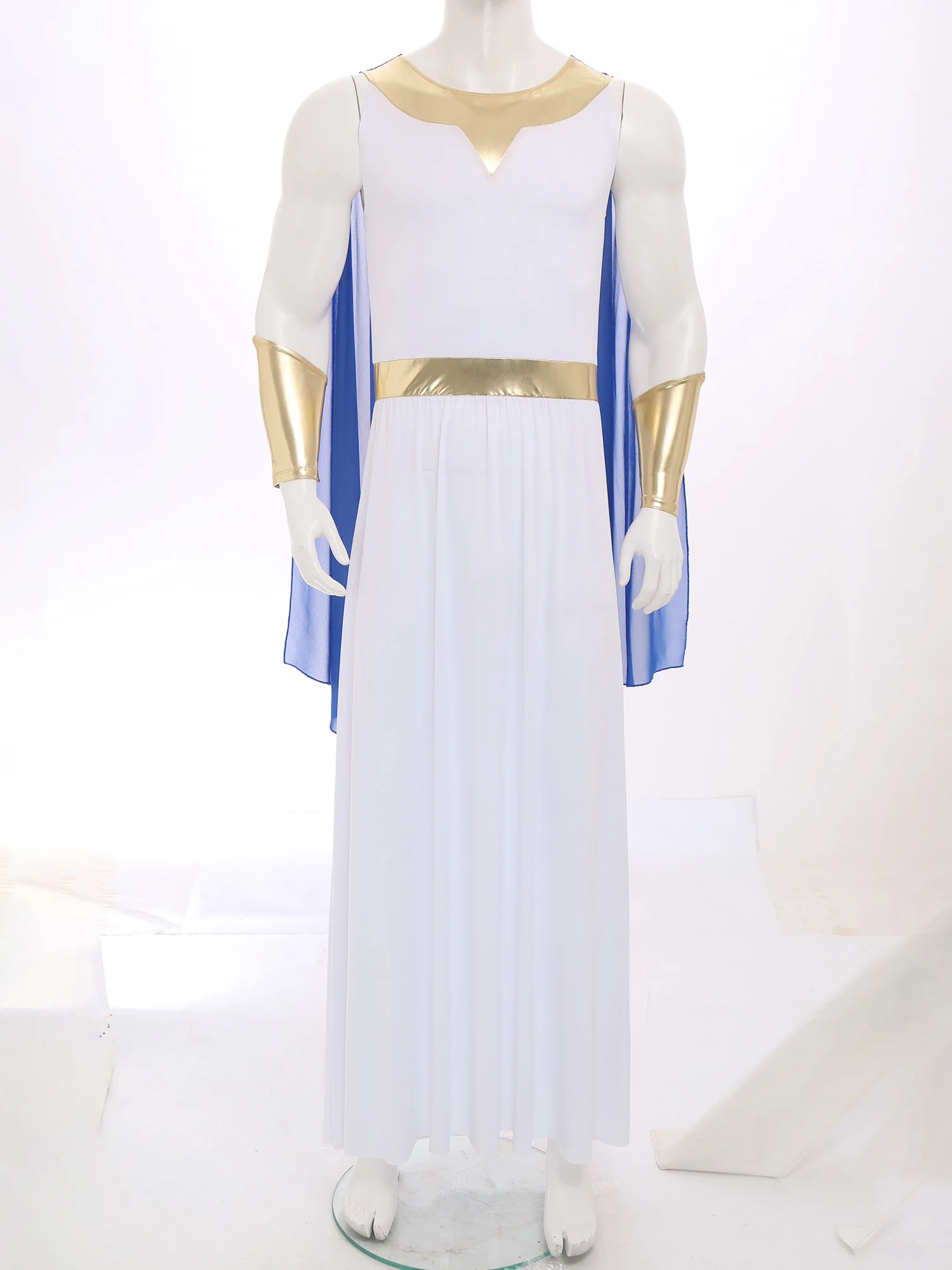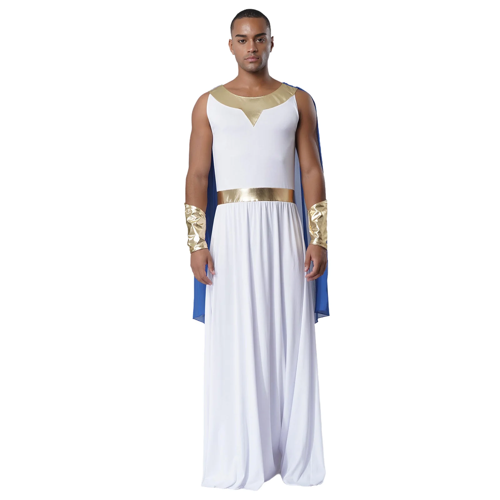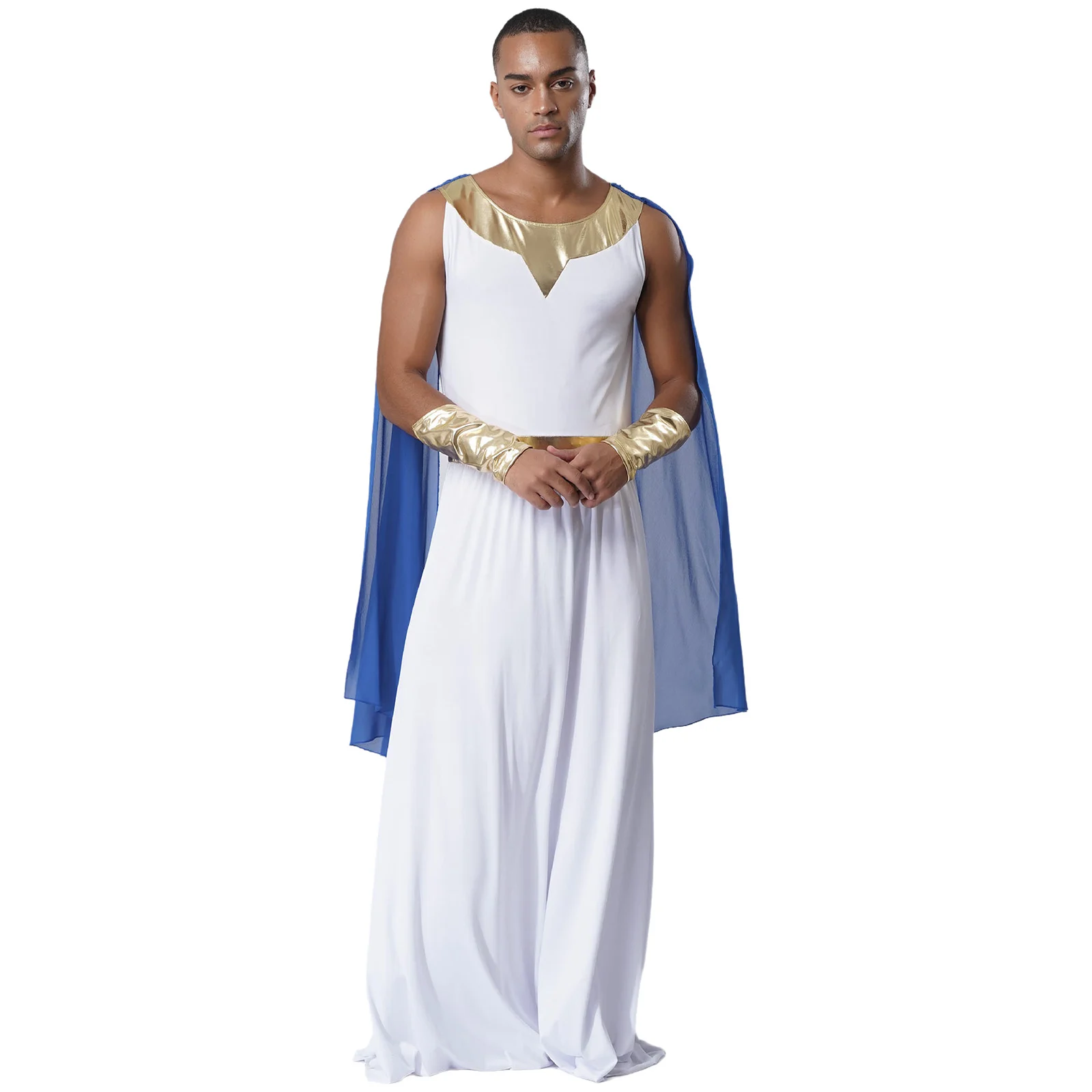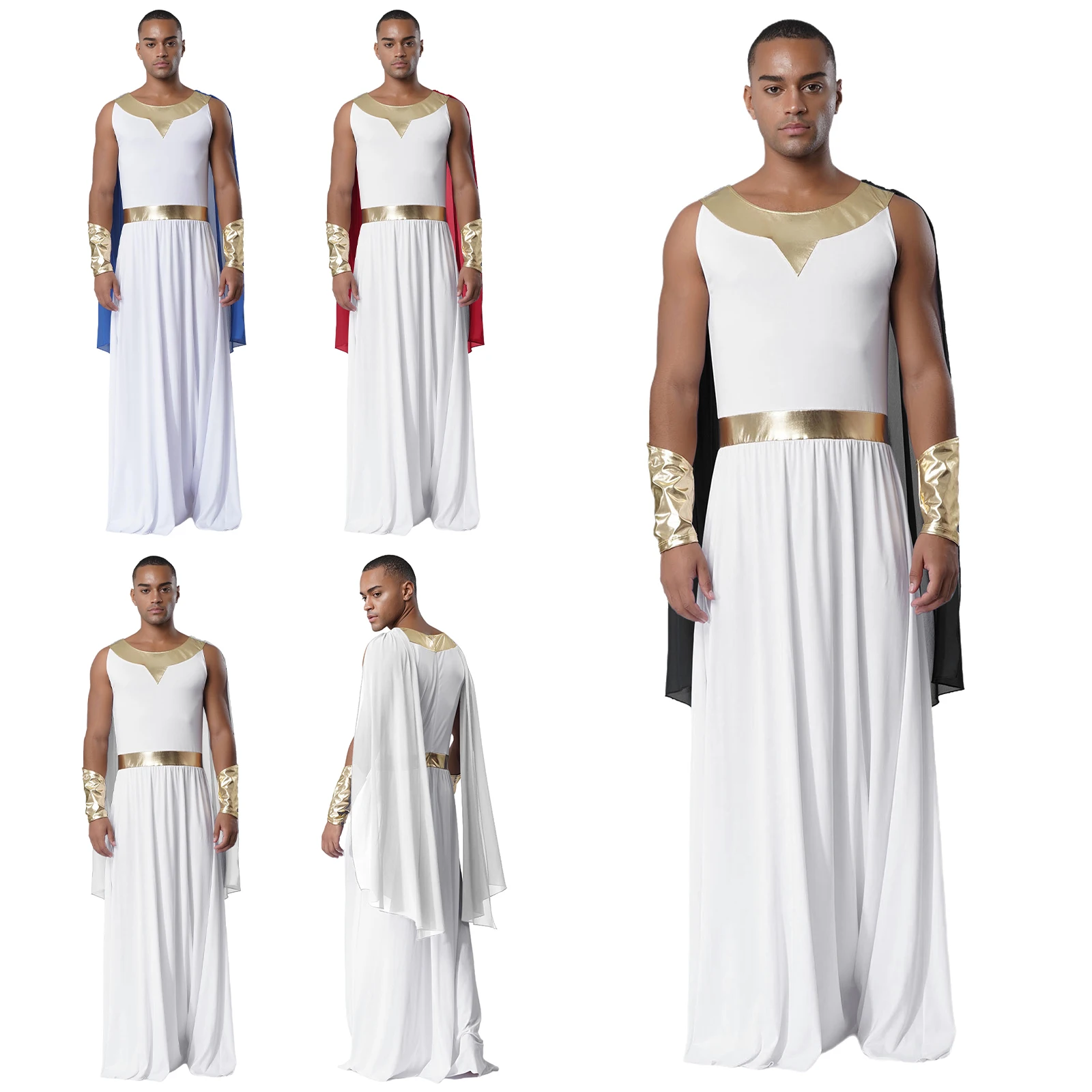 Men Ancient Greek Toga Outfit Halloween Cosplay Fancy Dress Costume Sleeveless Shoulder Drapes Greece Roman Robe with Cuffs Sets