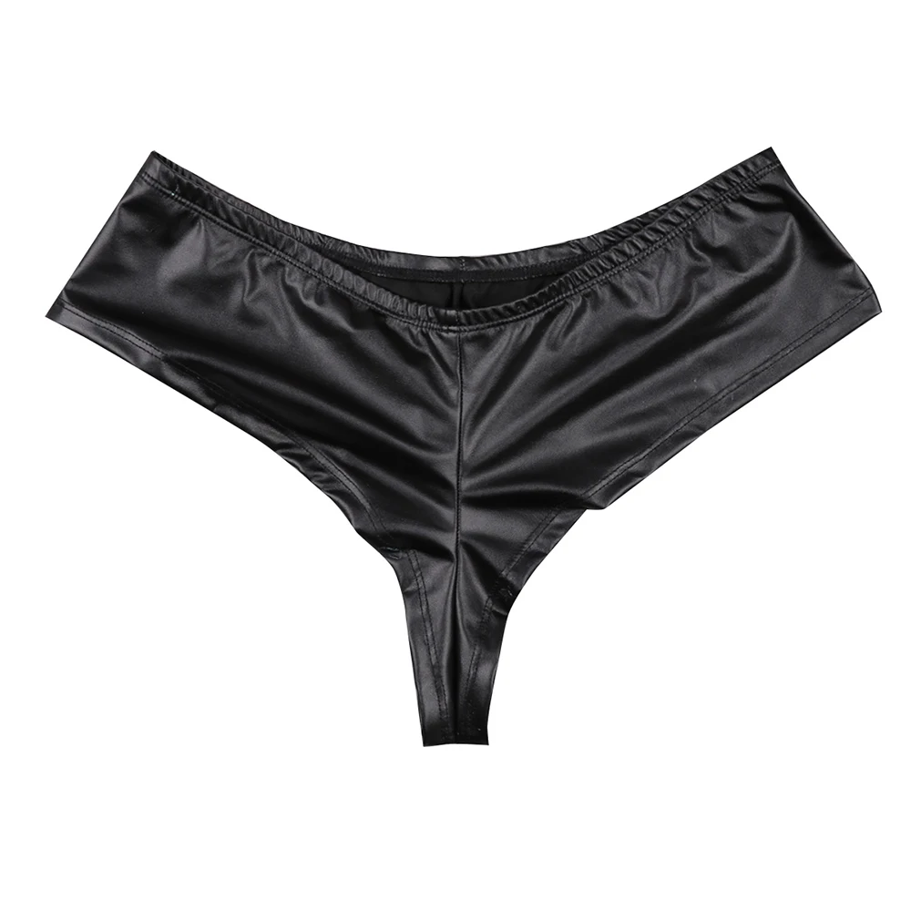 Men Lingerie Faux Leather Pouch Bikini Briefs Underwear Underpants Sexy Gay Mens Underwear Jockstrap Panties Hot Briefs for Mens