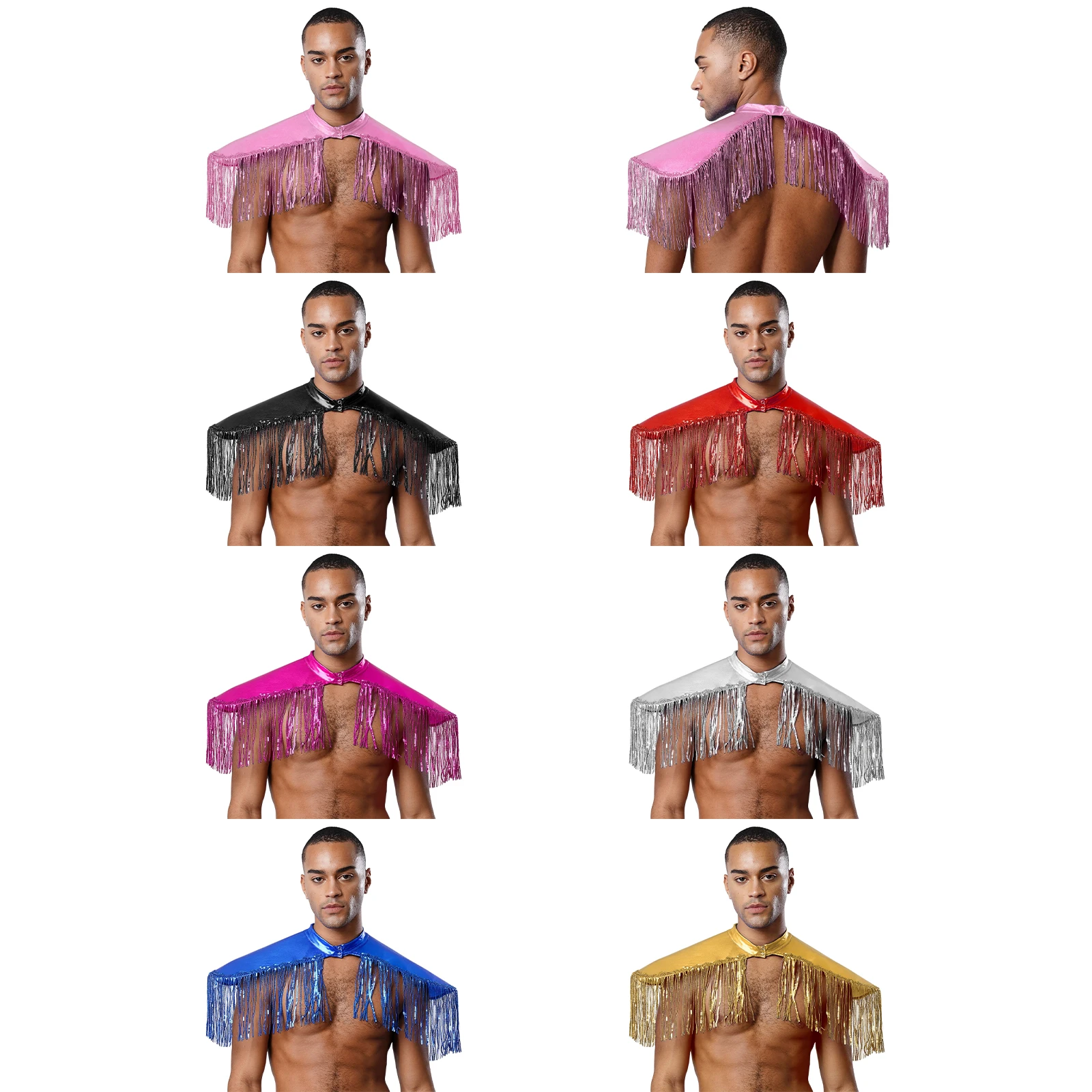 Men Women Shiny Metallic Sequin Fringe Shoulder Pads Tassels Armor Vest Singer Costume Adult Halloween Cosplay Costume Accessory