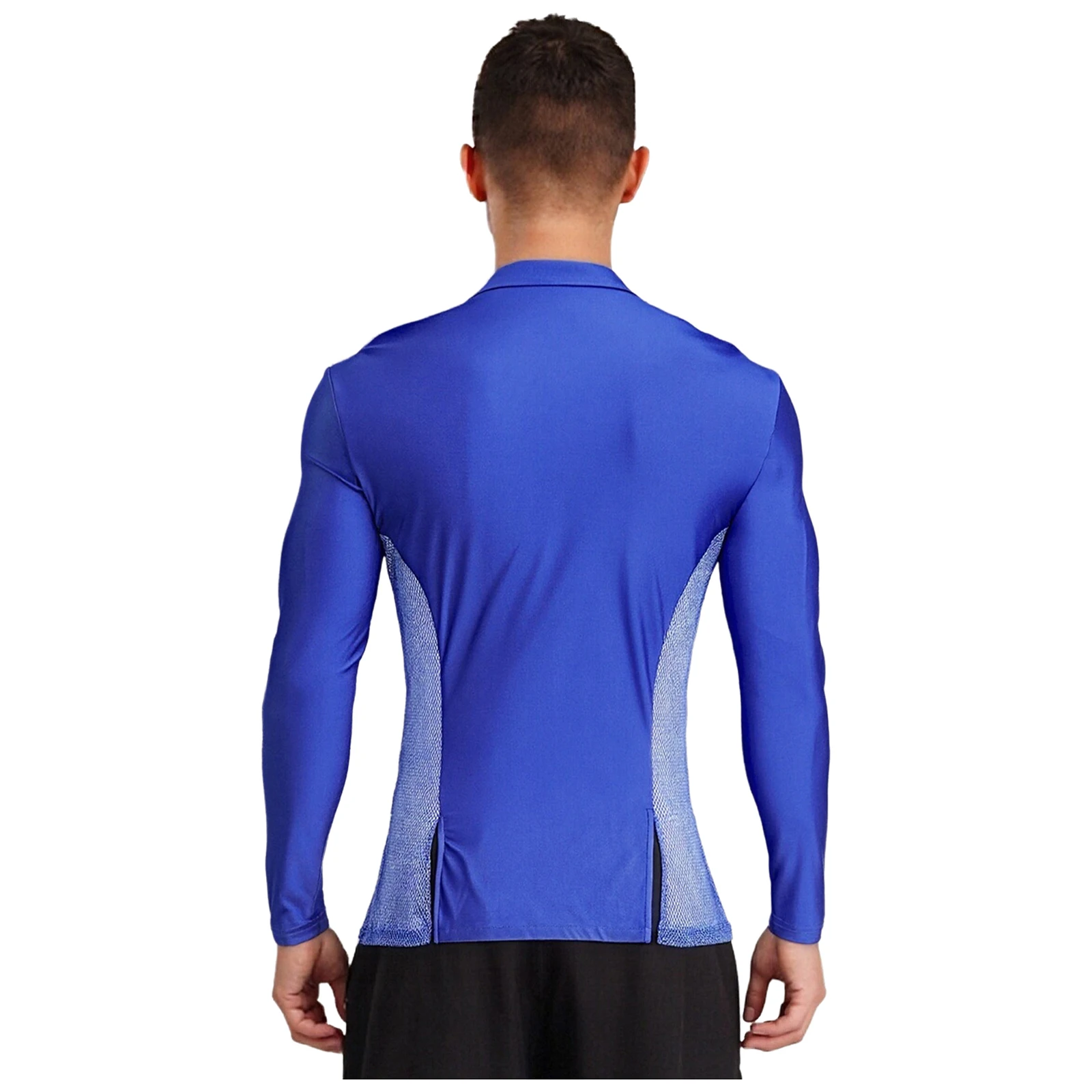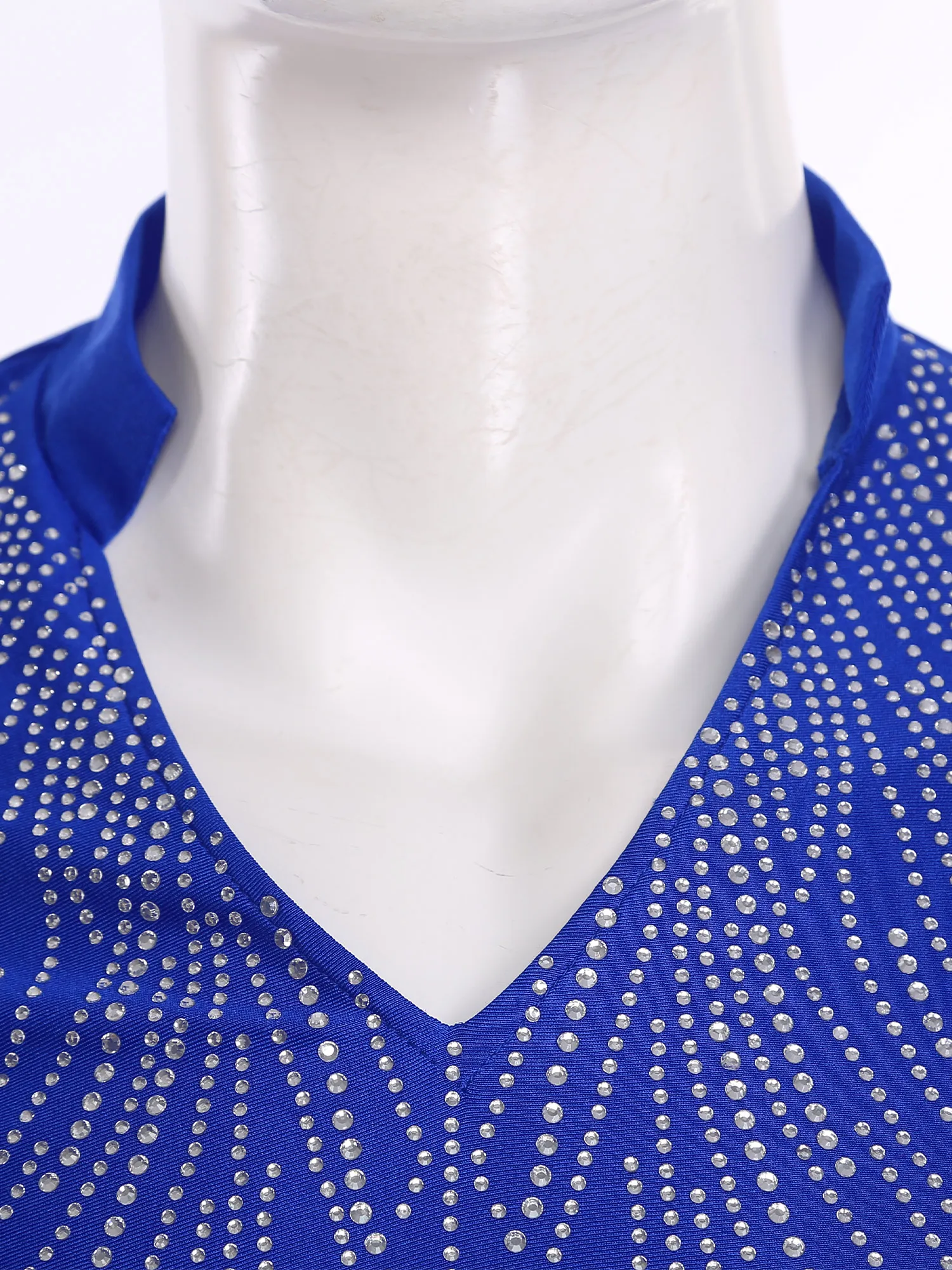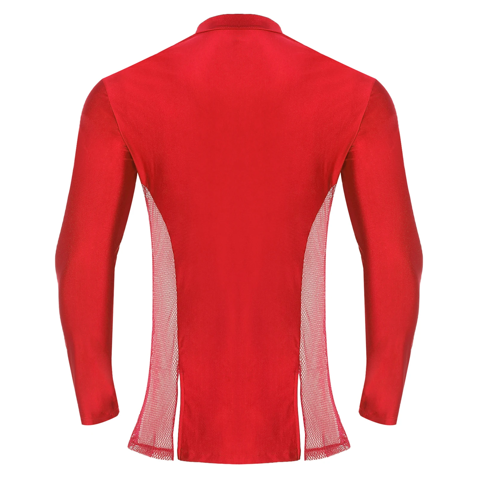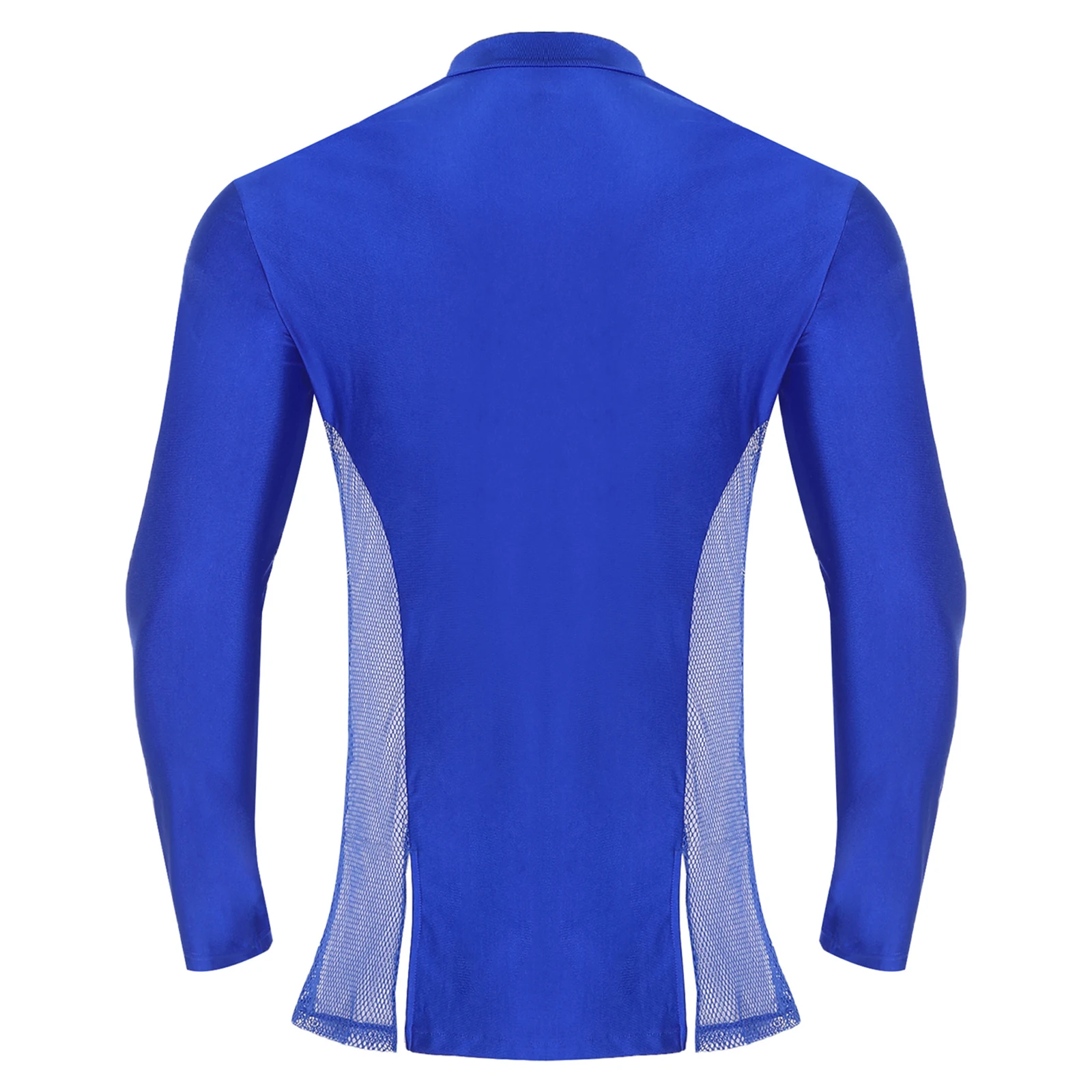 Mens Gymnastics Latin Ballet Dance Performance Costume Glittery Rhinestones Split Chacha Tango Ballroom Dance T-shirt Top