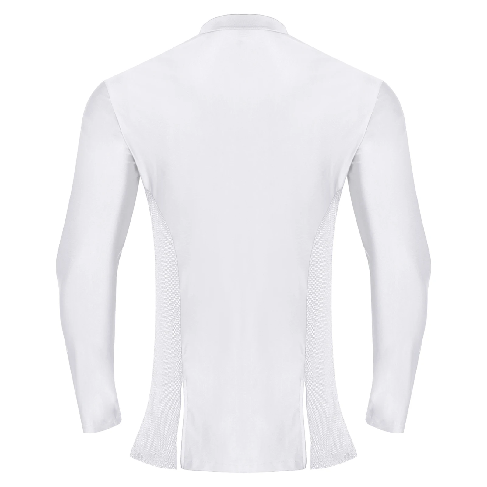 Long-sleeve, and side mesh patchwork with split details gives a modern and fashionable look, combining functionality with style.
