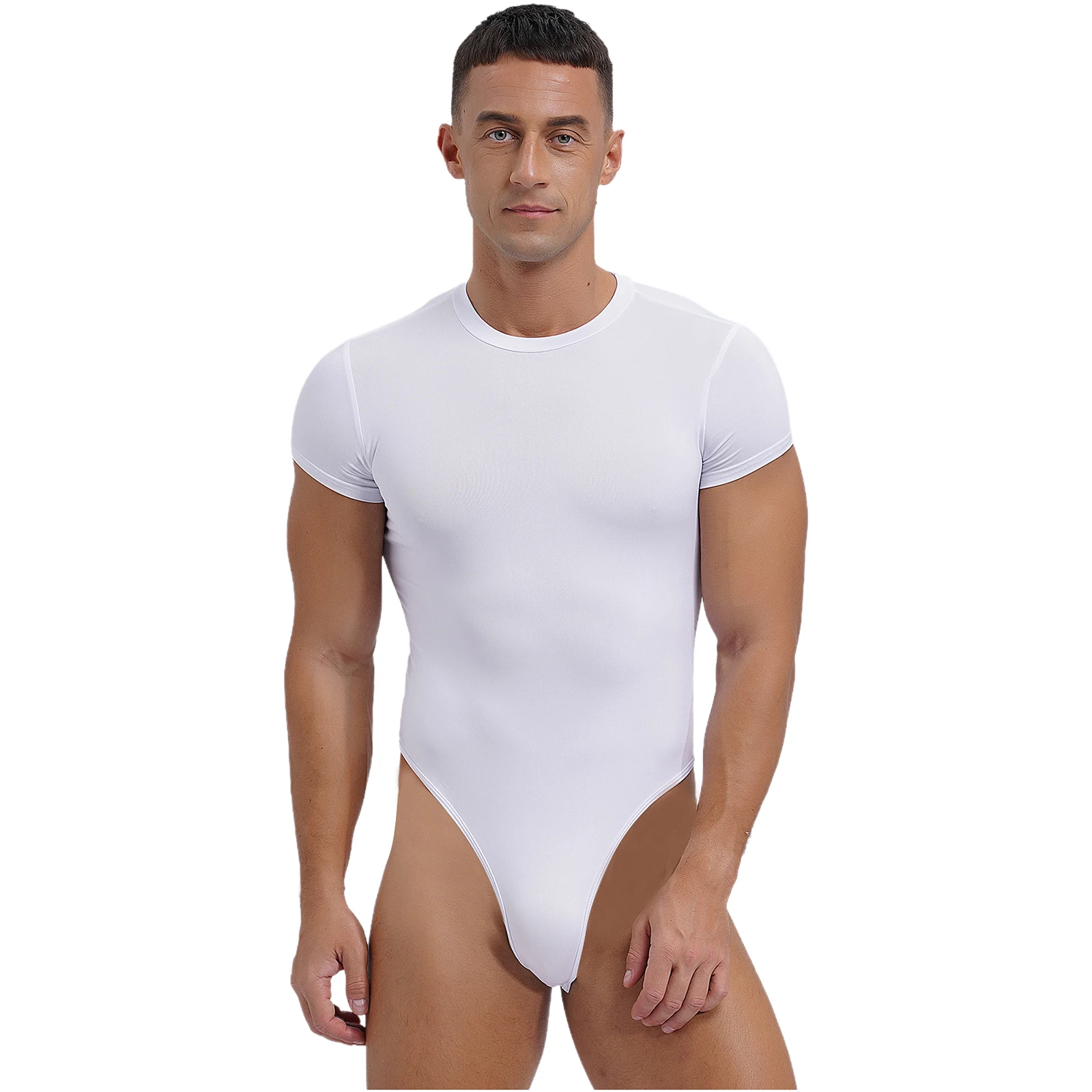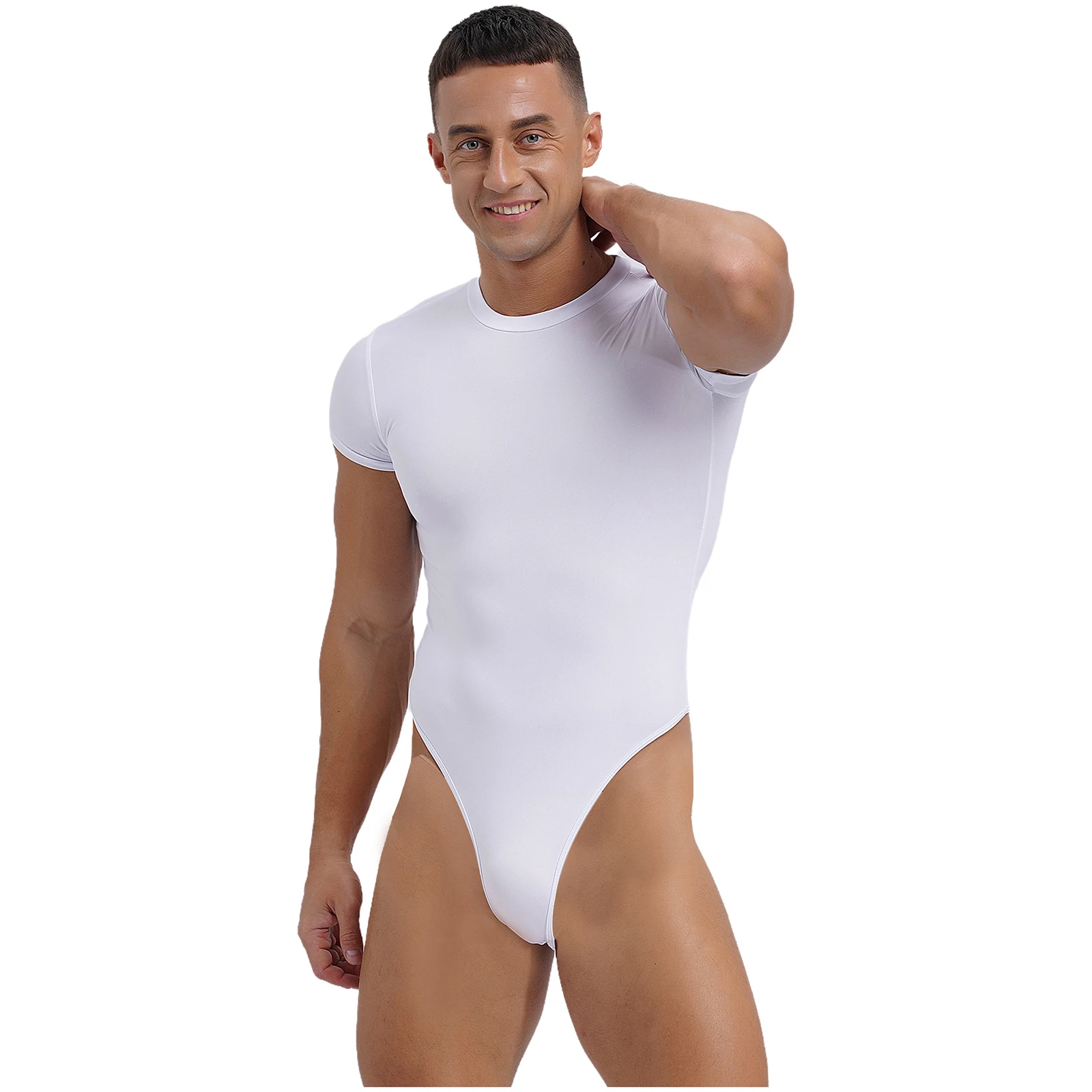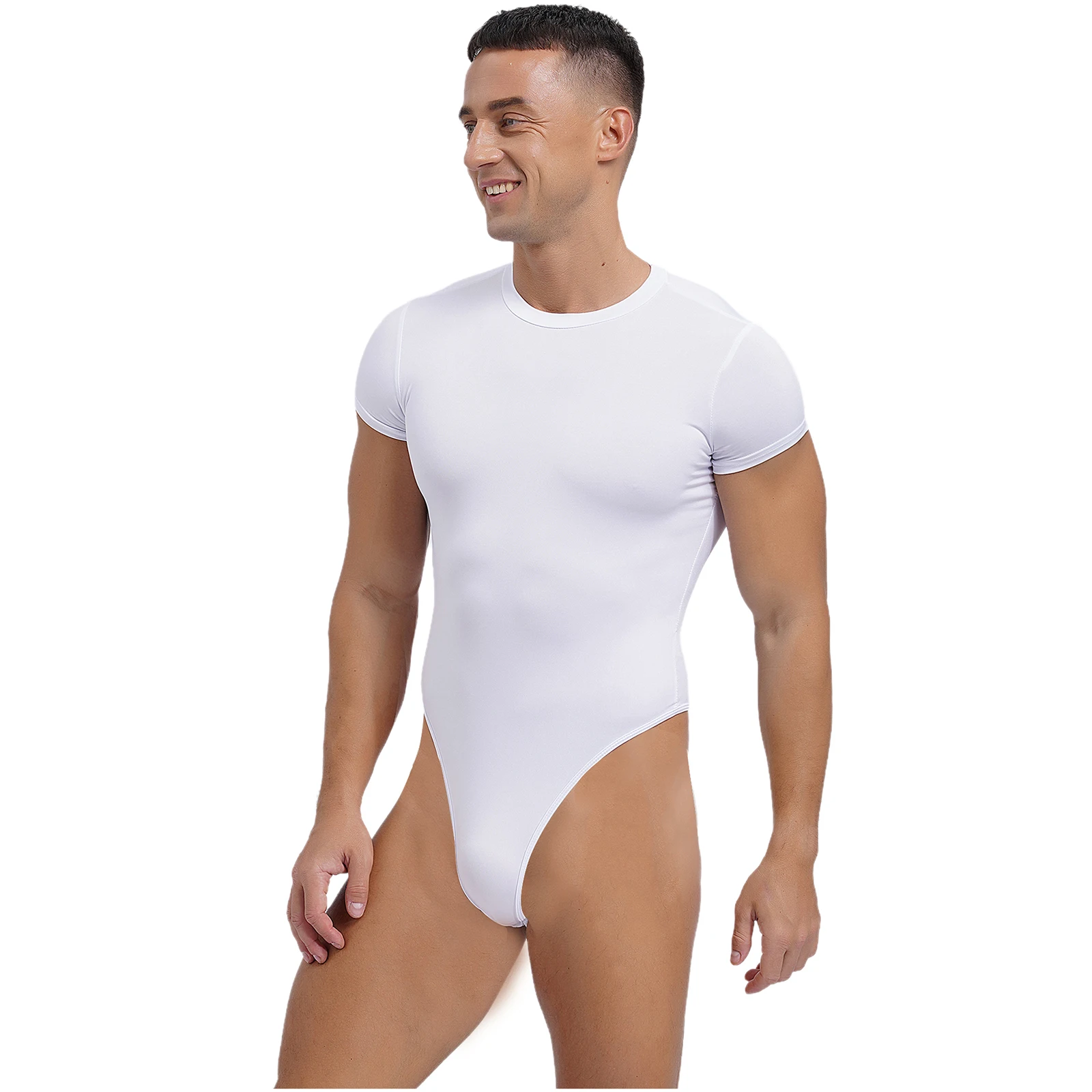 Mens Lingerie One Piece Athletic Sport Bodysuit Pajamas Short Sleeve Buttoned Crotch Jumpsuit Solid Color Rompers Bodybuilding