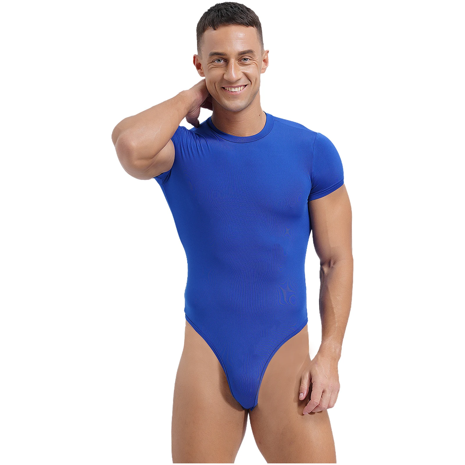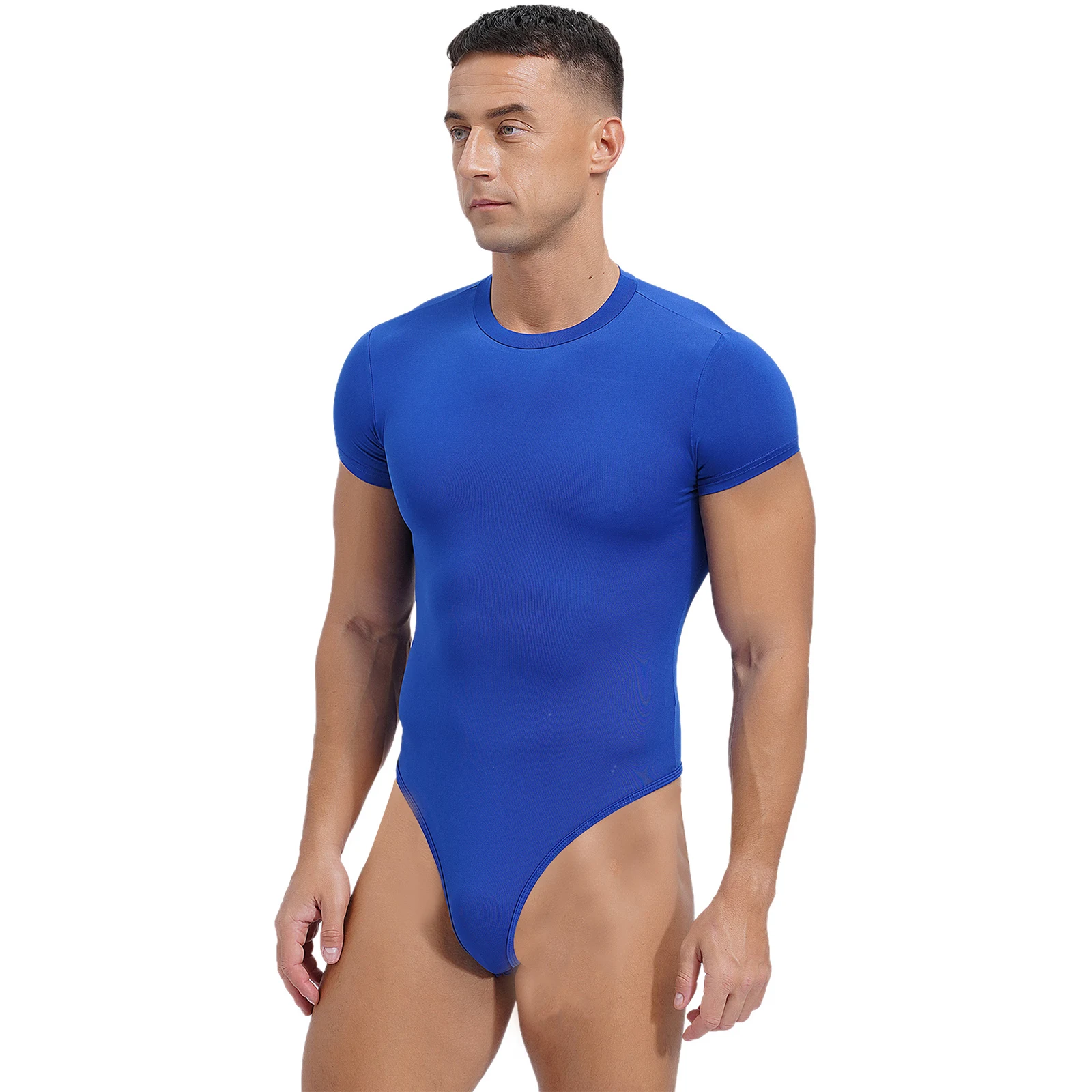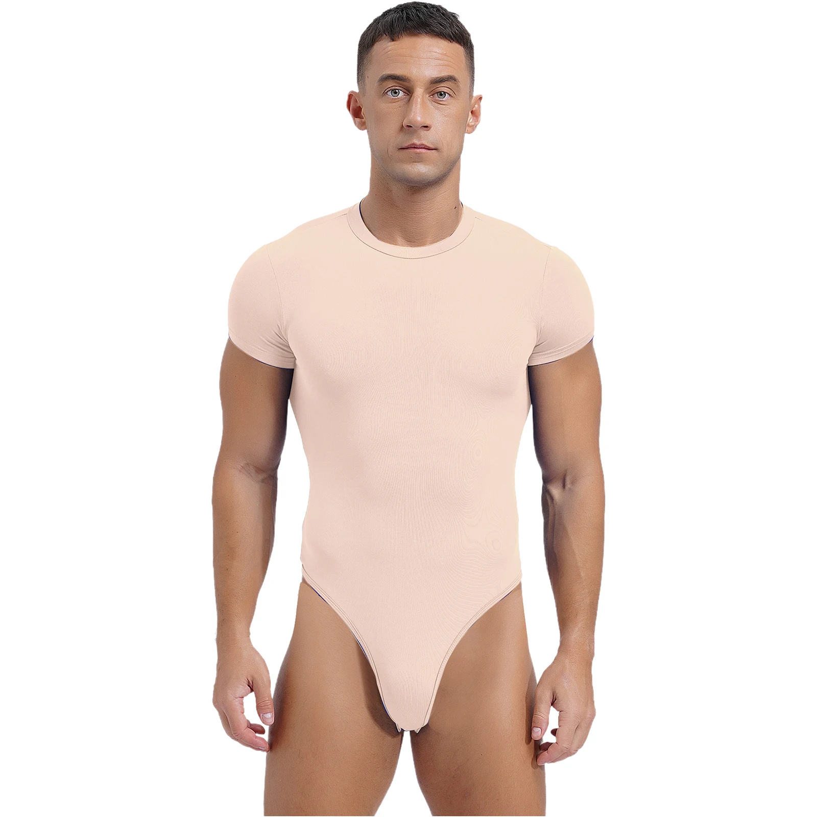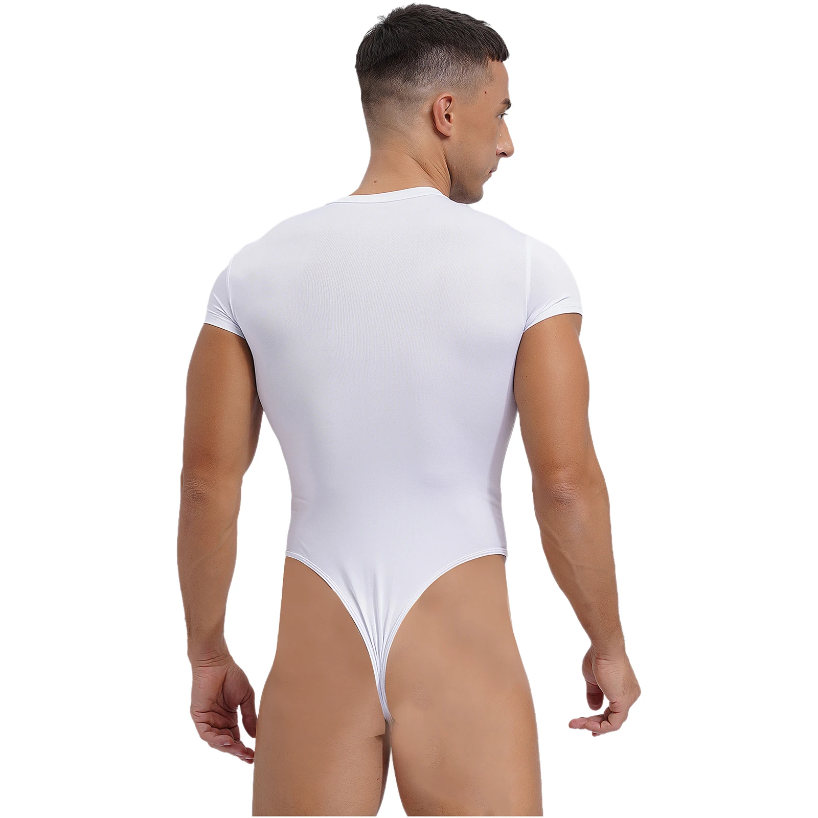 Mens Lingerie One Piece Athletic Sport Bodysuit Pajamas Short Sleeve Buttoned Crotch Jumpsuit Solid Color Rompers Bodybuilding