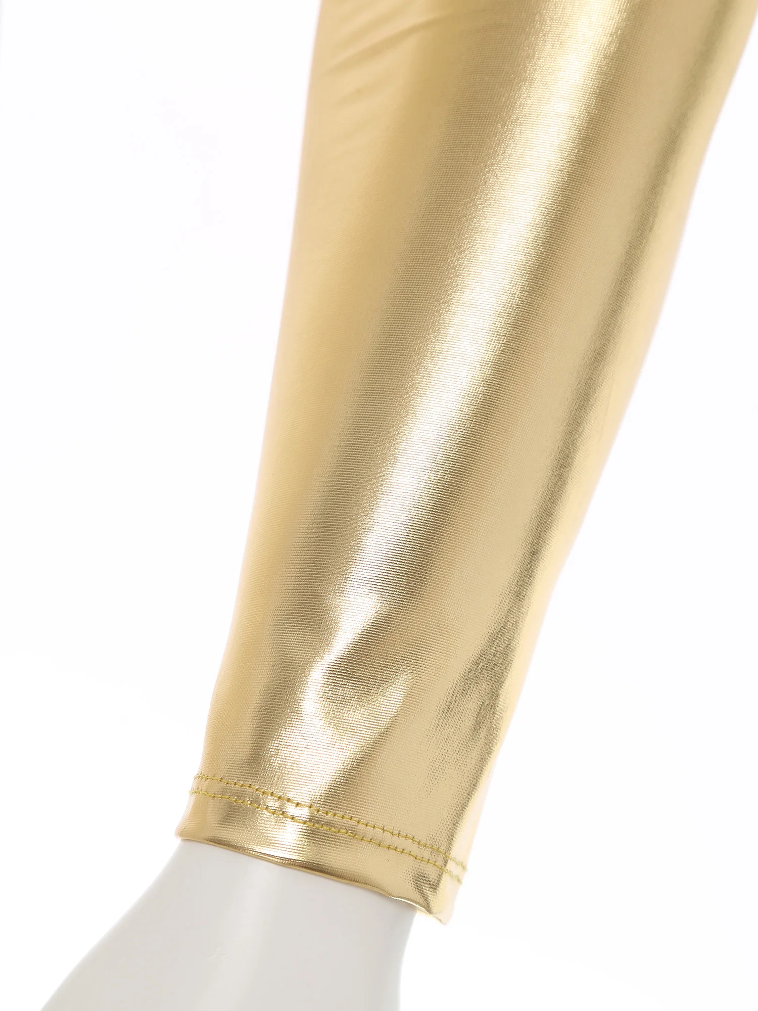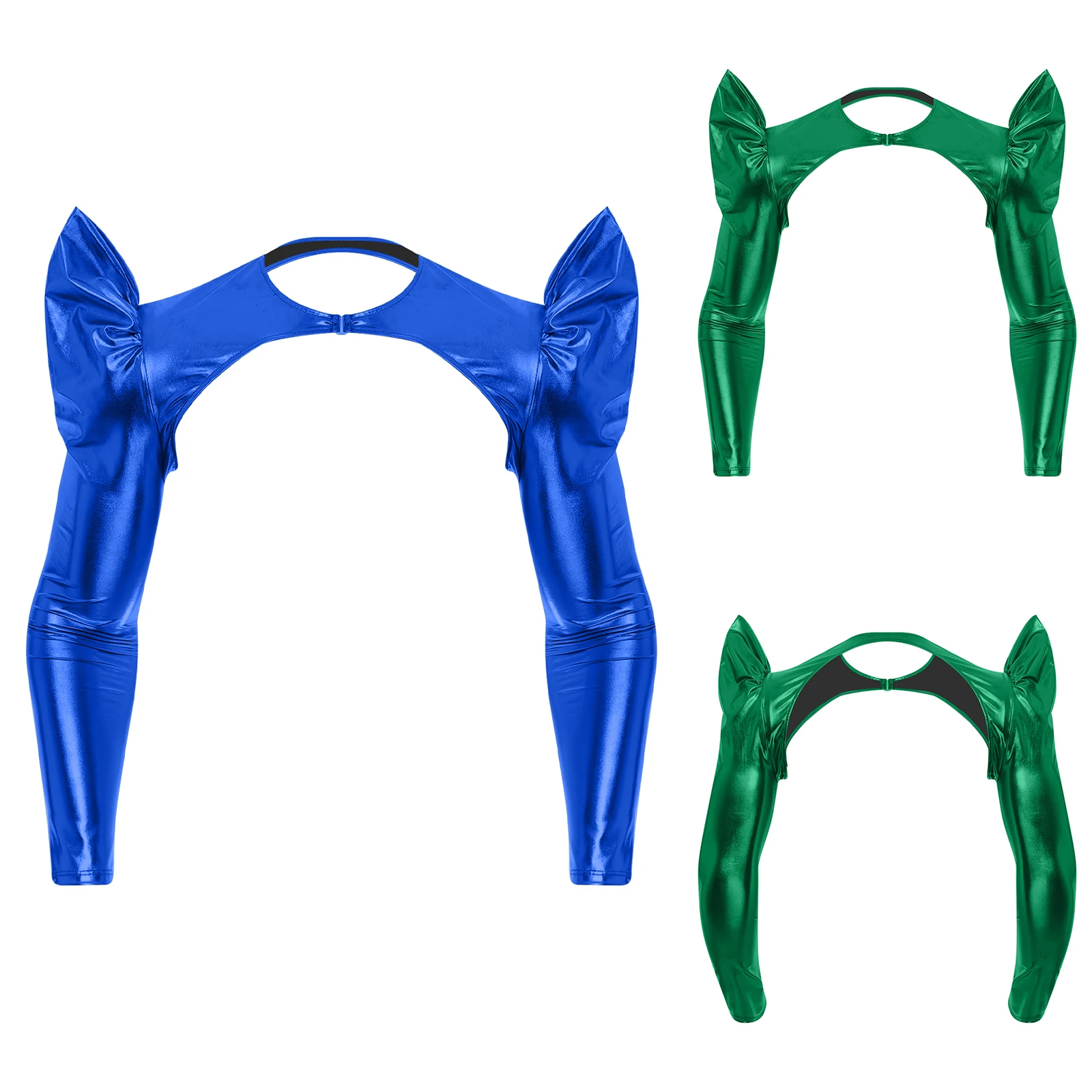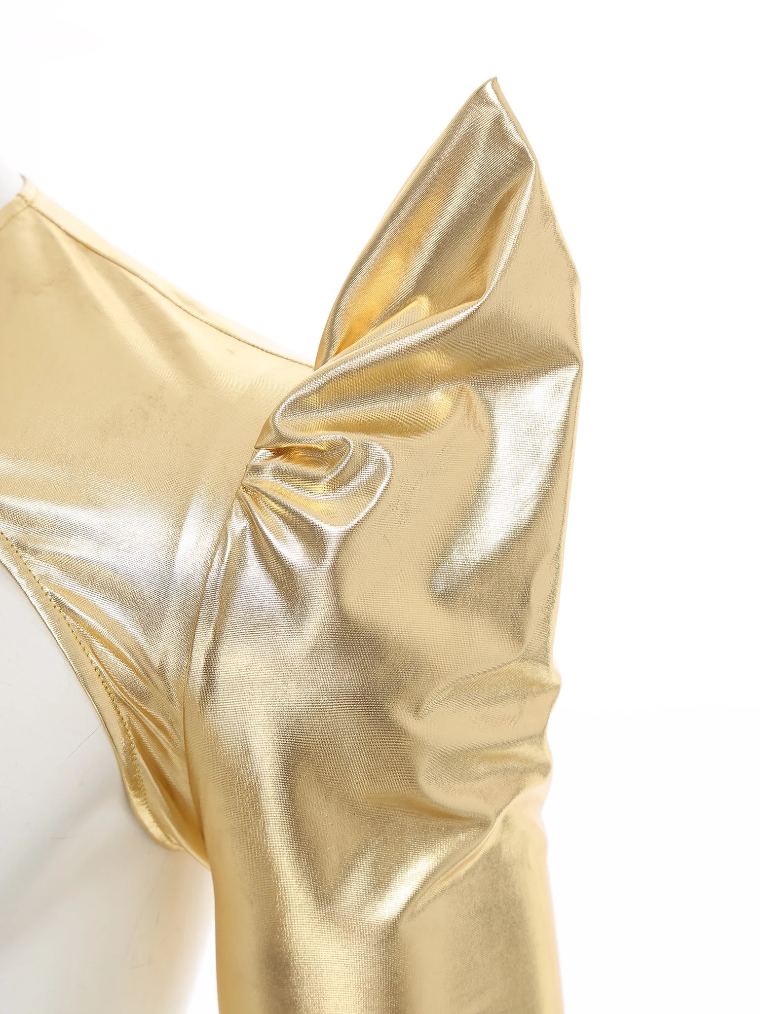 Mens Metallic Shiny Crop Tops Crew Neck Long Sleeve Rising Shoulder Crop Blouse Shoulder Cover Layering Fclubwear Party Costume