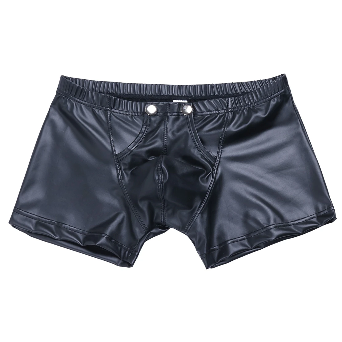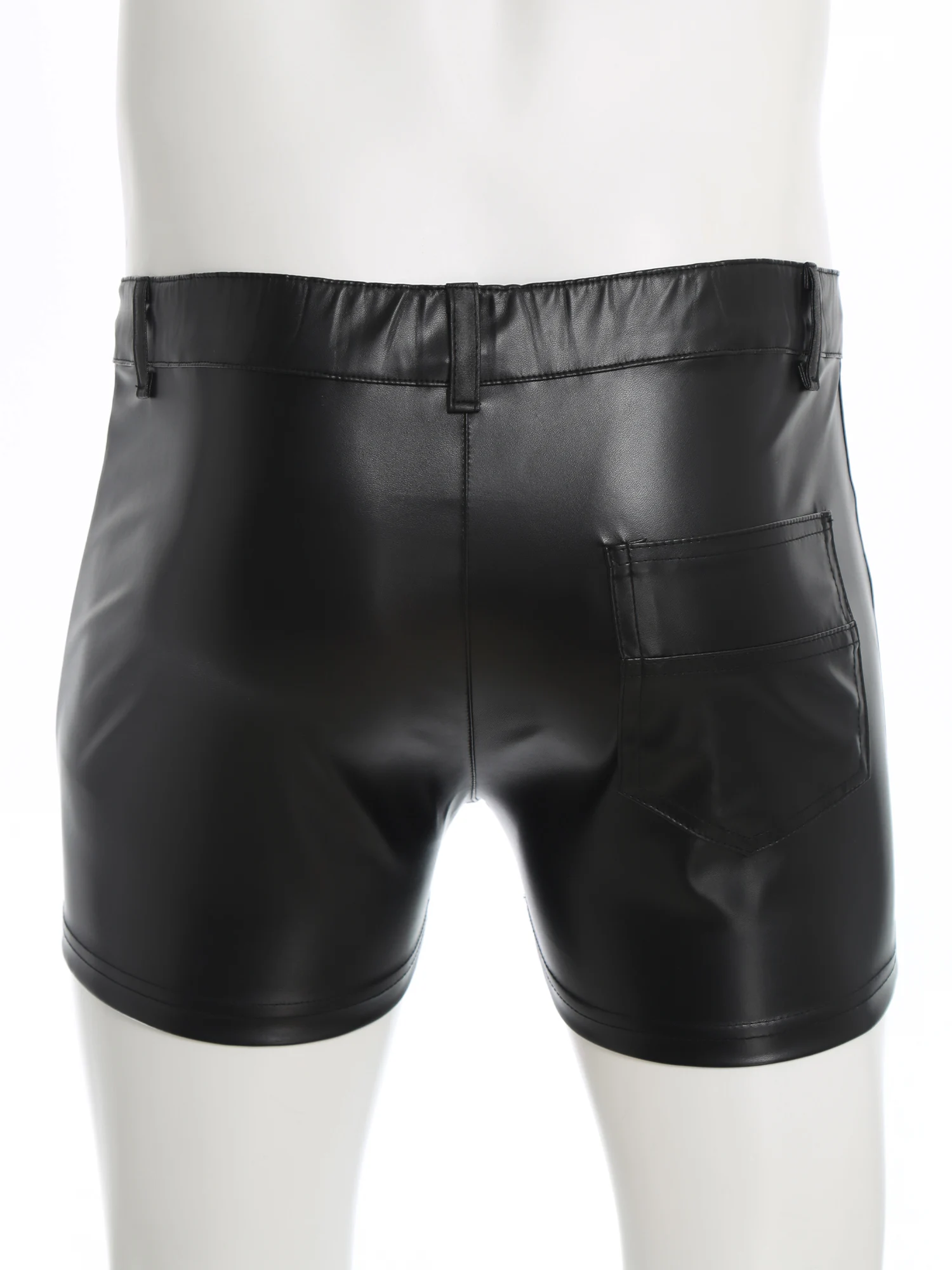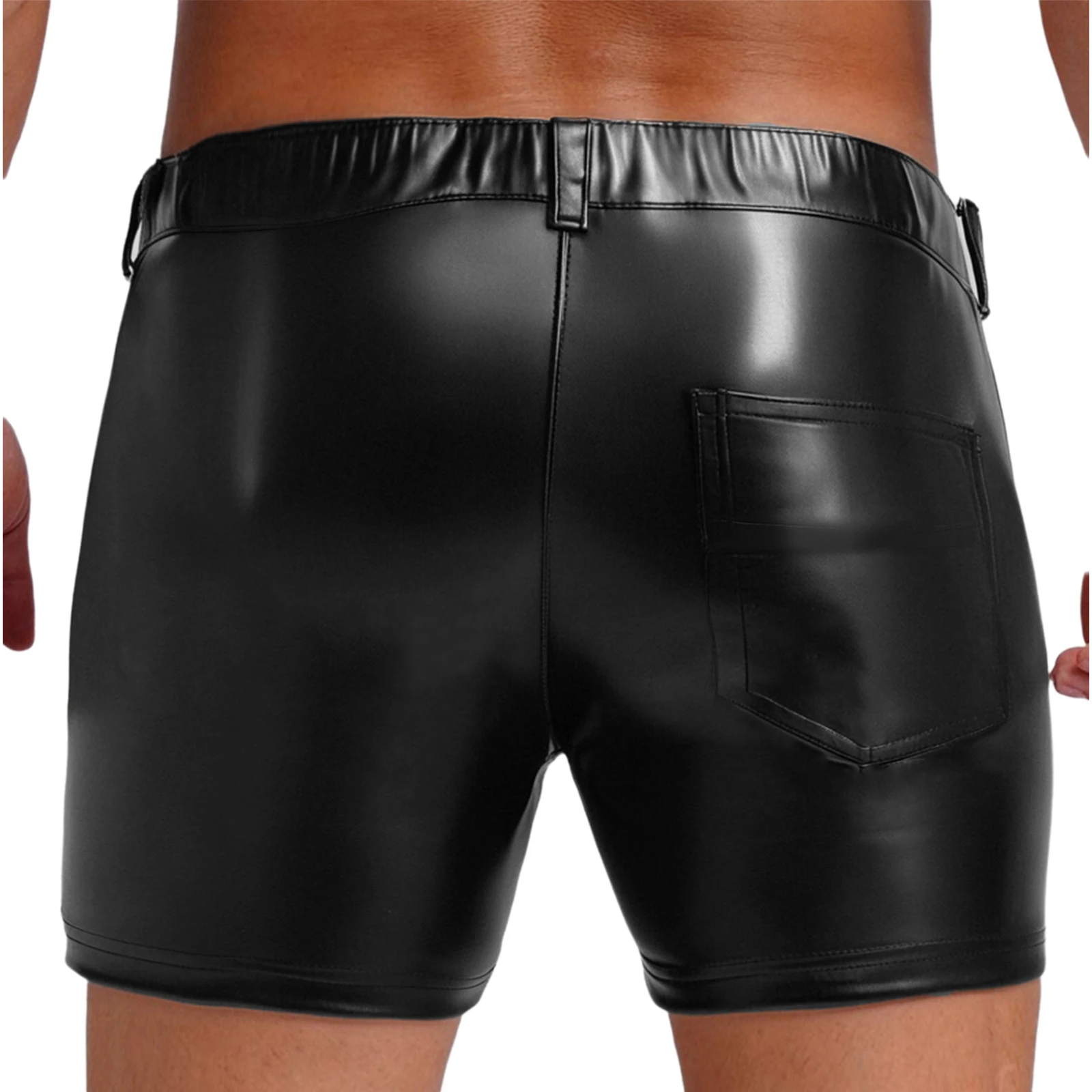 Mens Oil Glossy Faux Leather Shorts Back Elastic Band Back Pocket Pouch Boxer Short Pants Raves Party Club Pole Dance Clothings