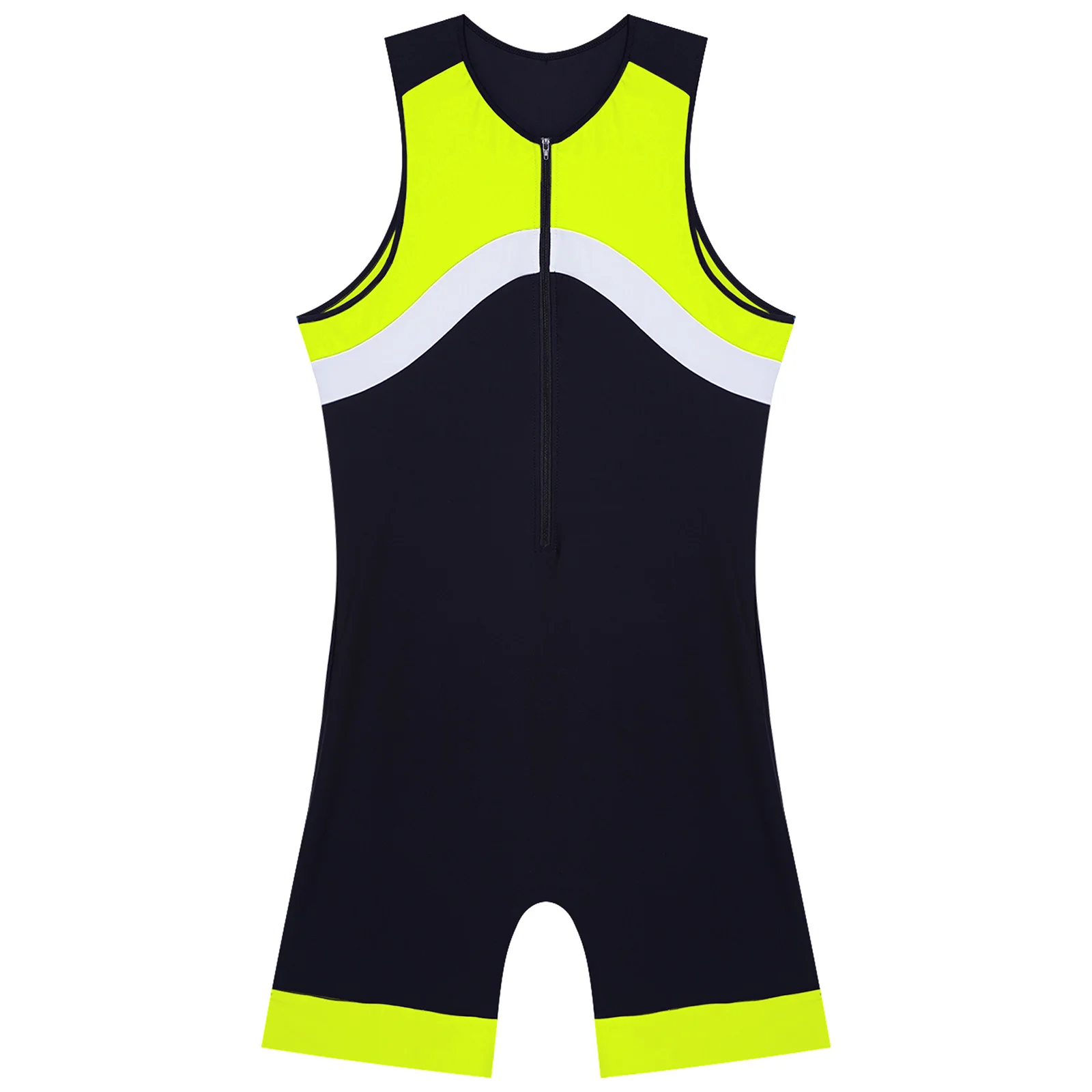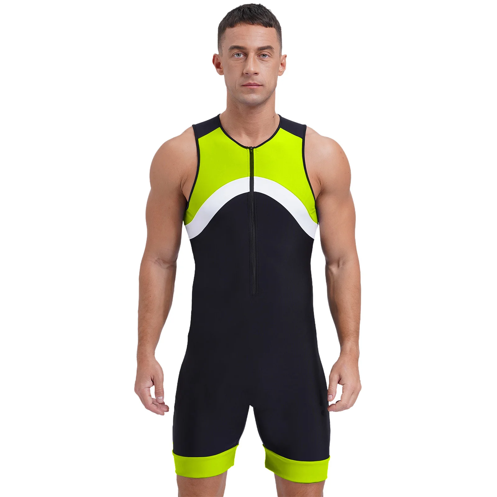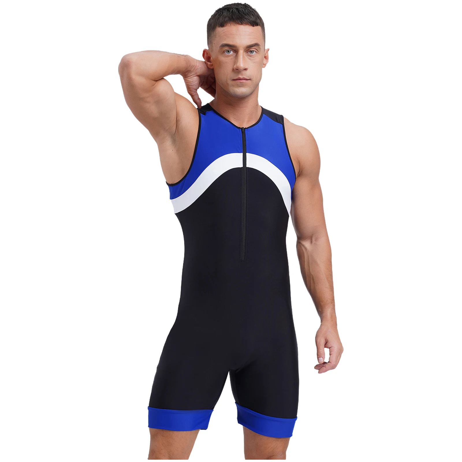 Mens Rash Guard Swimsuits Zipper Unitard Biketard Wrestling Bodysuit Swimming Surfing Athletic Jumpsuit One Piece Swimwear