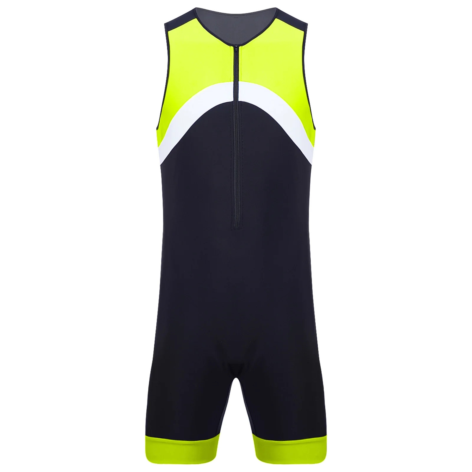 Men’s contrast color sports jumpsuit is finished with smooth seams to ensure a chafe-free experience during exercise.
