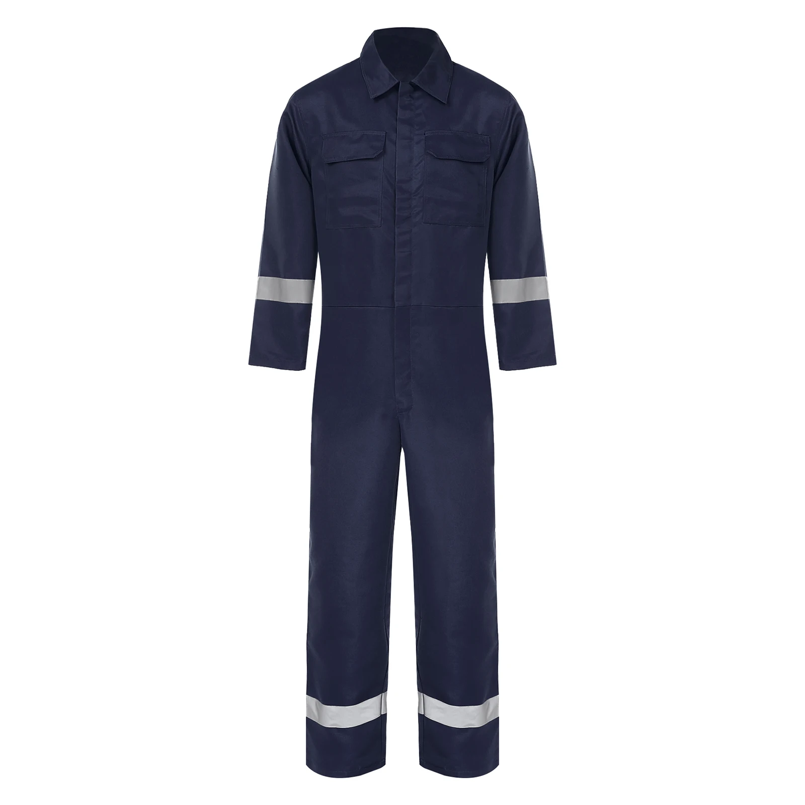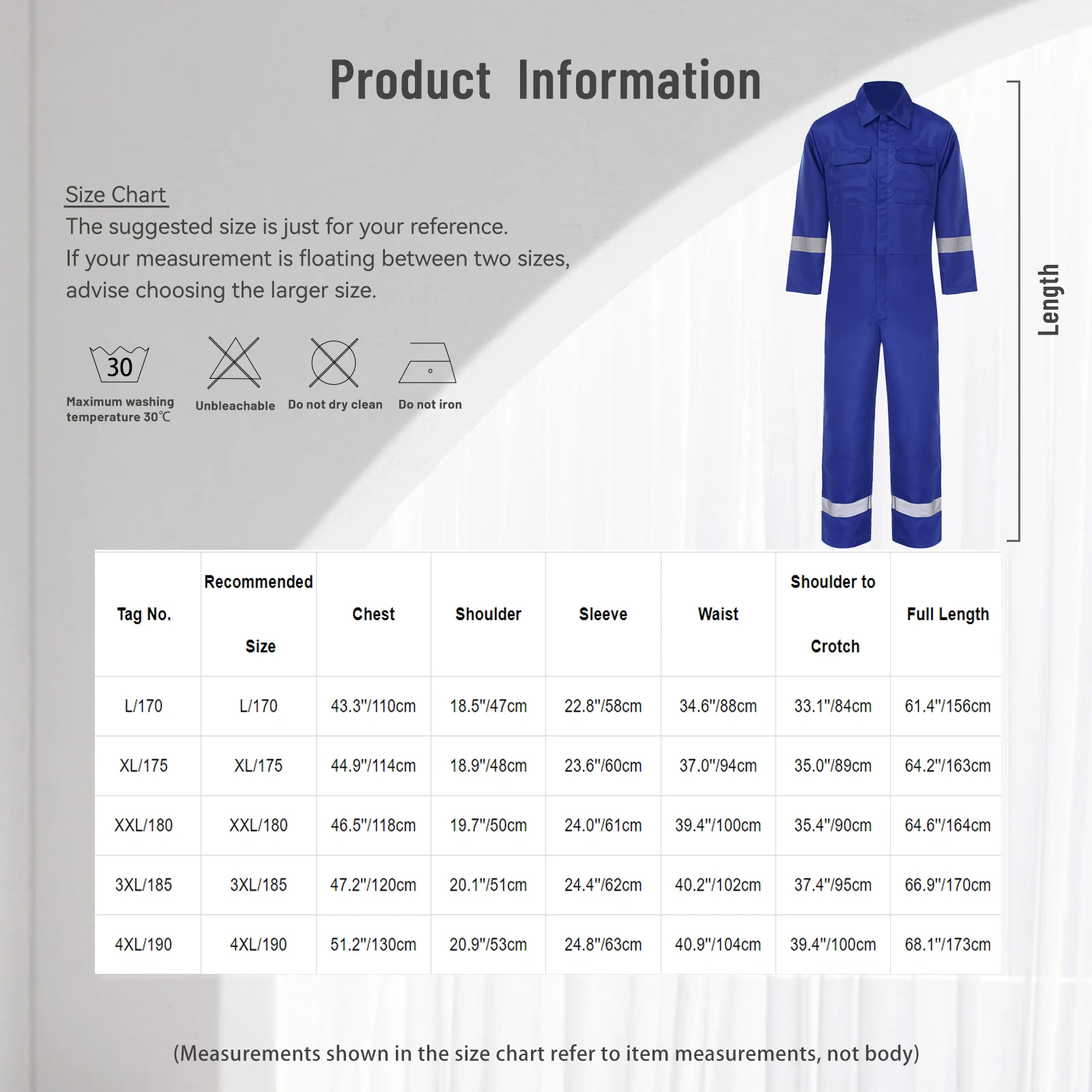 Mens Reflective Stripes Coveralls Work Clothes with Pockets Overalls Jumpsuit Long Sleeve Work Wear Uniform Workshop Uniforms