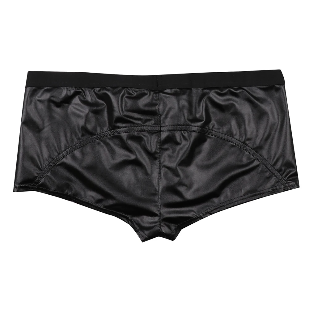 Mens Sexy Faux Leather Double Zipper Jockstraps Shorts Lingerie Wetlook Hot Panties Bulge Pouch Clubwear Underwear Underpants