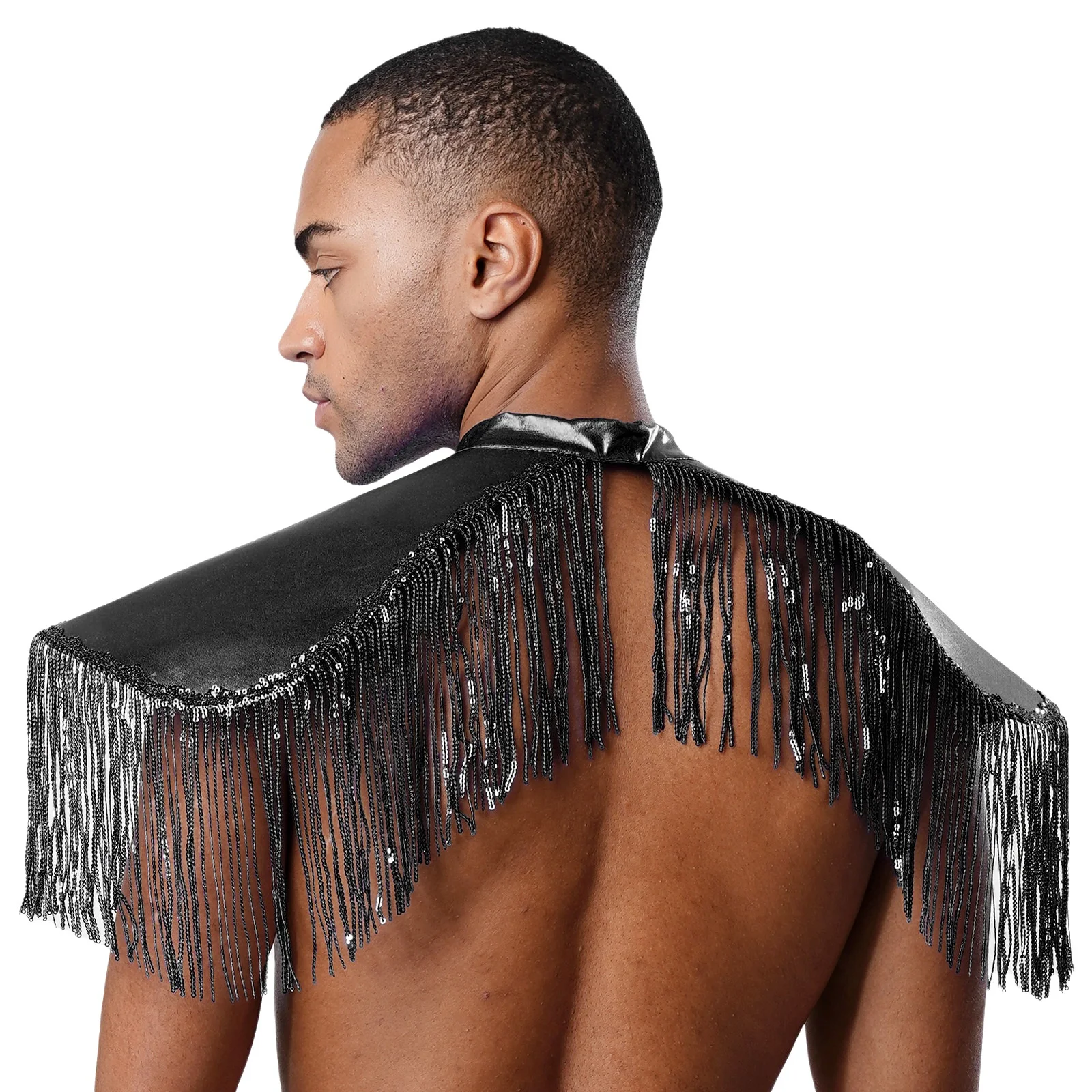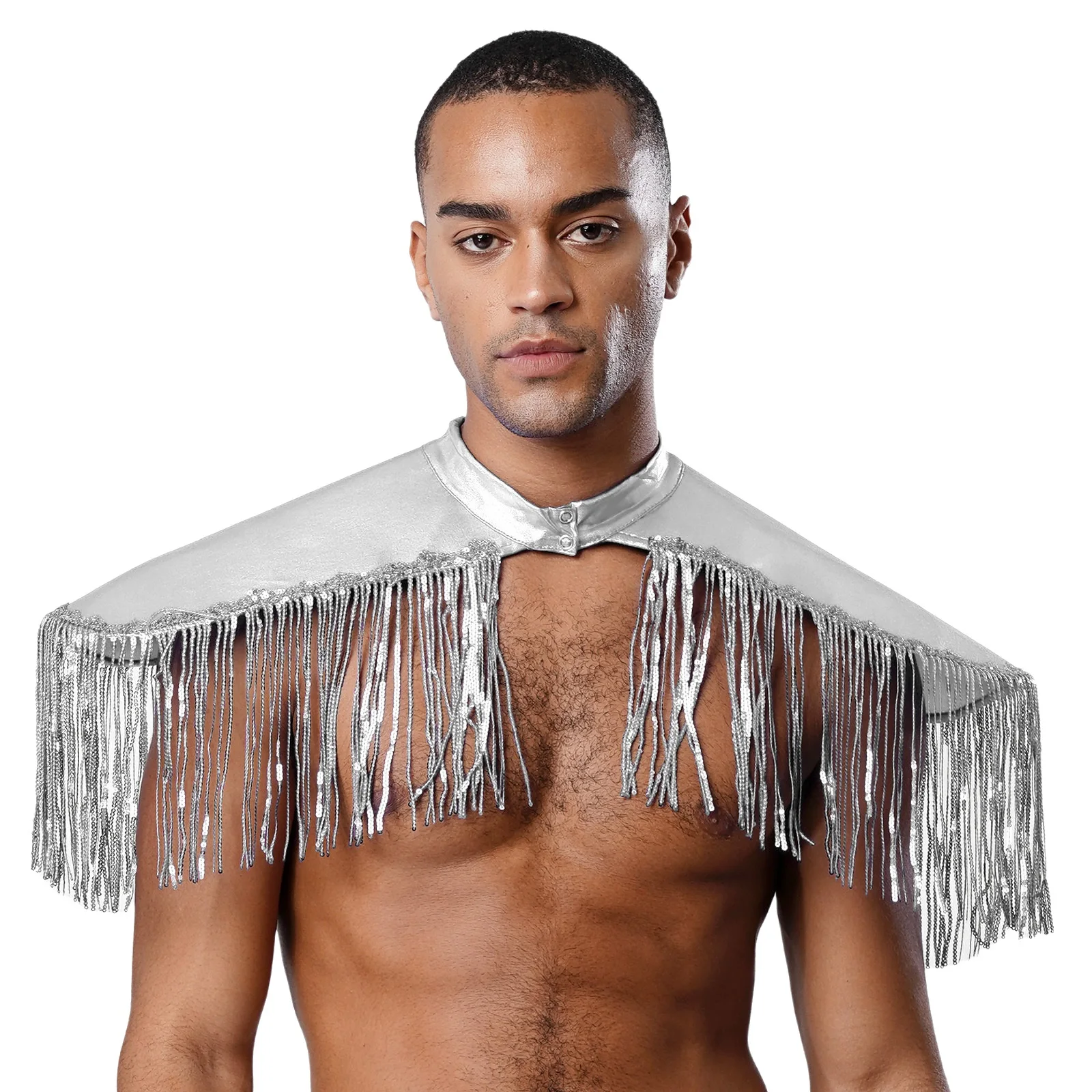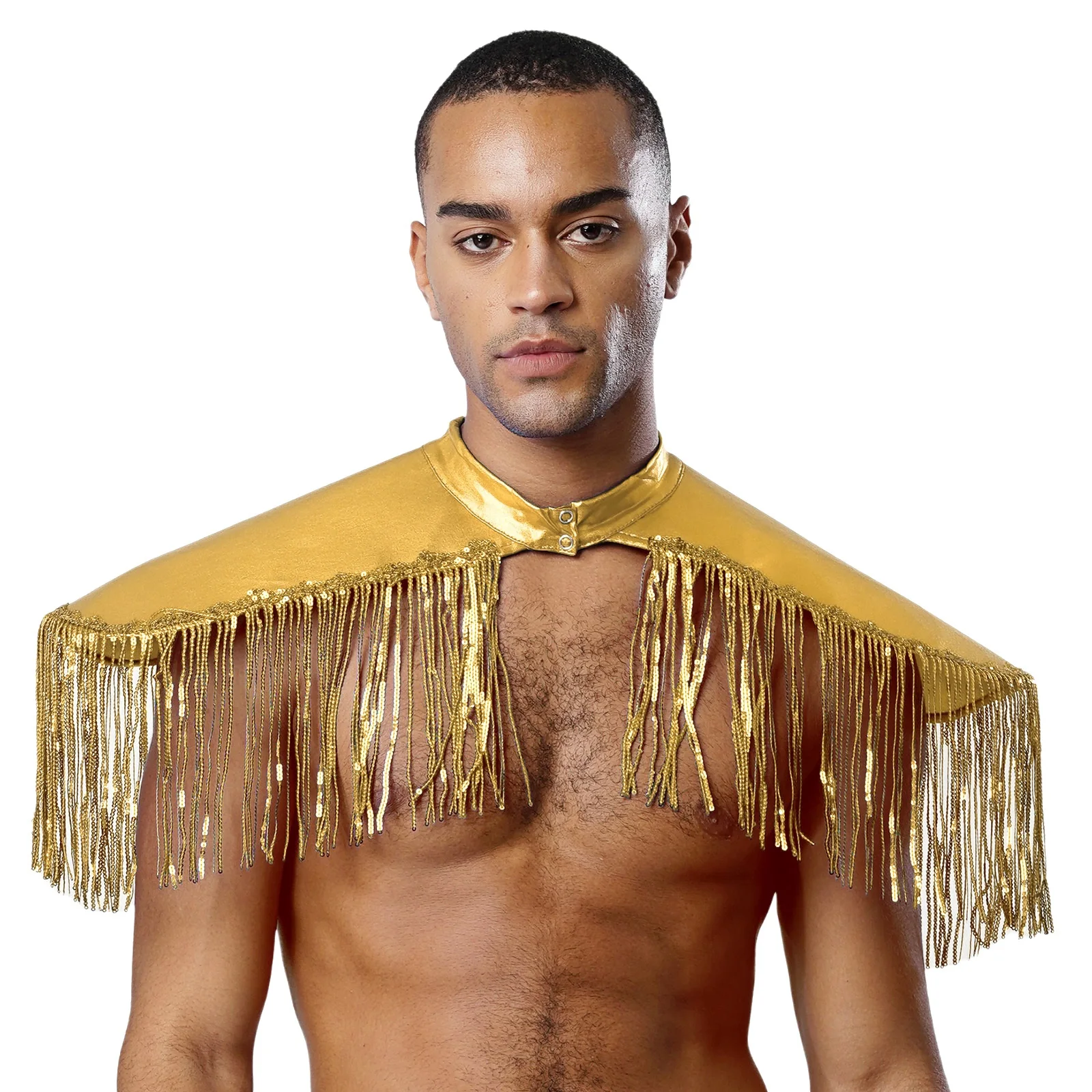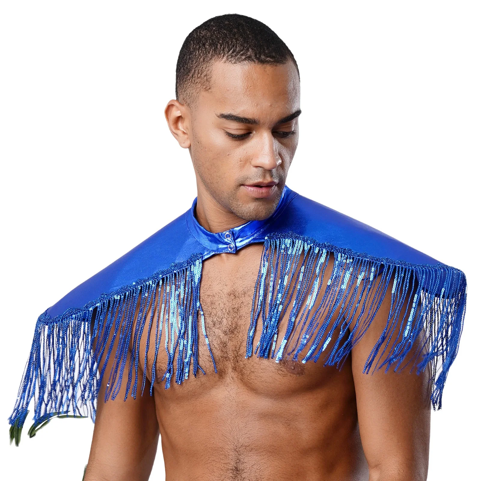 Mens Womens Tassels Armor Vest Shiny Metallic Sequins Fringe Shoulder Pads Vest Tops Halloween Disco Singer Costume Accessories
