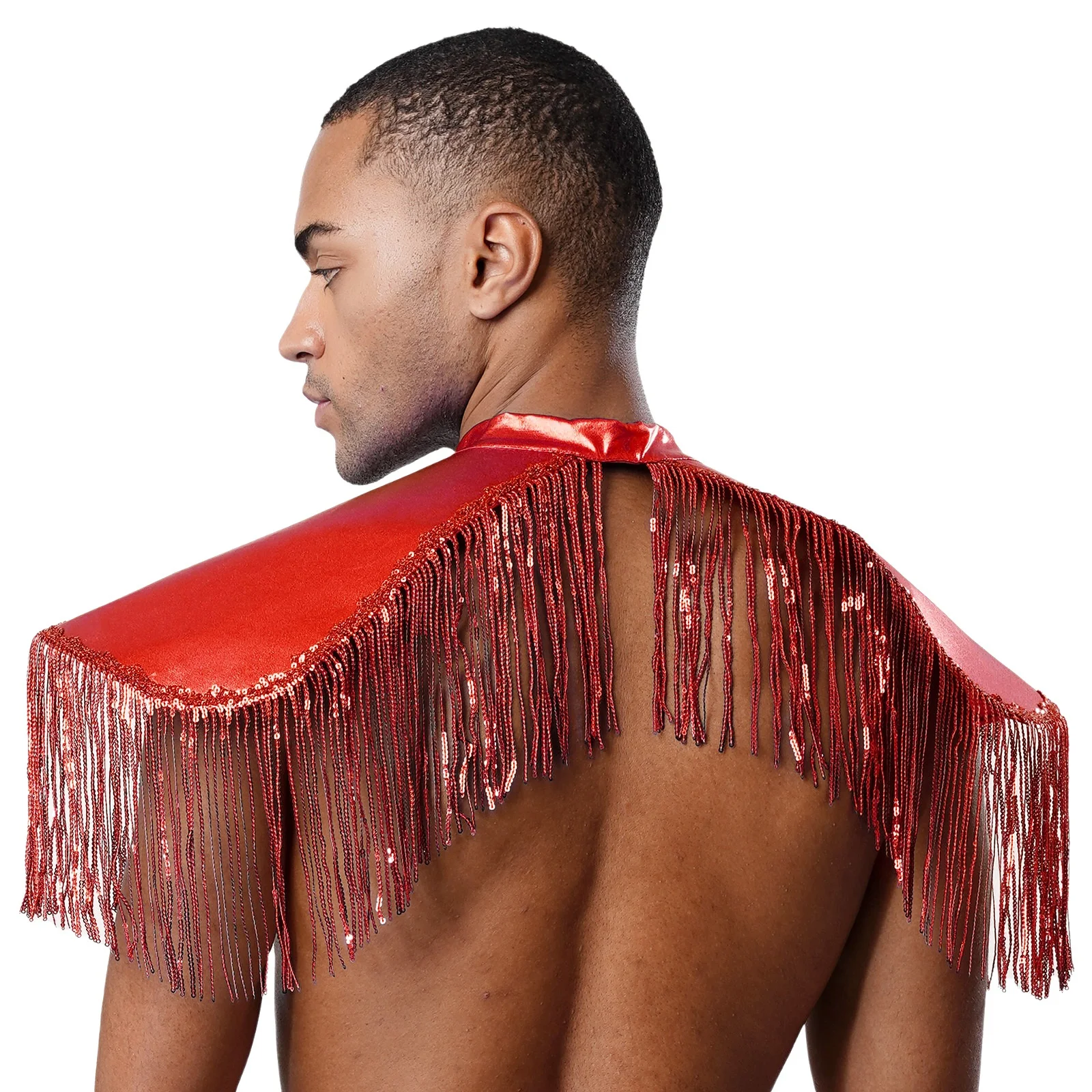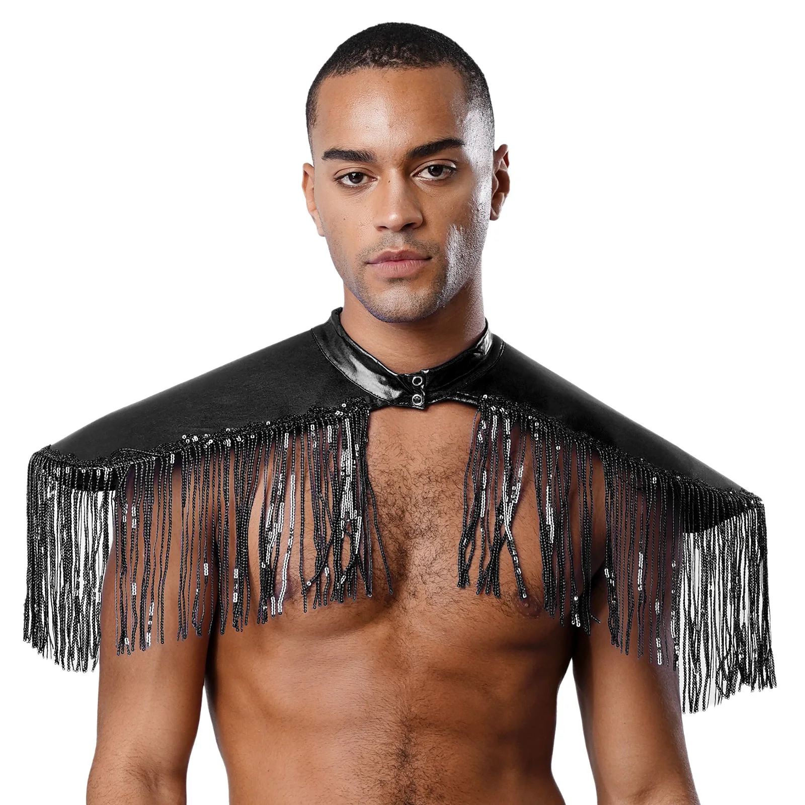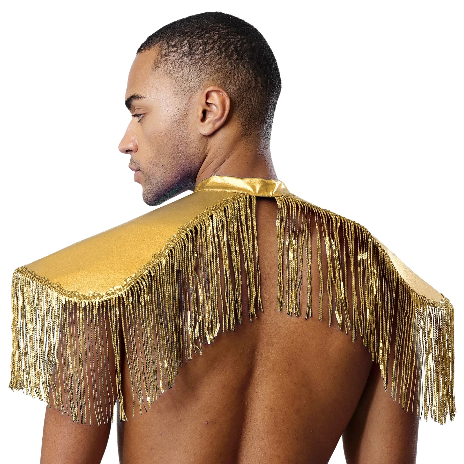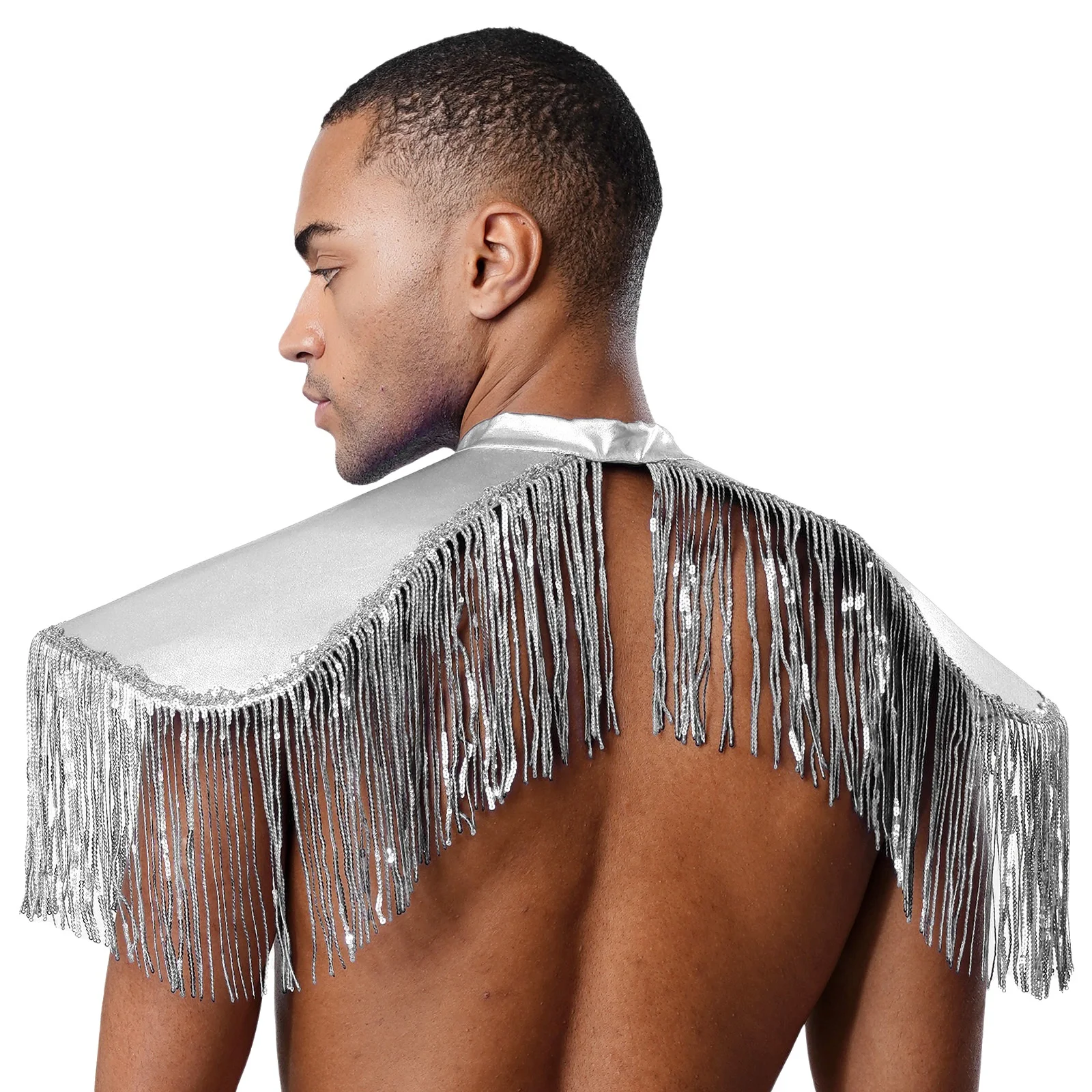 Mens Womens Tassels Armor Vest Shiny Metallic Sequins Fringe Shoulder Pads Vest Tops Halloween Disco Singer Costume Accessories