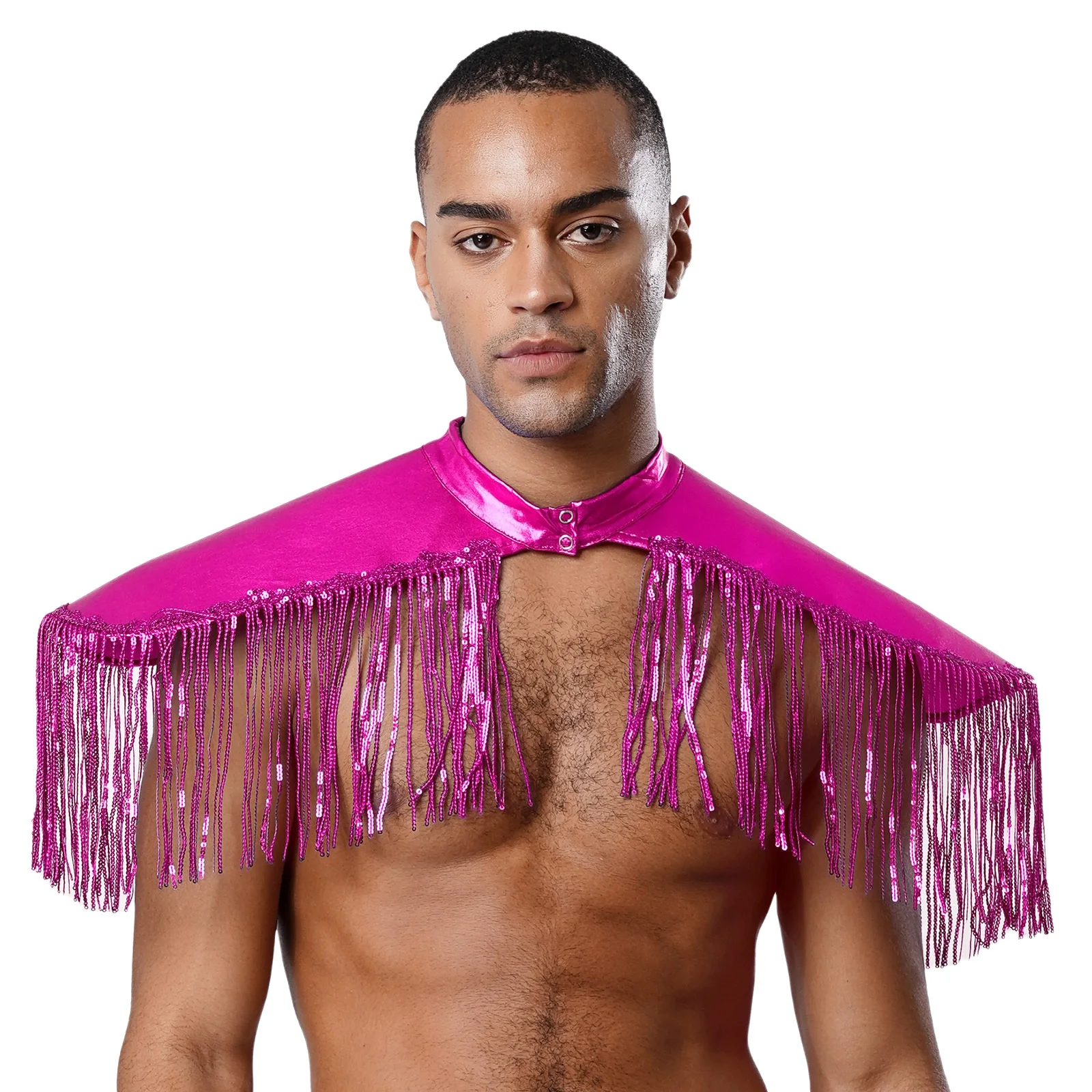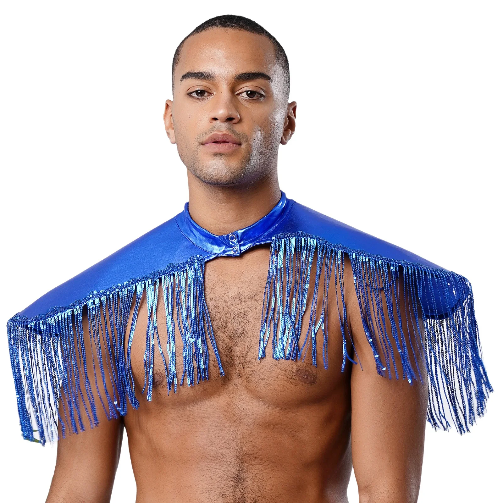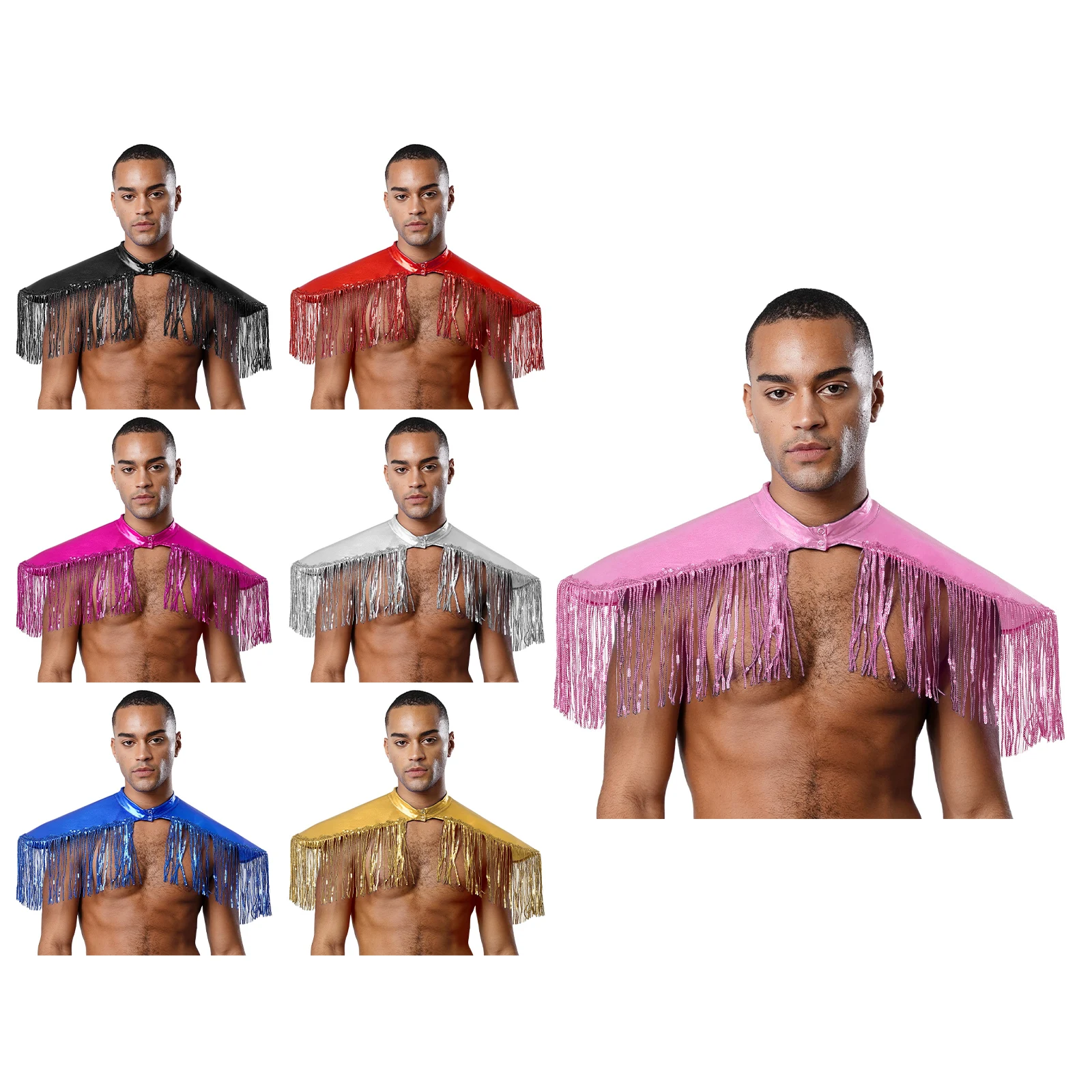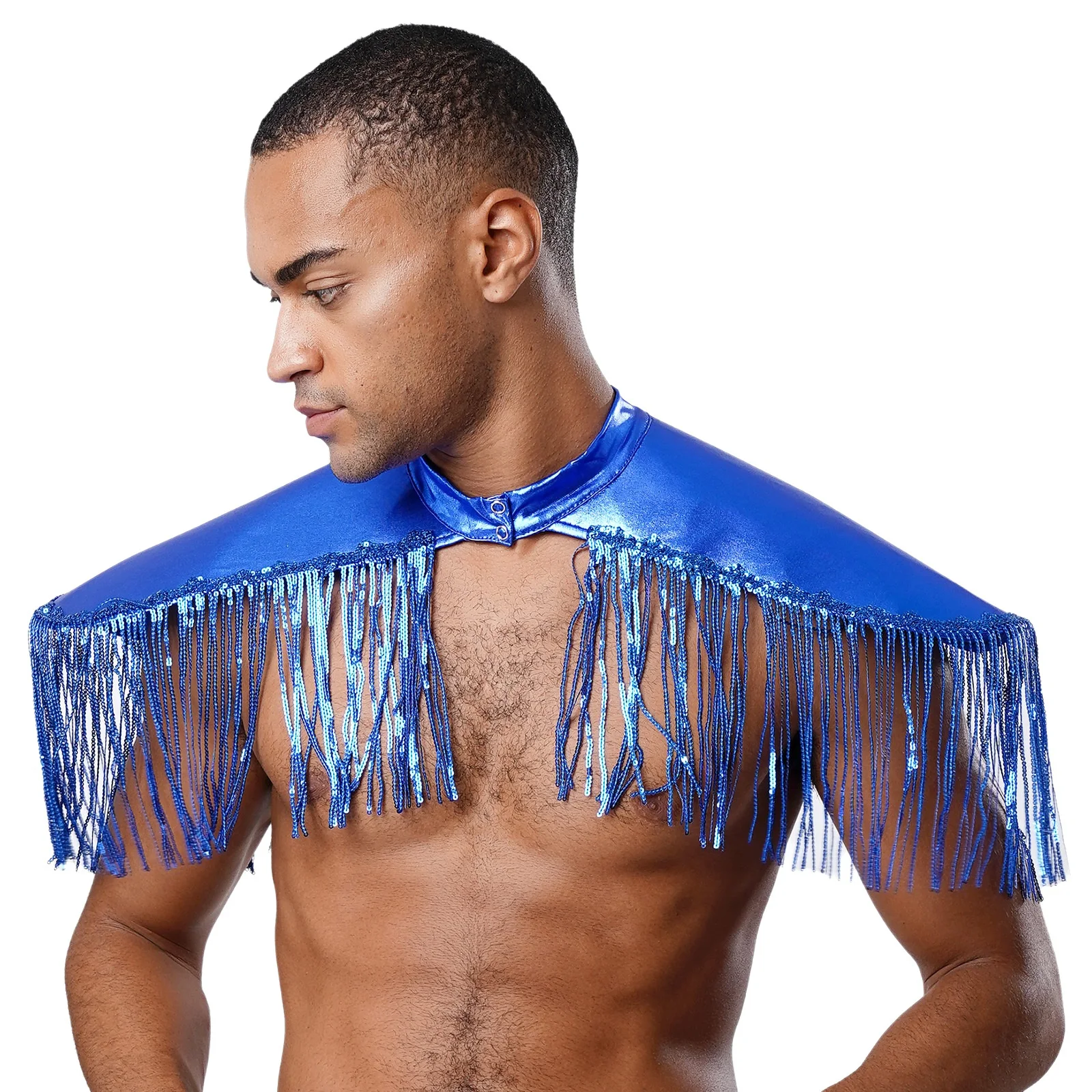 Mens Womens Tassels Armor Vest Shiny Metallic Sequins Fringe Shoulder Pads Vest Tops Halloween Disco Singer Costume Accessories