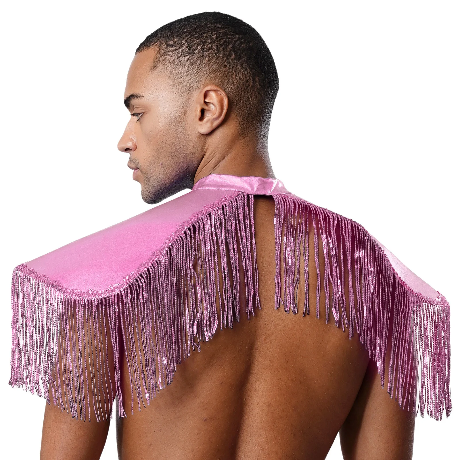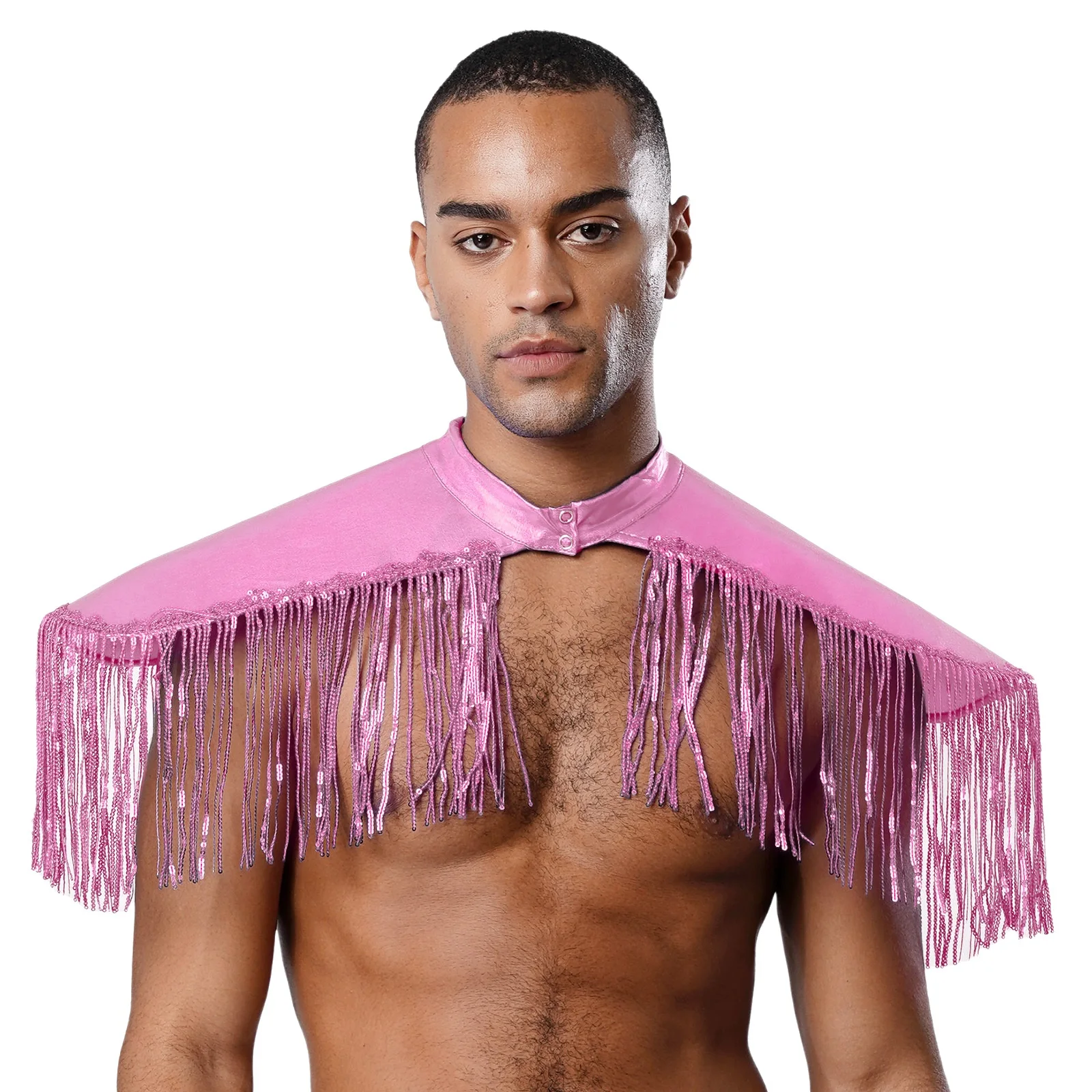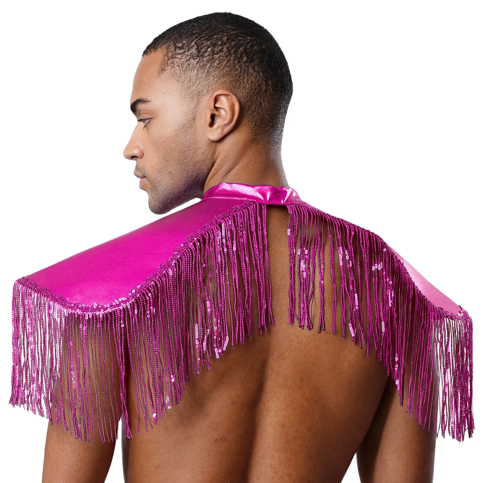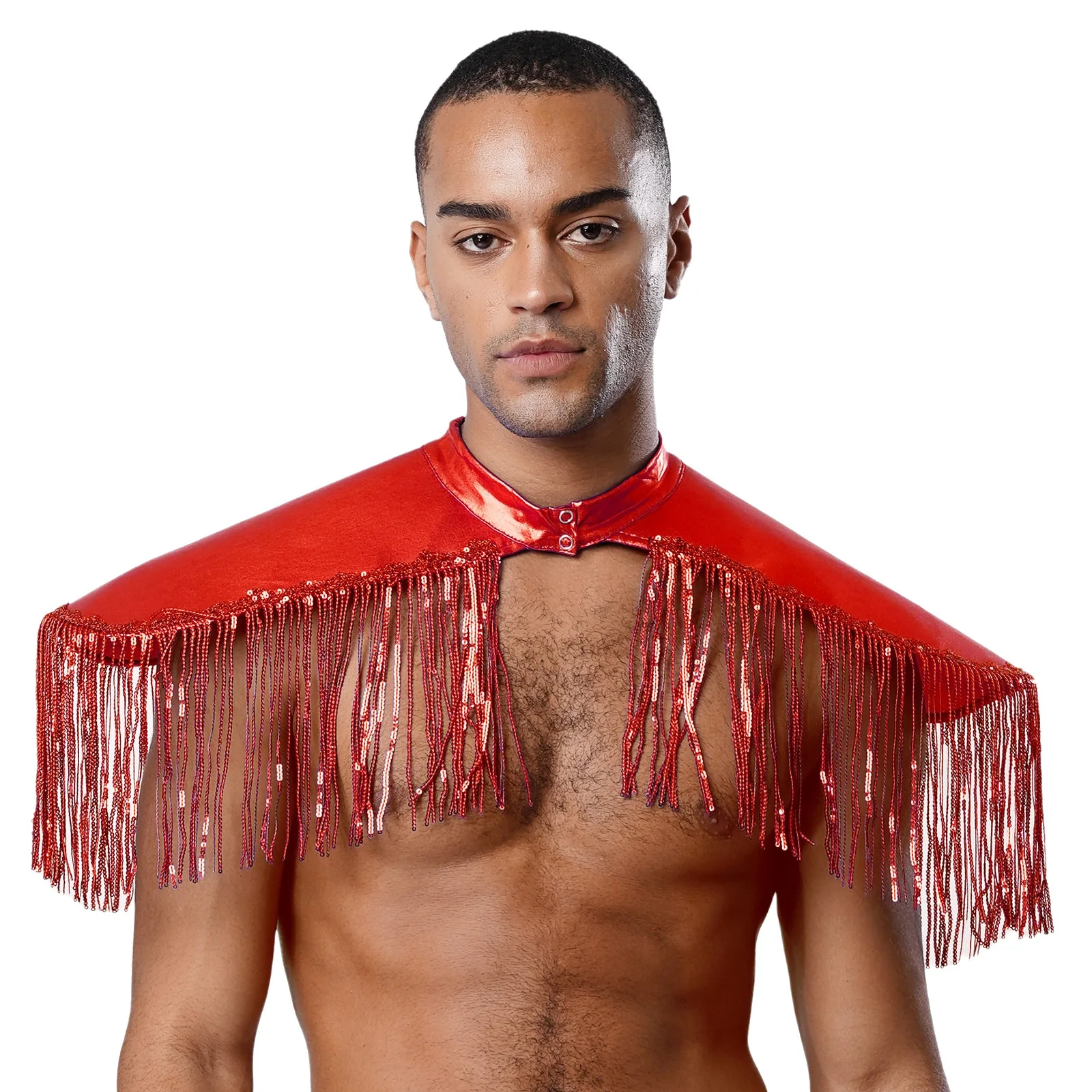 Mens Womens Tassels Armor Vest Shiny Metallic Sequins Fringe Shoulder Pads Vest Tops Halloween Disco Singer Costume Accessories