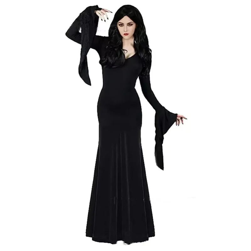 Party Sexy Dress Morticia Addam Halloween Witch Evil Costume Women Black Gothic Wednesday Vampire Horror Outfit For Adult