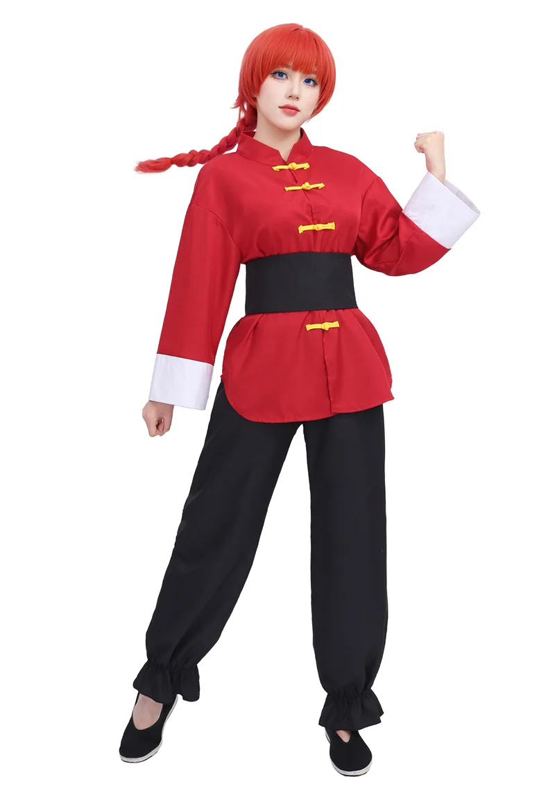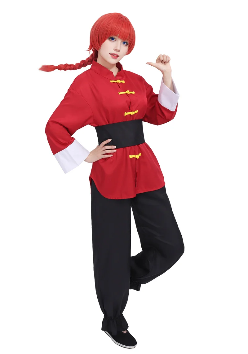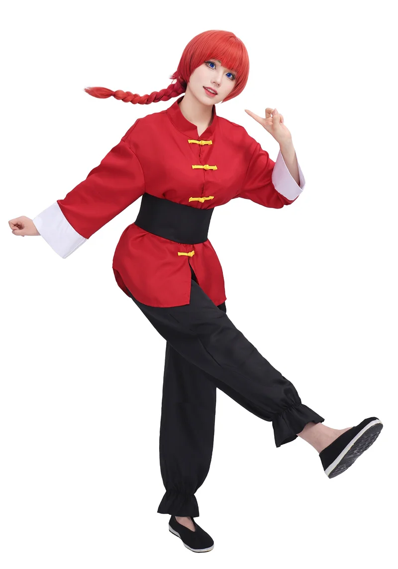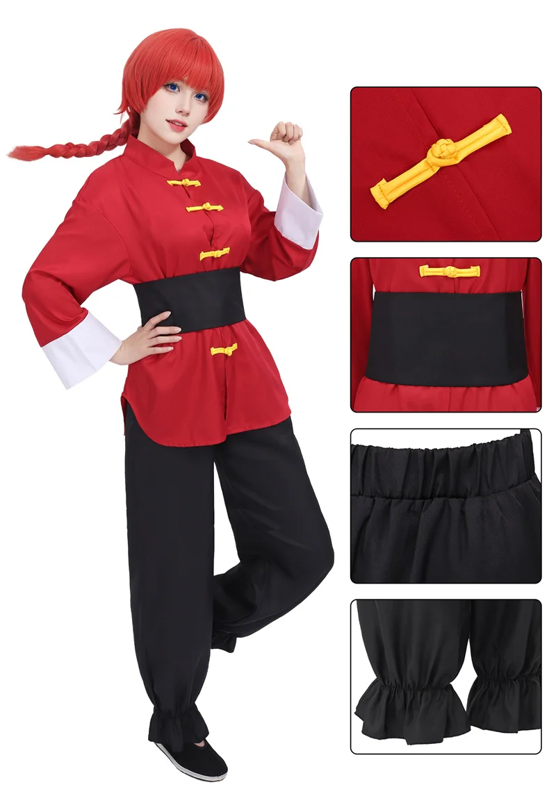 Ranma 1/2 Anime Ranma Saotome Cosplay Costume for Women Red Kung Fu Suit with Belt for Halloween Party