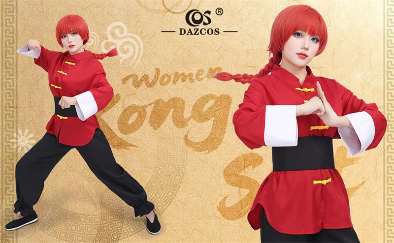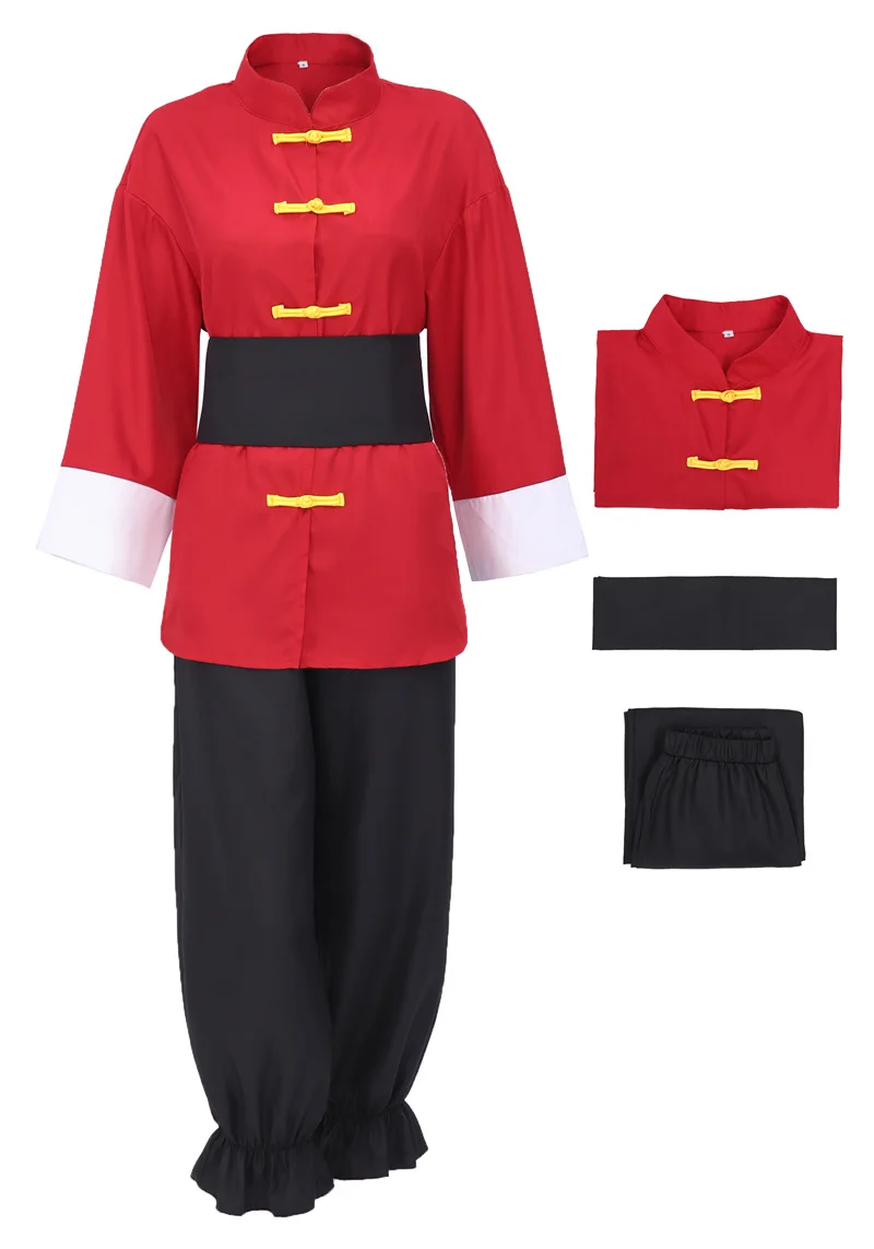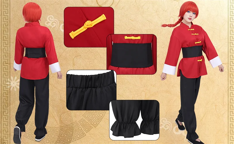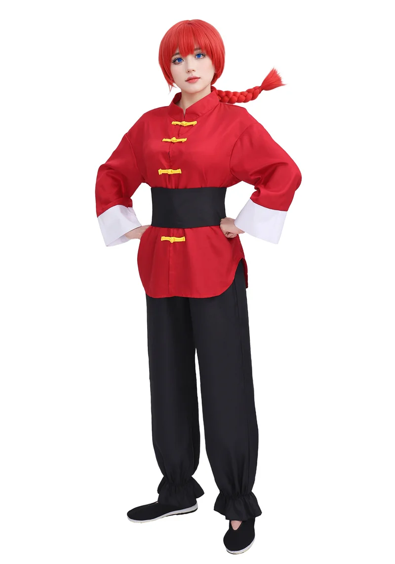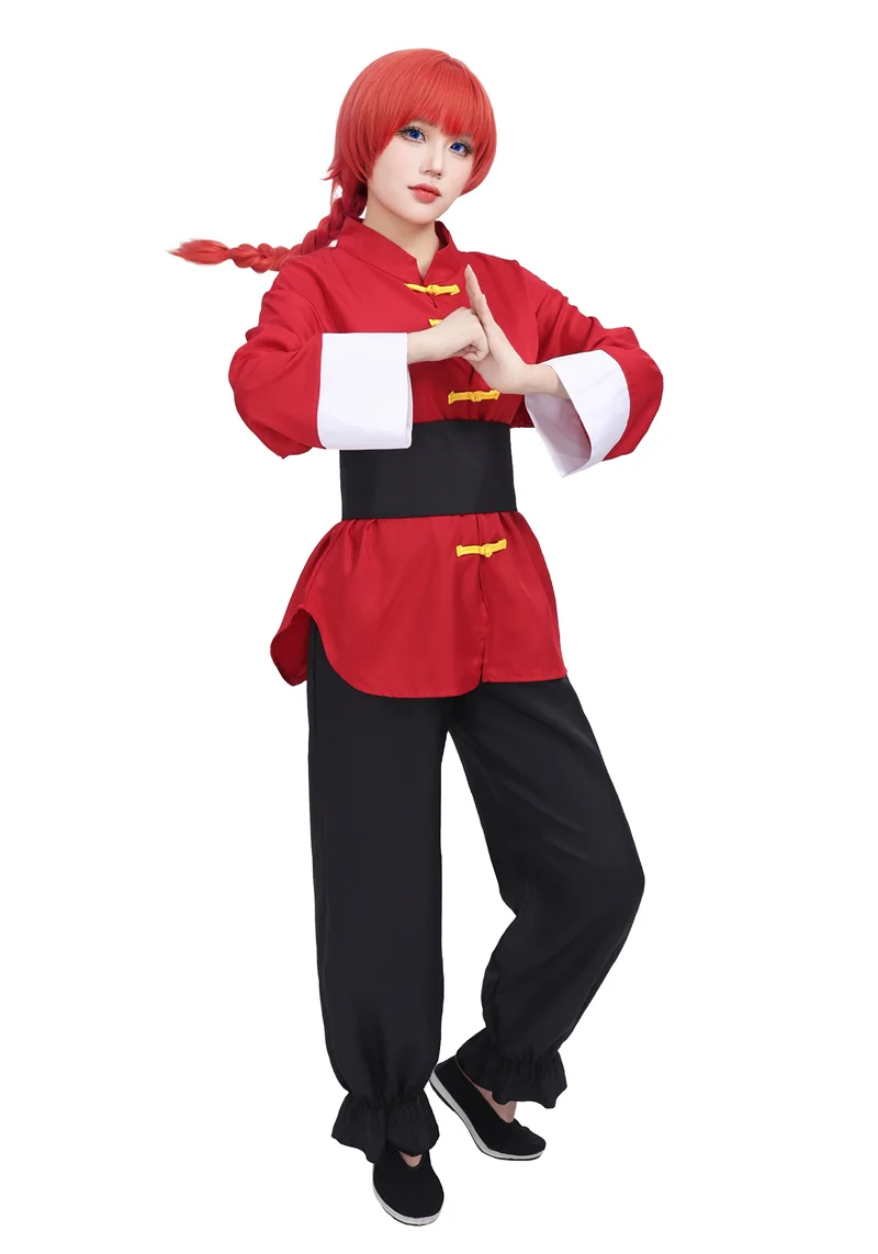 Ranma 1/2 Anime Ranma Saotome Cosplay Costume for Women Red Kung Fu Suit with Belt for Halloween Party