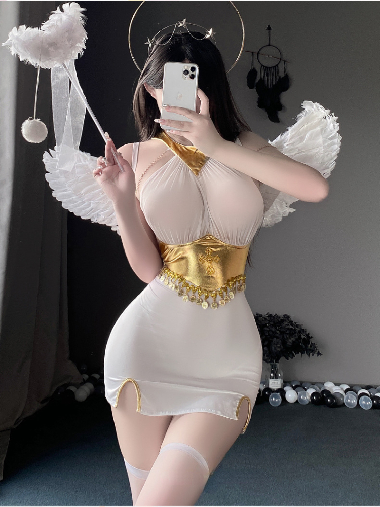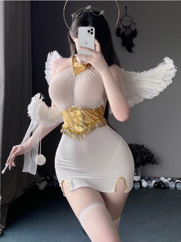 Sexy Gauze See Through Ancient Angel Western Girl Cosplay Costume Backless Halter Dress Egyptian Goddess Role Play Outfits