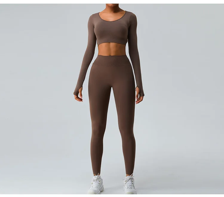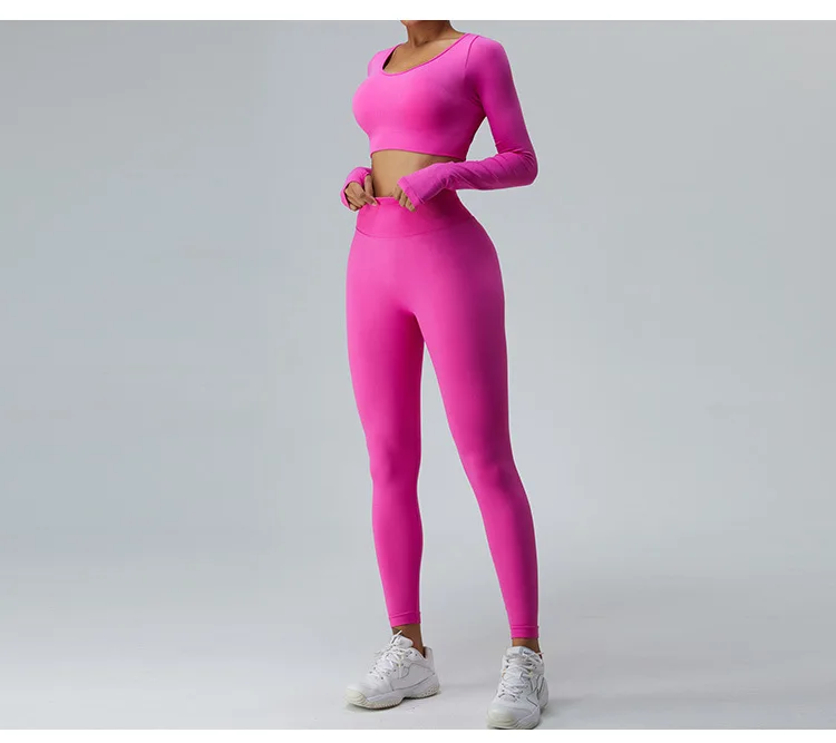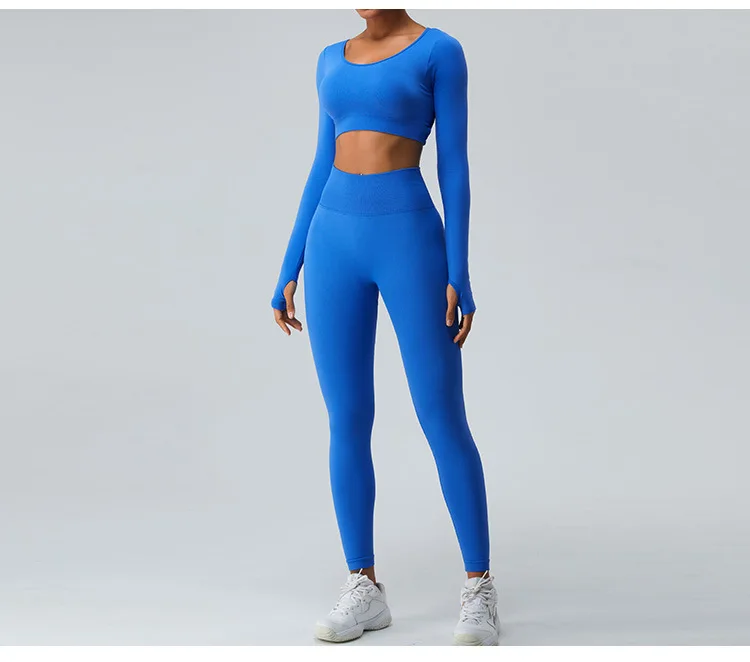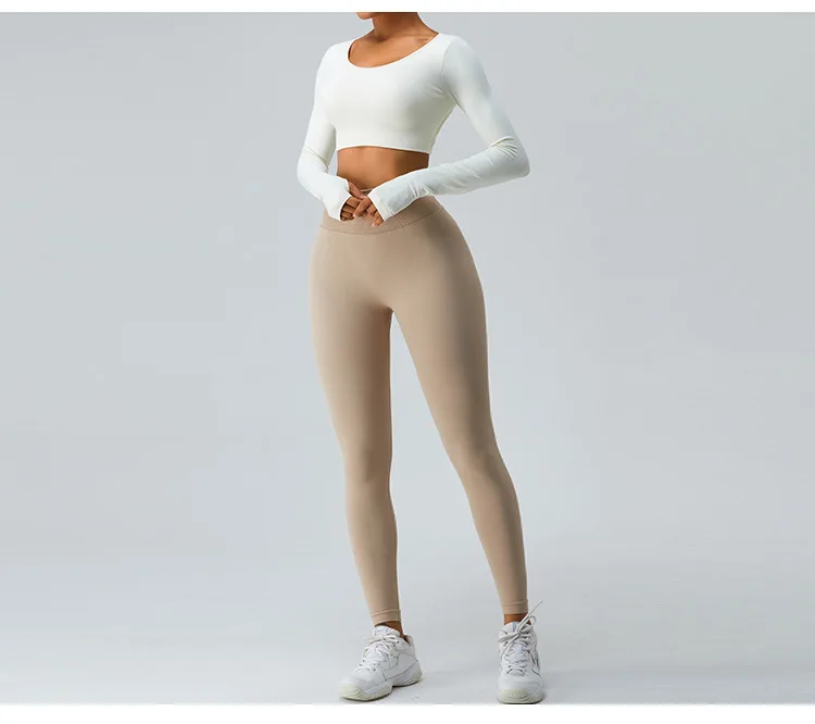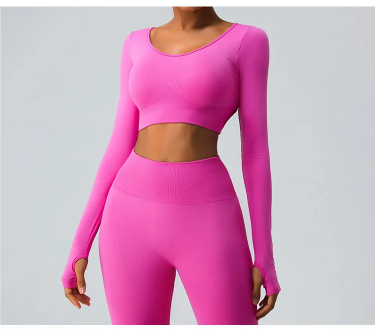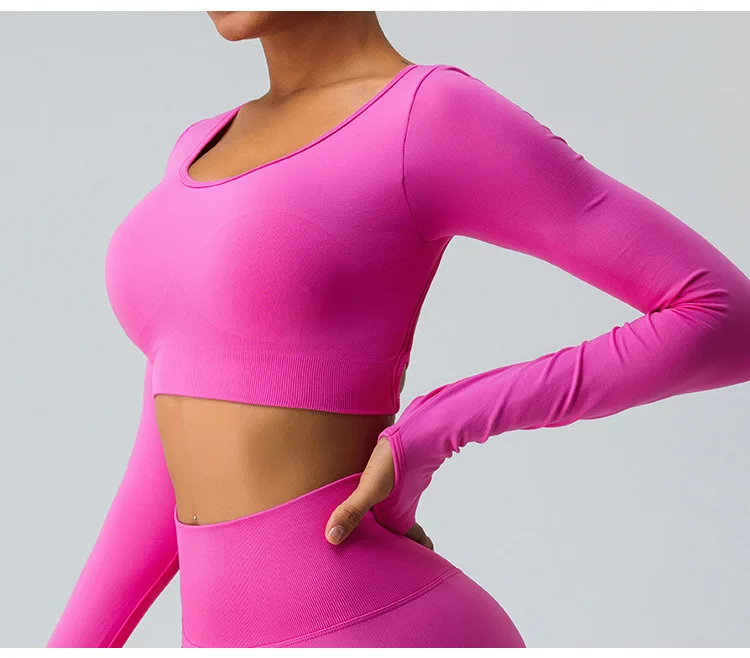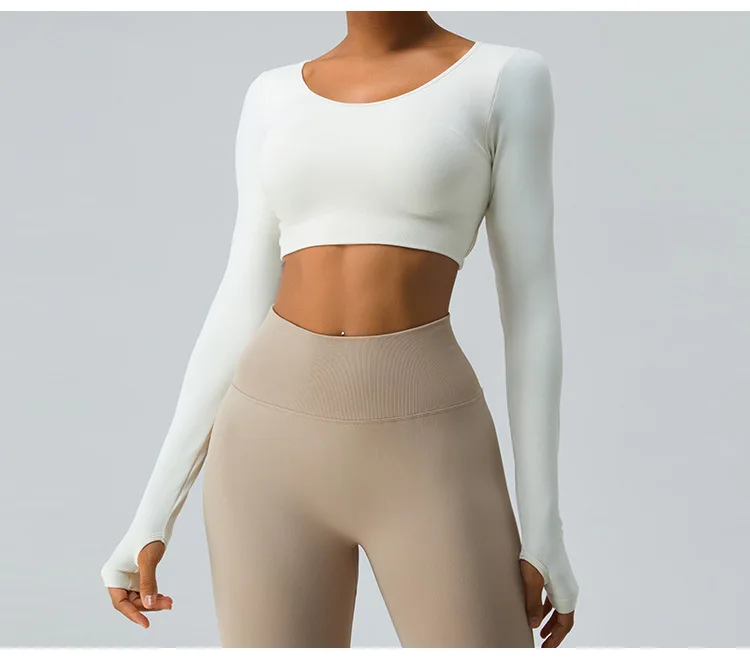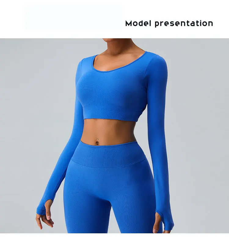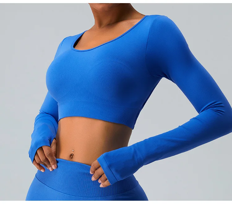 Sexy Women's Backless Shirt Seamless Crop Top Fitness Shirts Long Sleeve Gym Workout Sports Top Woman Front Yoga Tops Activewear