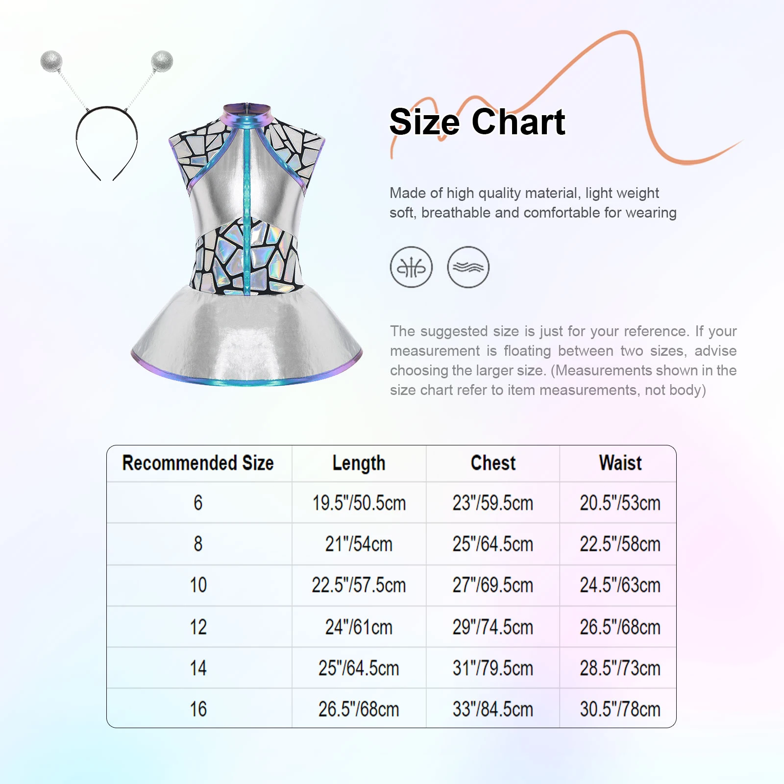 Set Include: 1Pc Dress, 1Pc Hair Hoop