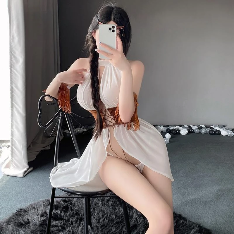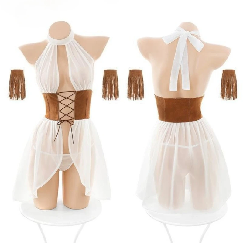 Western Girl Uniform Cosplay Costume Bandage See Through Dress Deep V Nightdress Egyptian Goddess Role Play Outfit Sexy Lingerie