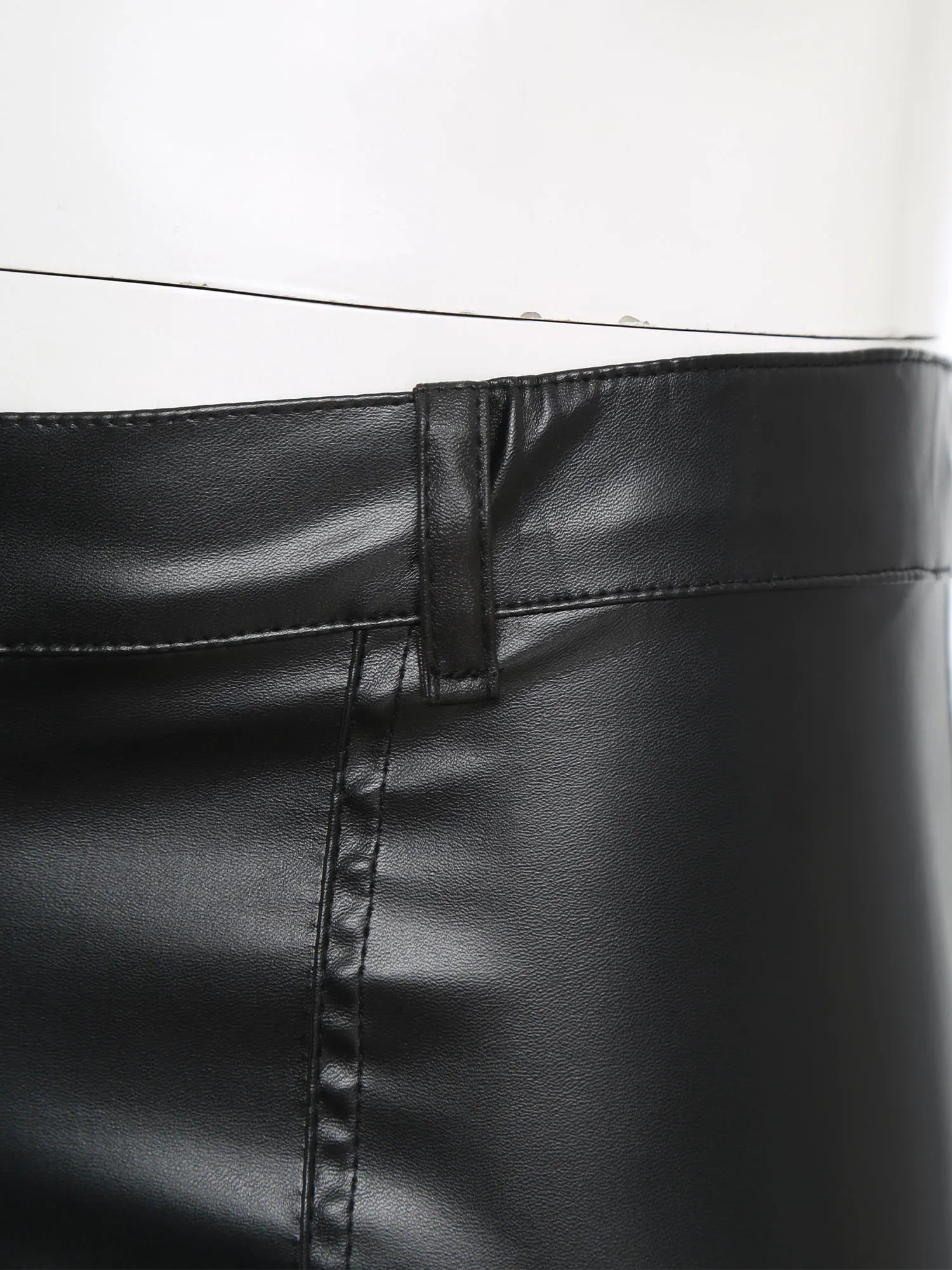 Faux leather material brings a sense of edge and modern elegance to the look, keeping up with the latest fashion trends for a sleek appearance.
