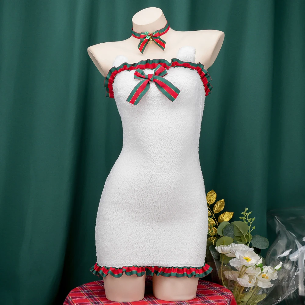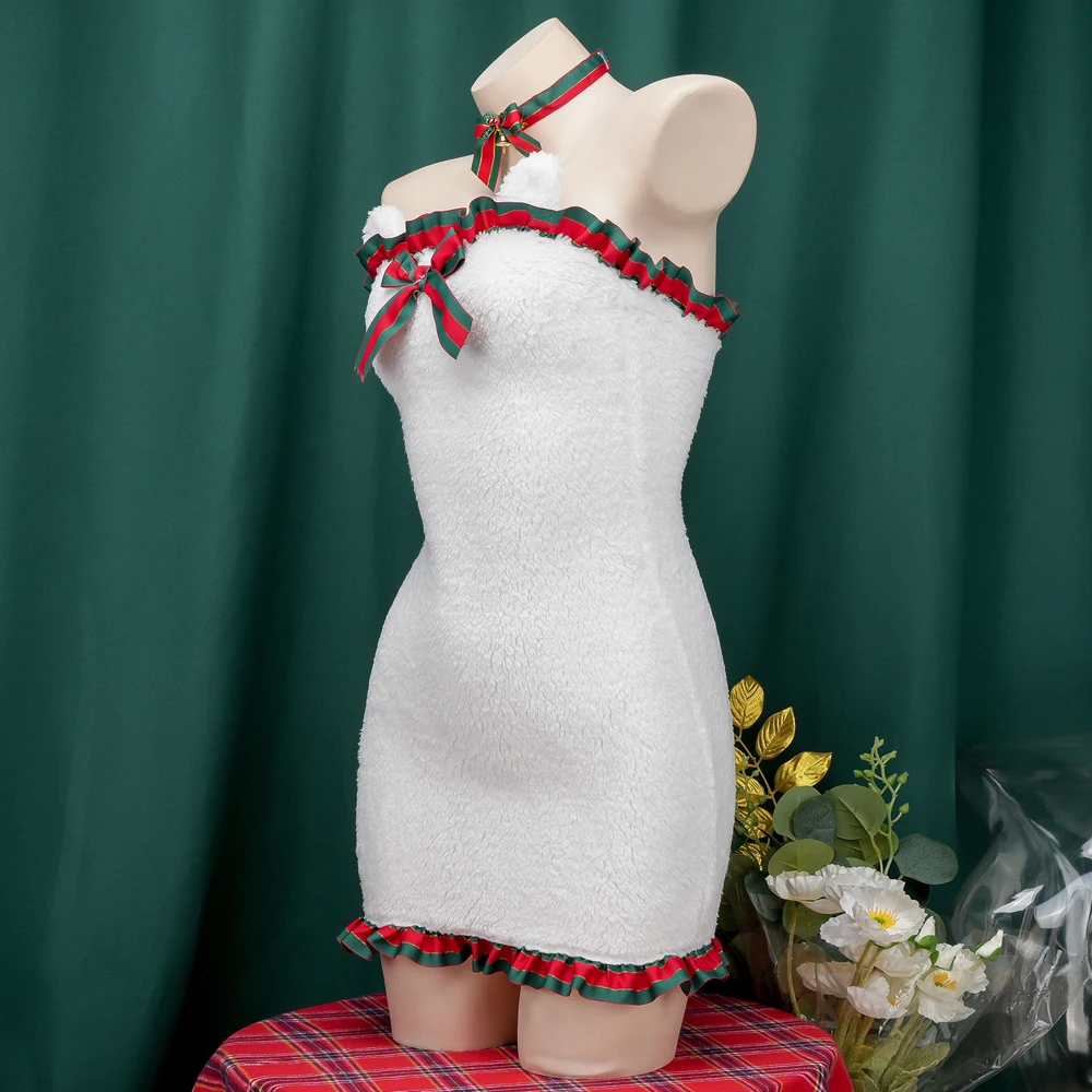 Winter Warm Christmas Eve Plush Dress Cosplay Women Cute Nightdress Uniform Outfits Costumes