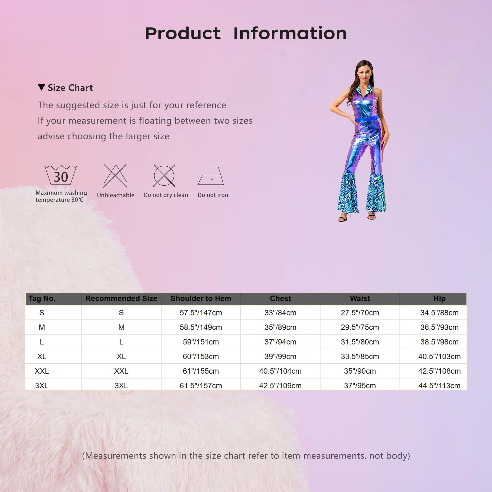 Size Chart: The suggested size is just for your reference. If your measurement is floating between two sizes, advise choosing the larger size. (Measurements shown in the size chart refer to item measurements, not body)