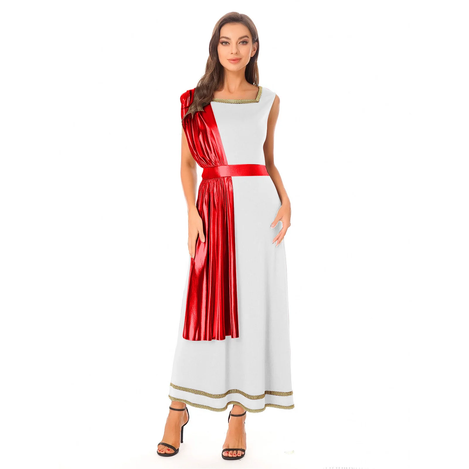 The metallic shiny drape creates a flowing and elegant effect, similar to the ancient Greek and Roman style, which is very trendy and can bring a sense of historical charm.