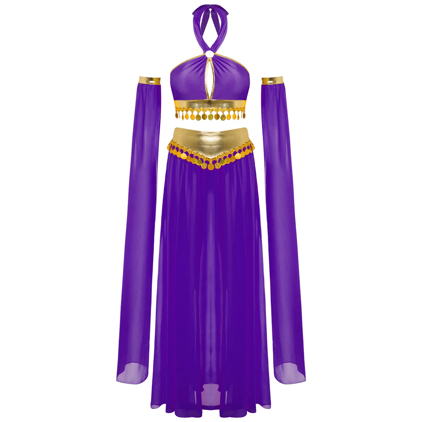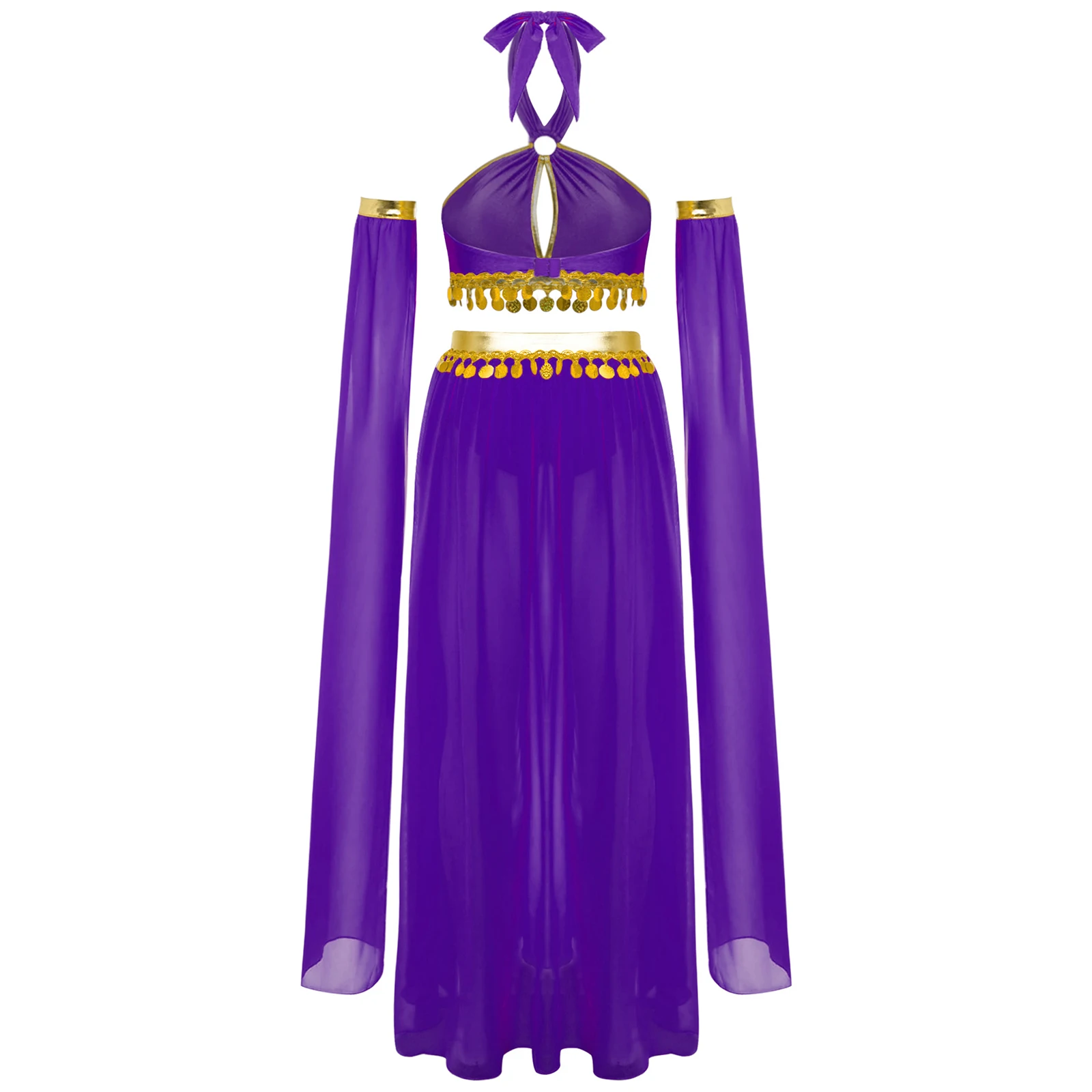 The removable split sleeves offer versatility, allowing you to customize the look according to different performance themes.Perfect for belly dance, Halloween, theme party, dancing party, dance class, dance competition or stage performance.