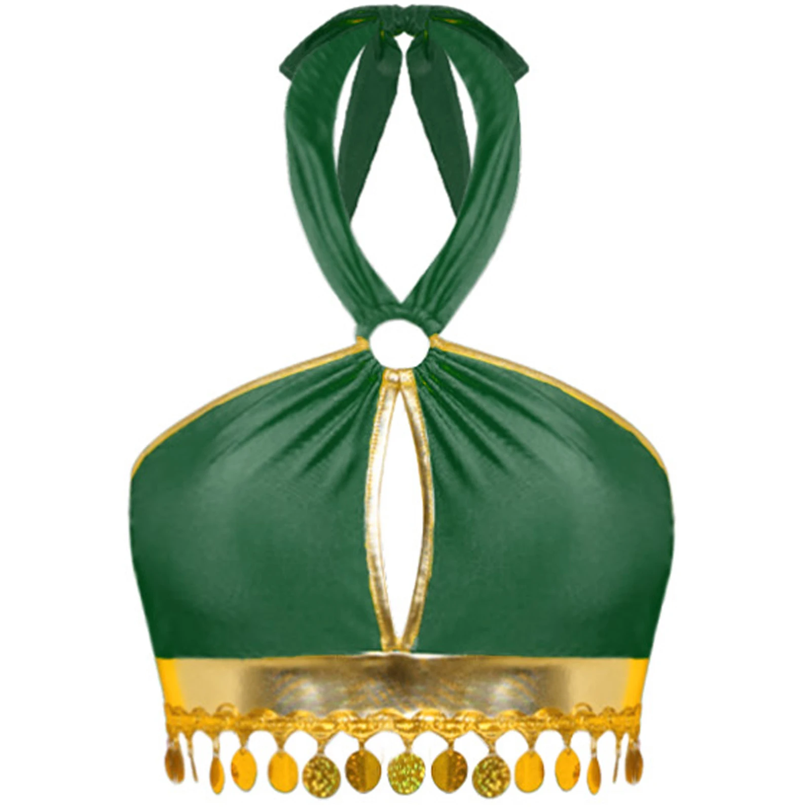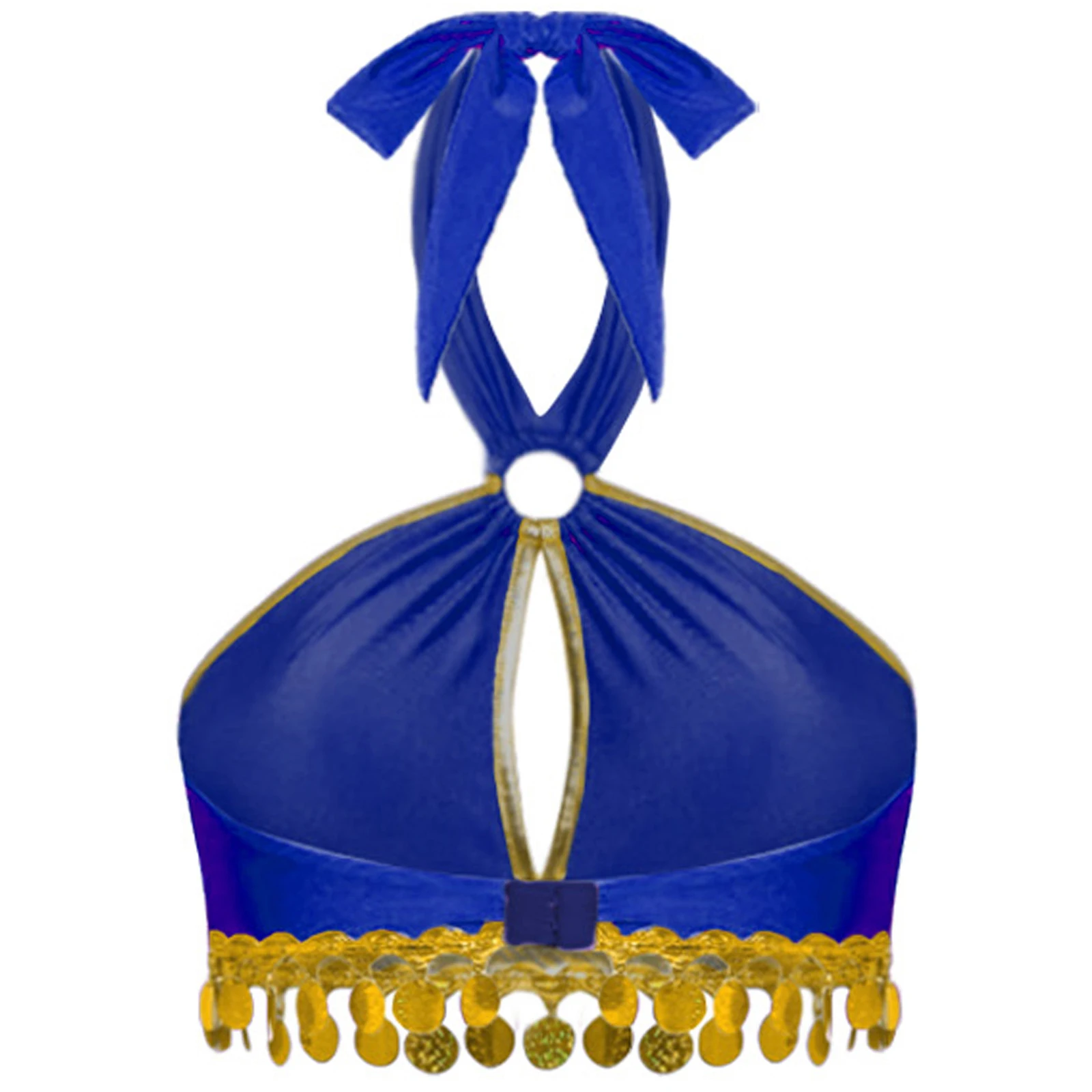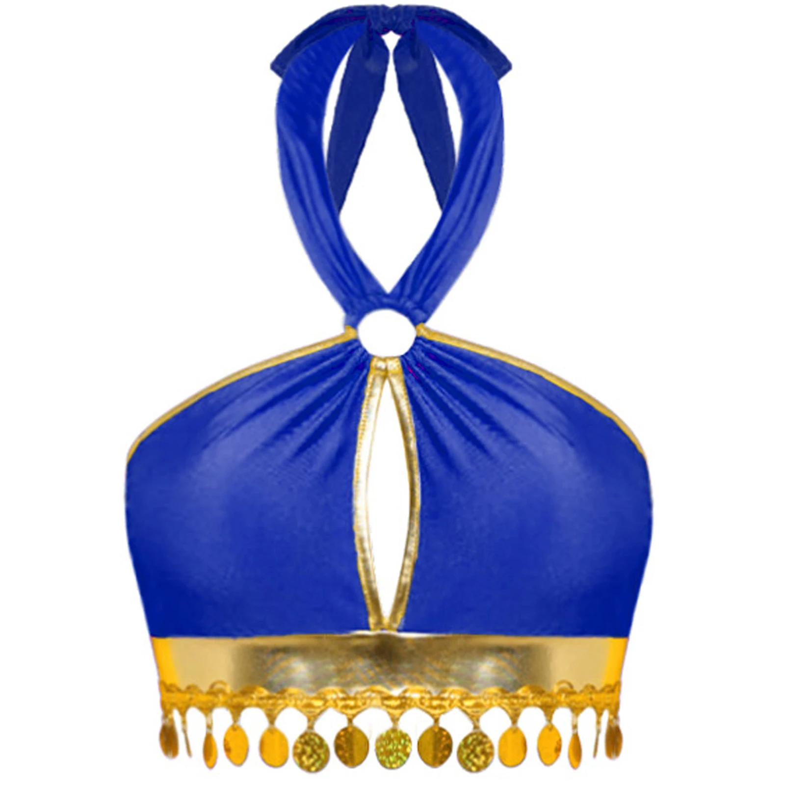 The self-tie halter keyhole front design of the crop top adds a touch of fashion, making it a trendy choice for belly dance.